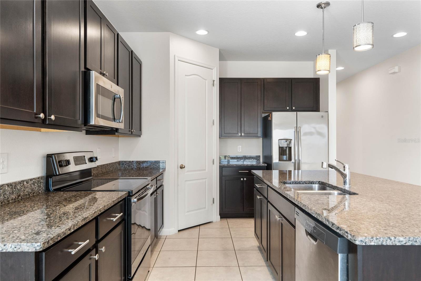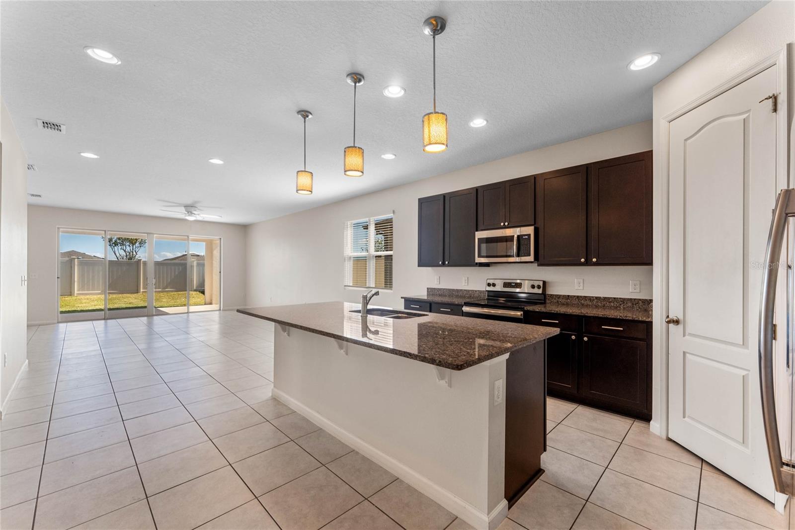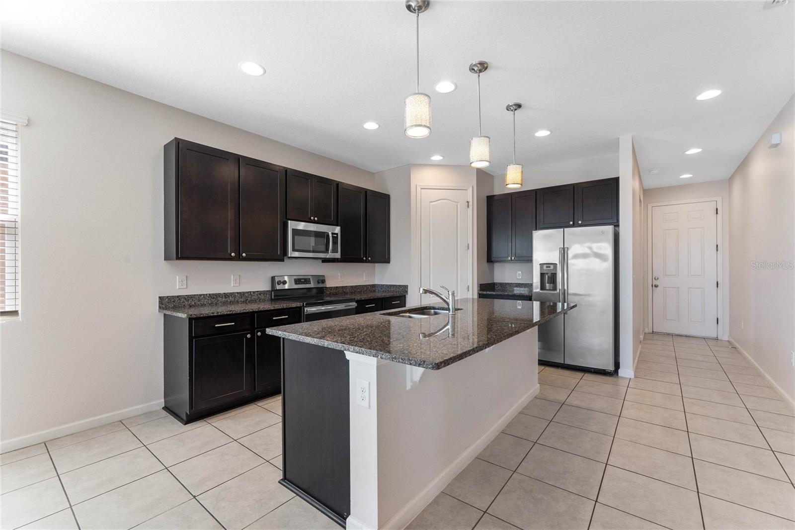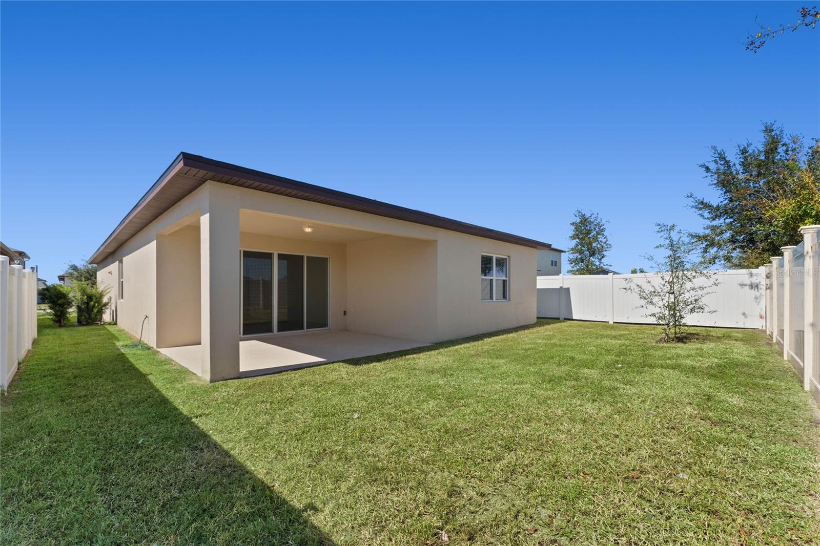 LAST CHANCE ON THIS BEAUTY! 4-bedroom 2-bath upgraded move-in-ready home featuring over 1,900 square feet, a huge open floor plan with upgraded tile flooring throughout, upgraded kitchen, and a split bedroom plan that is perfect for family living and entertaining. No more high electric bills with owned solar! Located in lovely Grove at Highland Meadows and ready for you to move right in. Seller has reduced price and is motivated! Step into the foyer, and you’ll find a cozy bedroom to your right. The airy layout invites you to explore the rest of the home. The large open kitchen is a chef's dream, featuring custom shaker solid wood cabinets, stainless steel double sink, a full array of energy-efficient GE stainless steel appliances, and elegant upgraded GRANITE countertops. With plenty of counter space, a full-sized pantry, and both designer recessed and teardrop lighting, this kitchen is functional and stylish. The kitchen flows seamlessly into the spacious living room, bathed in natural light from the expansive windows and sliding glass doors. Tile flooring, inset lighting, and lighted ceiling fans complete the modern, airy aesthetic throughout the main living spaces. The double sliding glass doors lead to the spacious, covered lanai, perfect for relaxing or hosting guests. The fenced-in backyard offers endless possibilities—whether it's for a garden, play area, or even a pool. The bedrooms are generously sized and all feature super-durable wood-grain tile flooring. The primary bedroom is a true retreat, offering an en-suite bath for ultimate privacy and huge walk-in closet. An additional bedroom also boasts a walk-in, and there is ample storage space throughout the home. Equipped with purchased solar panels, providing you with energy savings and long-term cost benefits while contributing to a greener future. Built just a few years ago and meticulously maintained, this home offers modern comfort with peace of mind. Located in a vibrant community, residents enjoy access to a range of amenities including a clubhouse, refreshing pool, and playground. The Grove features an unbelievably LOW annual HOA fee of $100! Conveniently located between Highways 17-92 and 27, there's easy access to all the shopping, dining, and entertainment options of both Haines City and Davenport. With proximity to Disney World and other major attractions, this move-in-ready home is an ideal opportunity to live in comfort and style. Schedule your showing today and get this lovely house while you can!