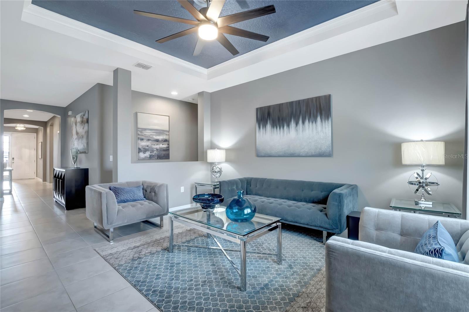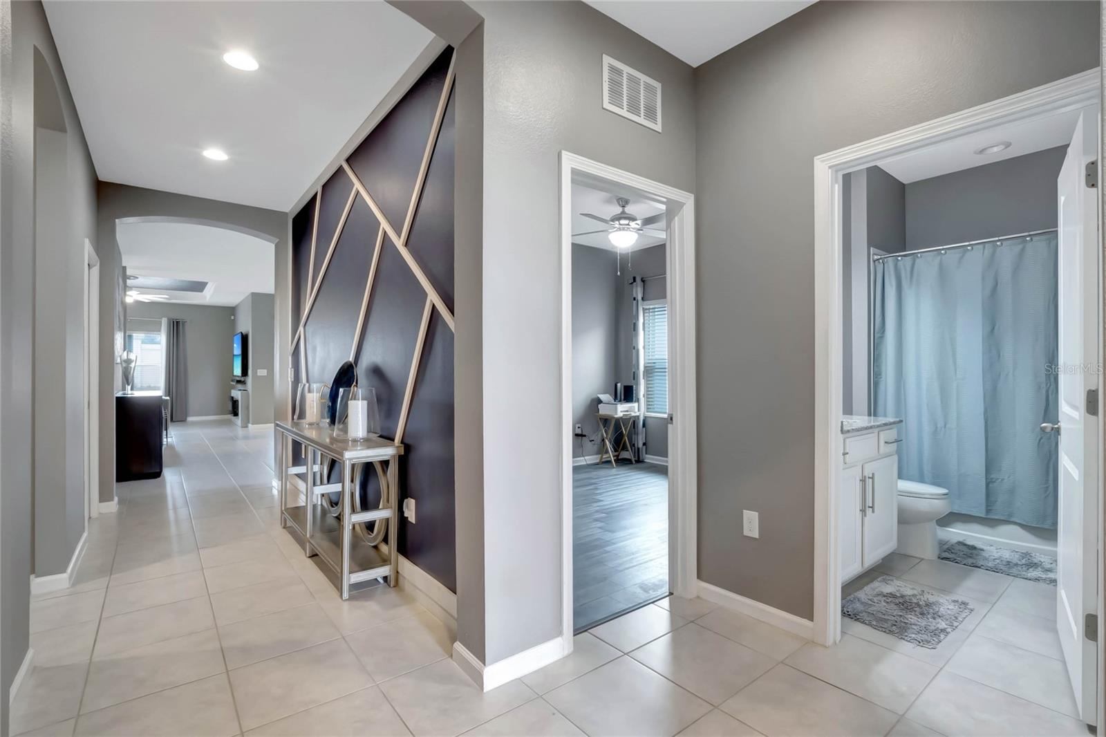 Reduced Price!!! Bring your buyers to view this absolutely amazing value! This 4-bedroom, 2.5-bathroom DreamFinders home is packed with builder upgrades and owner customizations. From the moment you step inside, you'll be welcomed by the elegant finishes, including oversized tile flooring and custom wine storage in the kitchen. The gourmet kitchen is a chef’s dream with 42" cabinets, crown molding, quartz countertops, upgraded backsplash, high-end appliances, and a spacious walk-in pantry—all opening to the great room with a custom-built fireplace. The primary bedroom boasts a large ensuite bath and a massive walk-in closet. Bedrooms 2 through 4 are generously sized, and there’s a large laundry room as well. The exterior is perfect for entertaining, with a covered lanai, pavered patio, and a fully-fenced backyard. Highland Meadows offers a fantastic location just a few miles from I-4, with nearby hospitals, medical facilities, shops, and restaurants. The community features an enormous pool, playground, soccer field, and more, all for an HOA fee of less than $100/year! Don’t miss the chance to see why this home should be yours today!