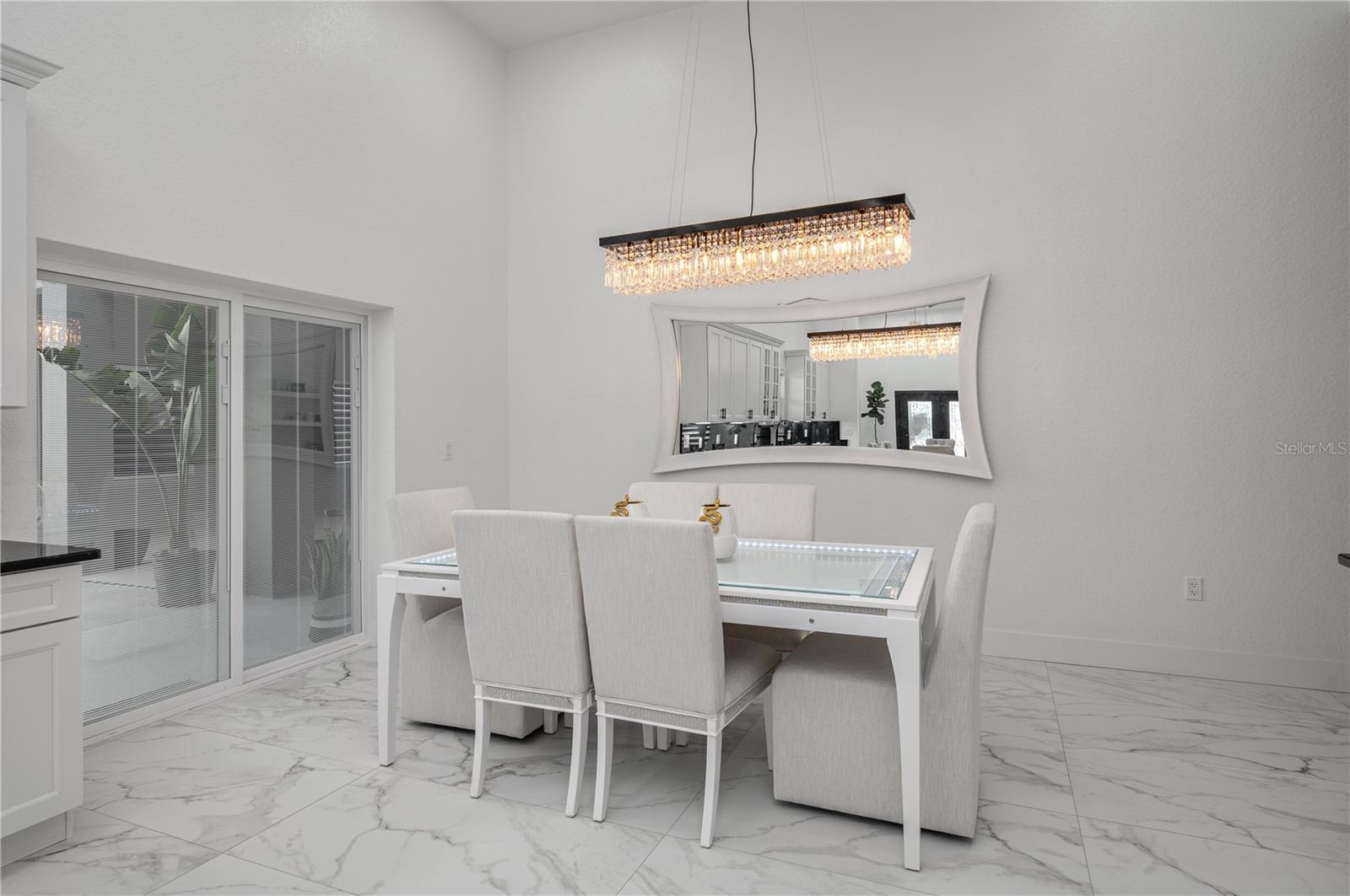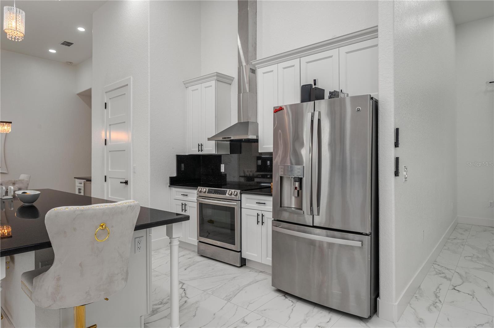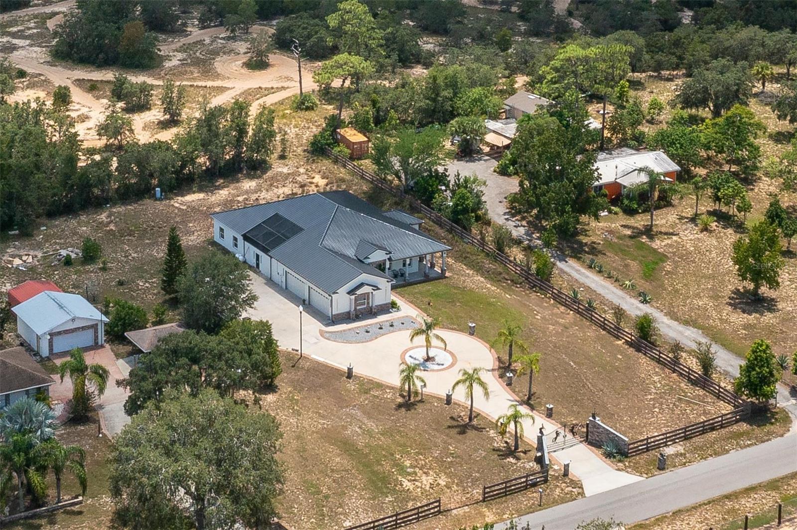 FOR SALE - Stunning 4 bedroom/4 bath Single-Family Home in Haines City on an acre of land. This beautiful SMART home was built in 2025 and comes with all of the latest appliances, light fixtures, you name it! The ceilings are 13'8" in the Great Room and in the Kitchen. The Great Room area measures 17'x30'. The Kitchen has top-of-the-line stainless steel General Electric appliances with a matching stainless steel range hood. The Kitchen has a deep, stainless steel sink to match the appliances. The 42" Kitchen cabinets are made of real Pinewood. The Kitchen features gorgeous Black Galaxy granite countertops. The windowsills throughout the house are also made of the Black Galaxy granite. All of the lighting is LED throughout the house with inset caster lights in the ceiling and beautiful, contemporary chandeliers and light fixtures. The lights in the Great Room and the Kitchen can change color to compliment the mood of any occasion. The Dining Room also has beautiful light fixtures and a built-in Coffee Bar. For the rest of the home, the ceiling height is 10'4" with 8' interior doors. The flooring throughout the home is a beautiful marbled porcelain tile. The Primary Bedroom is a generous size and has two walk-in closets and a built-in bookcase. There are also two linen closets for extra storage. The ceiling fan in the Primary Bedroom is 10' wide and compliments the decor. The Primary Bathroom has a Garden Tub with water jets, two shower heads and a shower tile that beautifully compliments the rest of the decor. Two of the Bedrooms have access to the outdoors with a nice overhang giving them their own private entrance. All of the bedrooms have contemporary ceiling fans. All of the Bathrooms have glass shower doors and massage stones for the shower floors. The fourth Guest Bathroom is conveniently situated right outside the Kitchen. The lighting in the house is inset in the ceiling with caster lighting and gives it a very elegant look. There are light posts on the outside of the house in the driveway along with inset lighting in the driveway pavers. The house has its own gate code for entry and the property is fenced with wood horse fencing. The house has a huge, enclosed lanai ideal for entertaining and is built with open verandas all around the house. The Garage is massive and has a huge, deep stainless-steel sink. As far as energy saving features go, this 5-Star Energy home has wonderful features such as: a Metal Roof, 18 Sear 5-ton A/C unit, 50 Gallon Hybrid Water Heater, SMART Thermostat, Fire retardant paint in the attic, Lightning Rod protection, Foam Insulation in the attic, and Double-pane windows. Come see this spectacular home today.