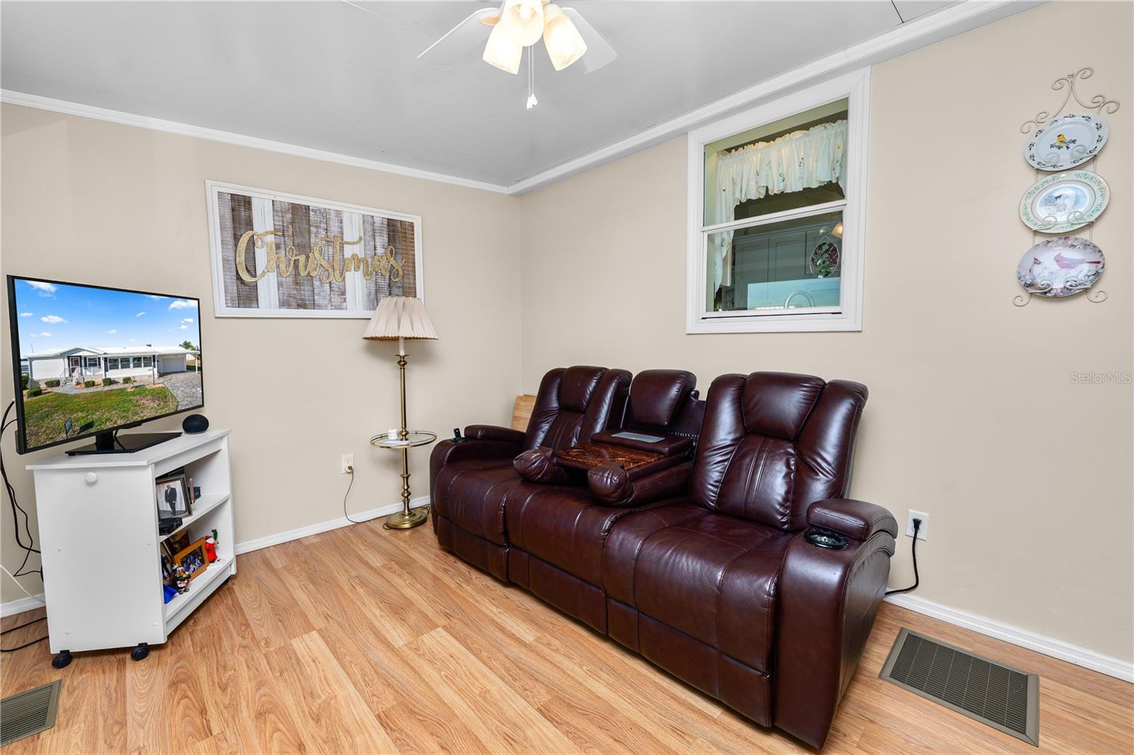 Looking to buy a home in Florida? This is a great manufactured home built in 2005. This home is in walking distance to the Clubhouse, pool, shuffleboard, corn hole, pickle ball, horseshoes and other amenities. It's just a walk across the street to all of this! The home is a 1242 square foot open concept home. The fully loaded kitchen includes a dishwasher, disposal, and a washer and dryer. This split concept home has the primary bedroom and large en-suite bathroom on one side of the home, while the guest bedroom and bath are located on the opposite side of the home. The entrance from the driveway is to a large front room, appoximately 200 sq. ft., and has sliding glass doors to the kitchen. Additionally, the home offers tinted double pane windows through out, linen closets in the bedrooms and hall, a single car garage with pull down for additional storage area above, the garage also features storage cabinets and counter space. The monthly maintenance fee includes cable TV, internet service, lawn care, water sewer, garbage pick up, maintenance of common building and grounds and use of all the facilities and amenities. With so much to offer, schedule your private showing today!