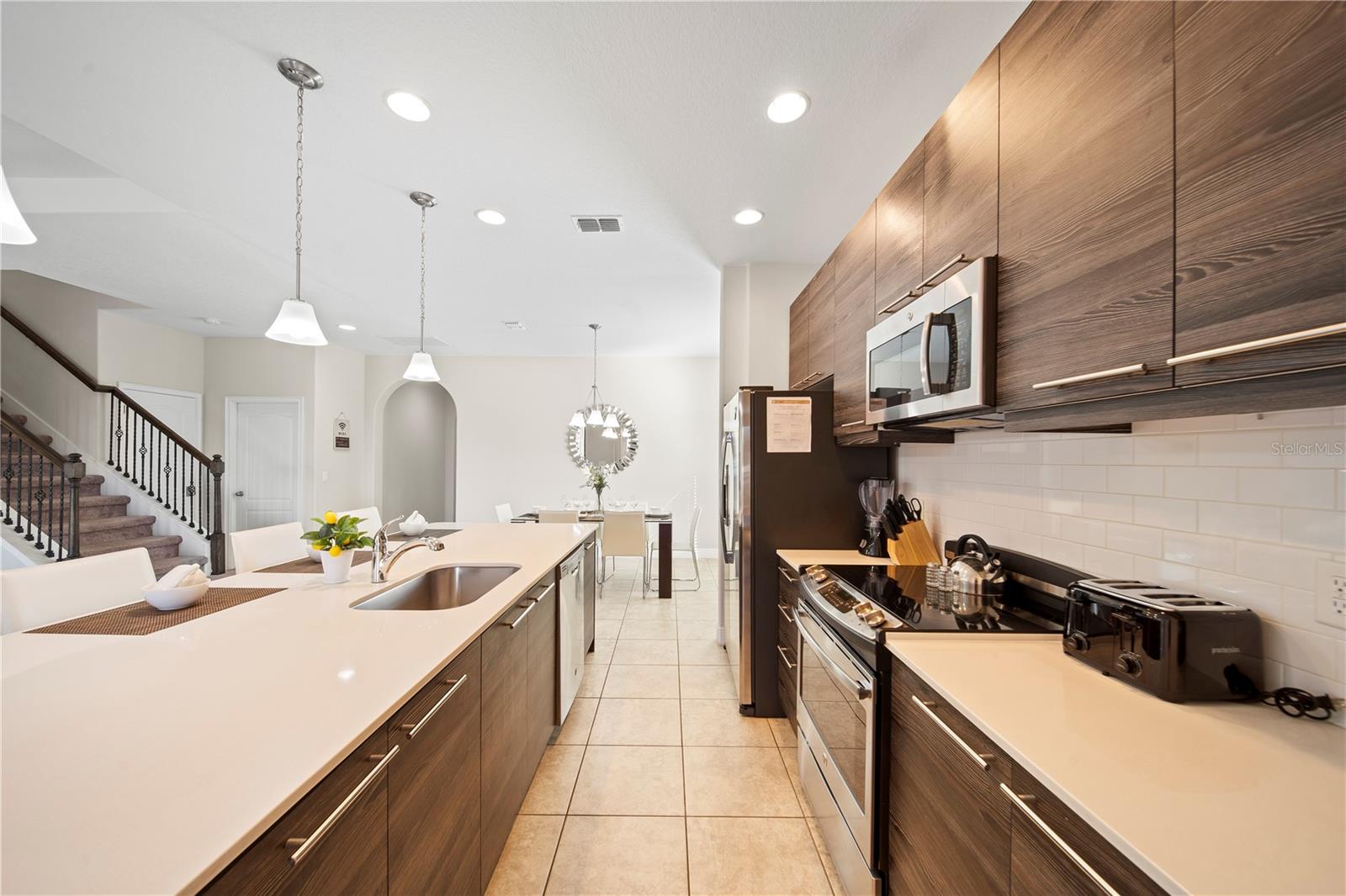 Welcome to Balmoral Estates, where vacation-style living reaches new heights! This exquisite 4-bedroom, 4.5-bathroom property is the epitome of elegance and comfort, perfectly located just 35 minutes from the magic of Disney theme parks and a quick 15-minute drive to the thrills of Lego Land. Nestled in a secure, gated community, this home offers unrivaled convenience and leisure. Enjoy exclusive access to a plethora of amenities, including a water park, swimming pool, cabanas, a state-of-the-art fitness center, volleyball court, sandy beaches, mini-golf, scenic walkways, serene ponds, and an outdoor Bar and Grill—ideal for entertaining family and friends. Step inside and be captivated by the open living and dining areas, seamlessly connected to a fully equipped kitchen featuring a breakfast-dining island and stunning quartz countertops—a chef's dream and the heart of the home. The master bedroom on the first floor promises privacy and easy access to your private, screen-enclosed pool. Upstairs, each bedroom comes with its own en-suite bathroom, providing a luxurious retreat for family or guests. Fully furnished and ready for you to move in, this property offers a turnkey solution for embracing the resort-style living that Balmoral Estates at Water's Edge is known for. Don’t miss your chance to own this piece of paradise. Live the Florida dream with the perfect balance of proximity to world-famous attractions and the tranquility of an exclusive gated community. Experience the pinnacle of luxury living—schedule your viewing today!