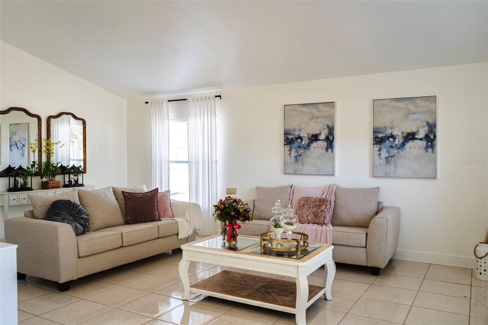 Welcome to this stunning 4-bedroom, 2-bathroom home boasting not one, but two spacious living rooms! Upon entry, you'll be greeted by an open and bright interior with soaring ceilings and an abundance of windows that flood the space with natural light. The formal living room sets an elegant tone for the home.The heart of this home is its expansive kitchen, overlooking the inviting living and dining area, creating the perfect space for entertaining family and friends. With a convenient door leading to the patio, enjoying the outdoors while grilling or relaxing in the expansive backyard is effortless.The master bedroom is a true retreat with its vaulted ceiling, generous walk-in closets, and a luxurious en-suite bathroom complete with a large soaking tub and spacious walk-in shower.Additional features include a whole-home generator, a sprinkler system, and access to the community park. Conveniently located just minutes away from Publix, restaurants, and other amenities, with easy access to highways, this home is ideal for families on the go.