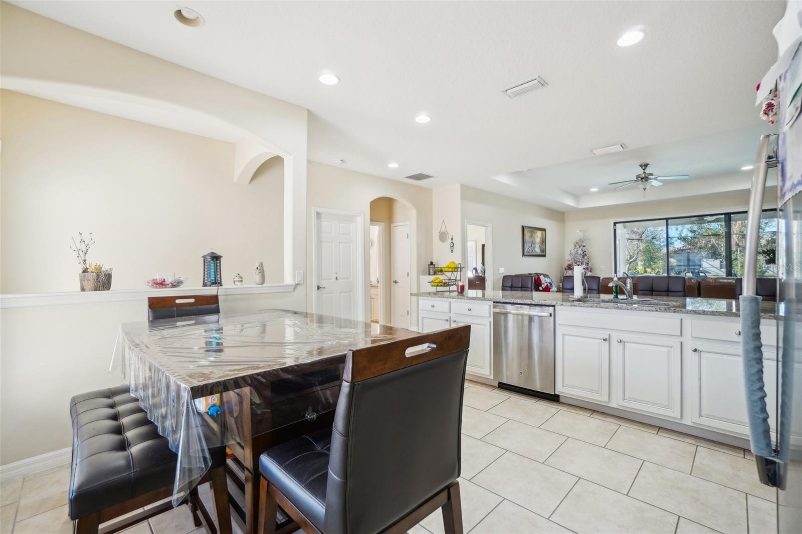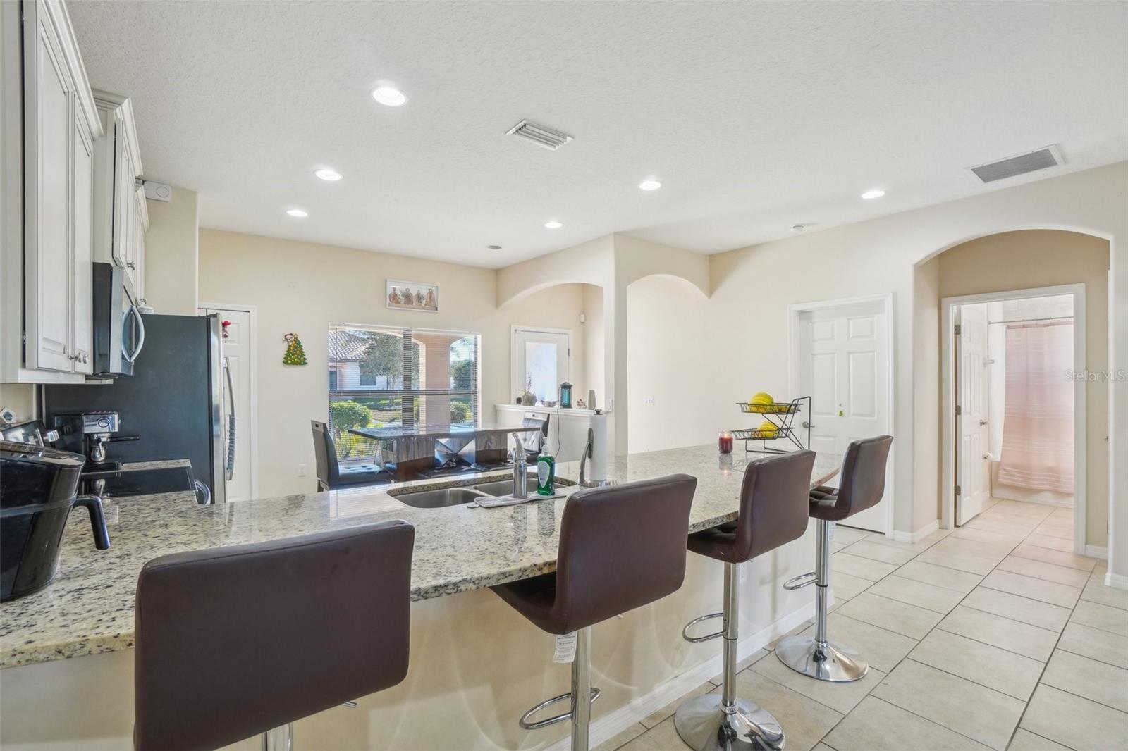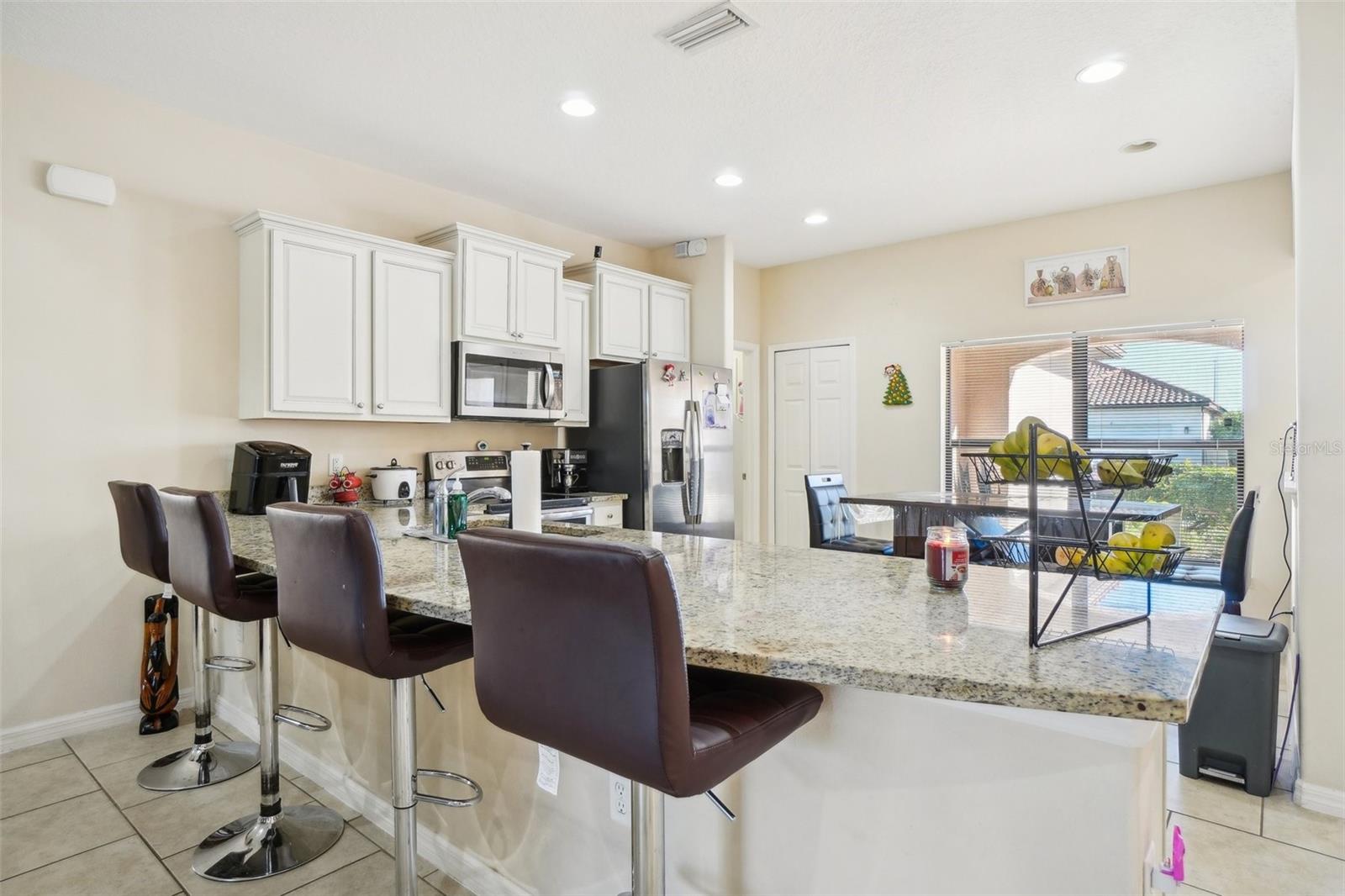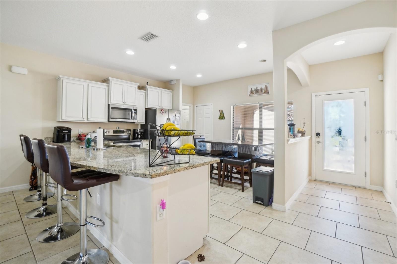 Fantastic 5-bedroom, 3-bathroom home with a pool on a large corner lot in the Villa Sorrento community. Only one neighbor! Don’t miss the chance to own this move-in-ready home with numerous upgrades. The kitchen features ceramic flooring and a dining area. The master suite offers two walk-in closets, a double vanity, a large tub, and a separate shower. The second bedroom has an attached bathroom. No detail has been overlooked; the exterior boasts a covered paver patio with a screened-in pool. Conveniently located near US 27, just minutes from shops, restaurants, schools, medical services, I-4, and Disney attractions.