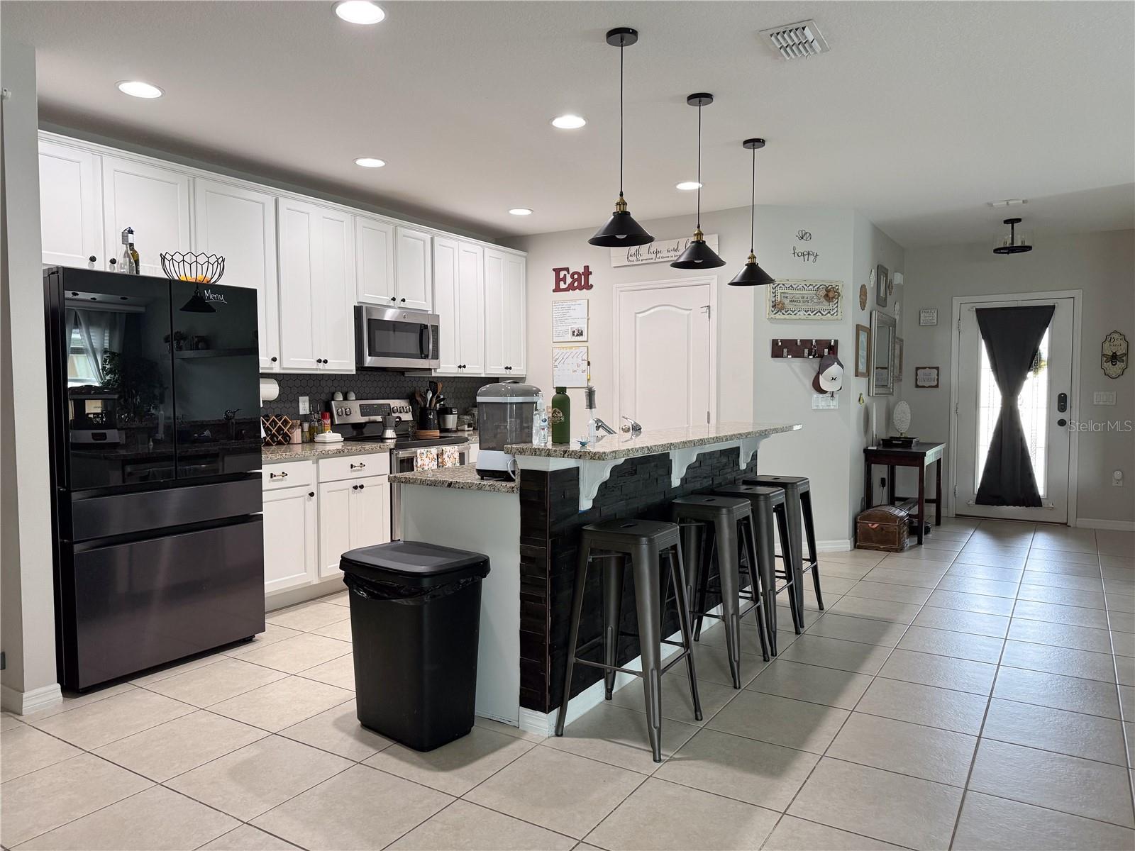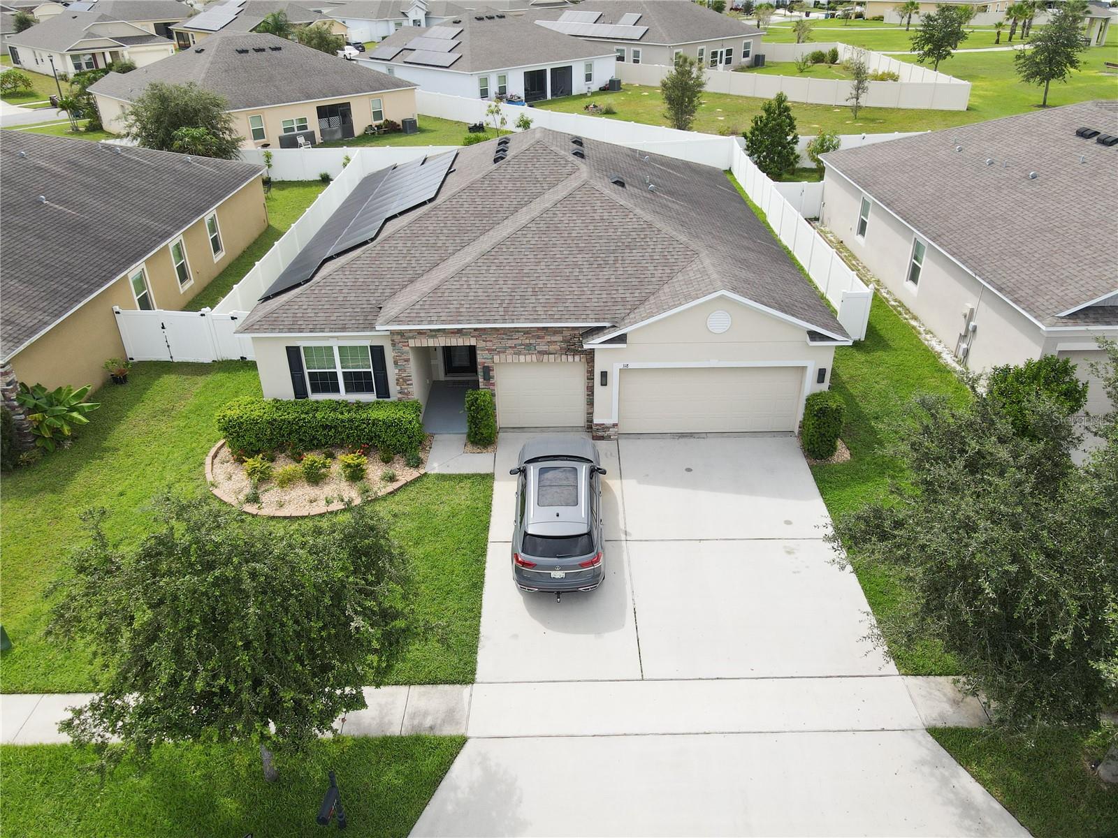 Welcome to 318 Briarbrook Lane in Haines City! This amazing home offers 3 spacious bedrooms, 2 bathrooms, and a generous 3-car garage. You’ll love the open floor plan, perfect for modern living and entertaining. The versatile den/office provides the flexibility to be used as a 4th bedroom if needed, catering to your growing needs. Prepare to be impressed by the incredibly spacious primary bathroom, featuring dual vanities, an oversized walk-in shower. This home features numerous upgrades, including a 2024 HVAC system with a humidifier controller for optimal comfort year-round. Water filter/softener system ensures high-quality water throughout the house. Vinyl fence surrounds the property, offering enhanced privacy and a concrete slab provides the perfect spot for entertainment and relaxation. The solar panel system will be fully paid off at closing by the seller, providing you with energy efficiency and savings. Enjoy the low HOA fees and take advantage of the nearby community playground and walking trails. Community allows long and short term rentals.