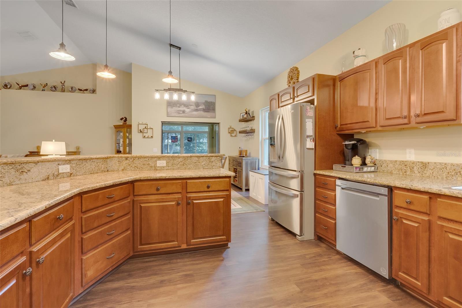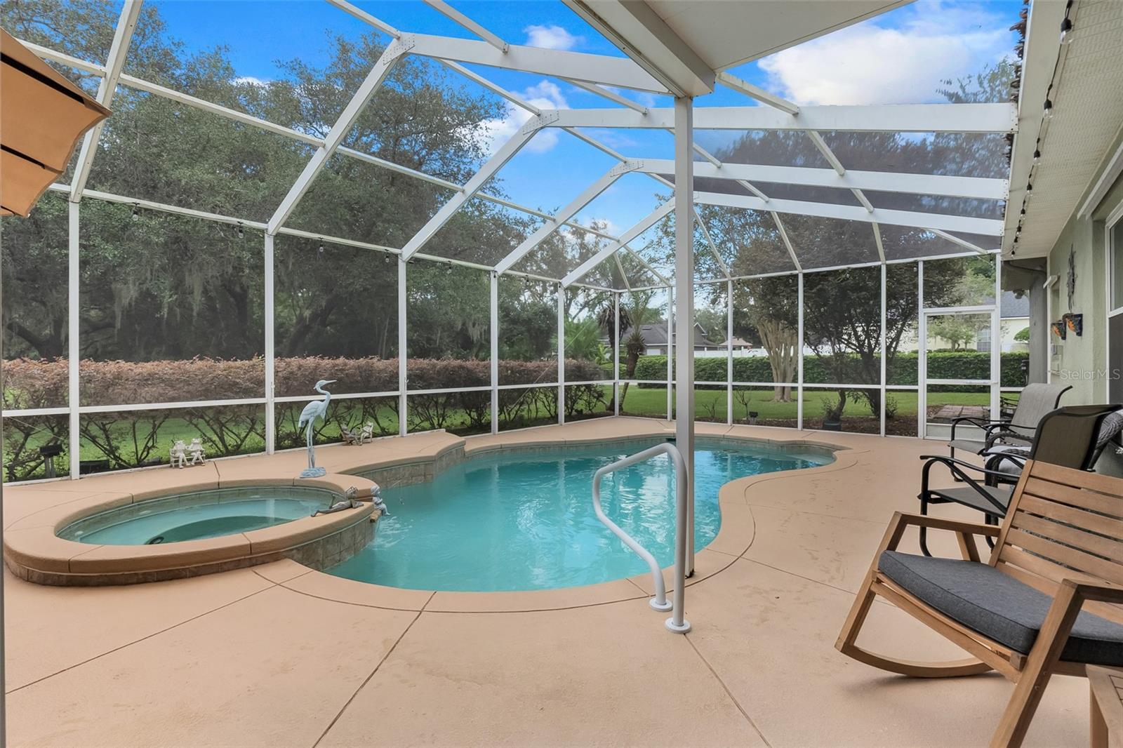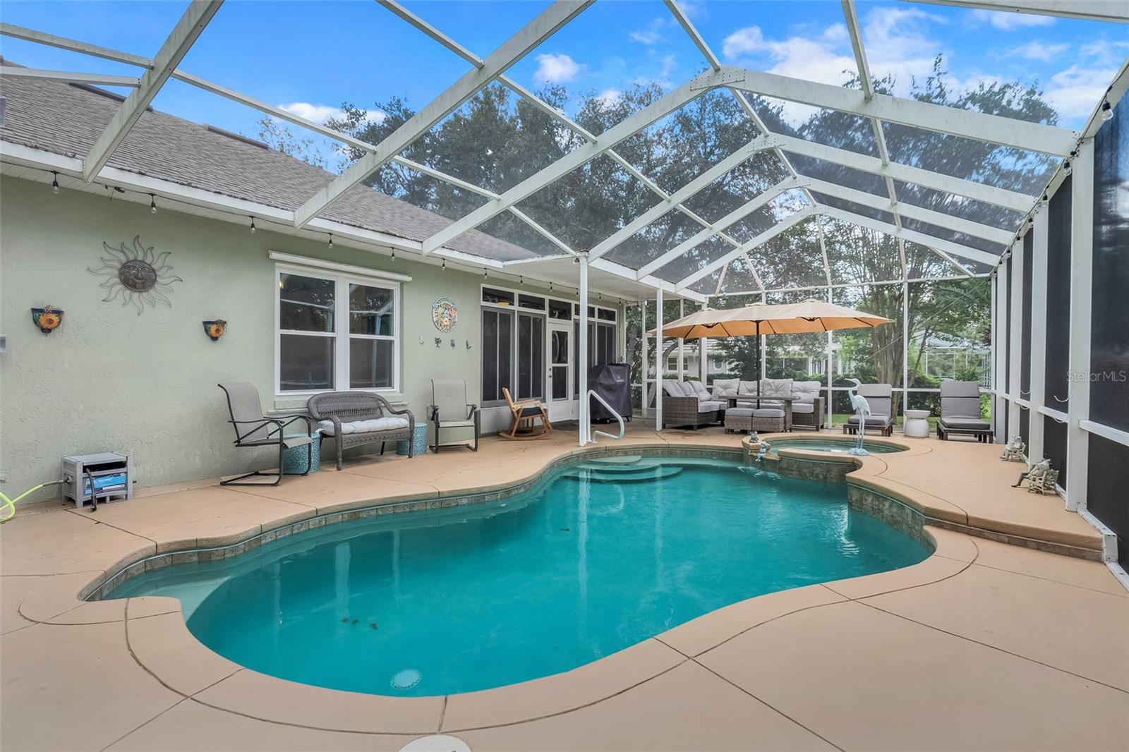 MAGNIFICENT POOL HOME IN SPRING PINES - FULLY UPGRADED! You will not want to miss this beautifully updated pool home, lovingly cared for and showcasing the ultimate pride of ownership! Nestled in the secluded and sought-after community of Spring Pines, this home offers privacy and charm with the lowest HOA around—just $75 year! This spacious home boasts three bedrooms, two bathrooms, and nearly 2,300 sq. ft. of living space. The open floor plan highlights low-maintenance luxury floors throughout the main areas and master bedroom. The large dream kitchen is perfect for any chef, featuring granite countertops, abundant built-ins, a pantry closet, and brand-new appliances, including a new refrigerator, oven, dishwasher, and new kitchen faucets (2023-2024). The home is move-in ready, with several recent updates in 2023-2024, including a new AC unit, new pool equipment and heater, a new dryer, a security system, and a new irrigation timer. Additional upgrades include a new thermostat, new entry lamp posts, added lanai lighting, and a fully rescreened pool cage. The home is also generator-ready—just plug in and flip the switch! Situated on over half an acre of land on a corner lot, the property provides ample space and privacy with no rear neighbors. There’s even a detached building that can serve as a workshop or craft room, complete with air conditioning. The community allows RV and boat parking on your property, with minor restrictions. This home has a deep water well for the best-tasting water, a septic system that was updated only 10 years ago, and a roof that was replaced in 2013. Come see what makes this home and community so unique!