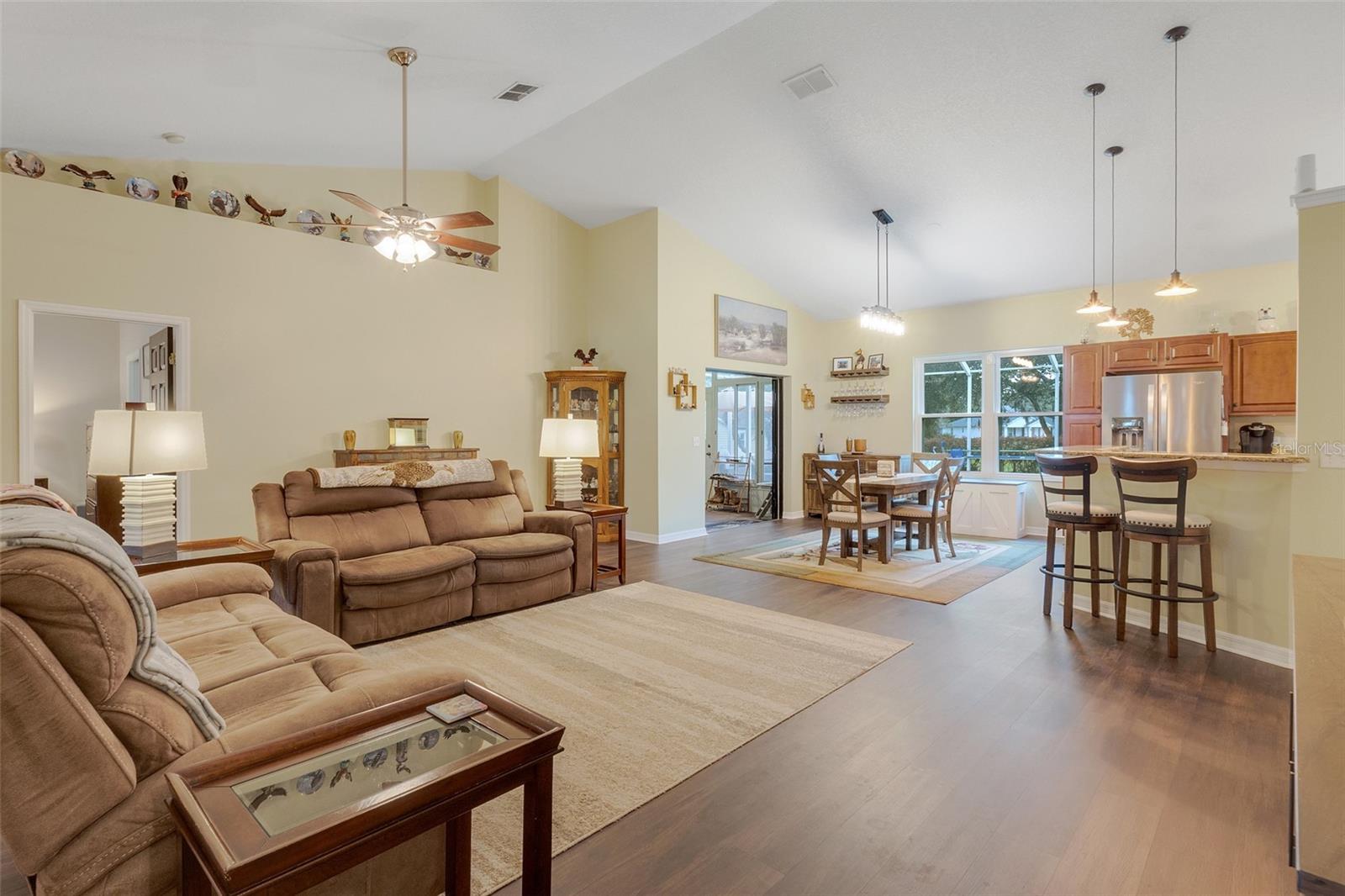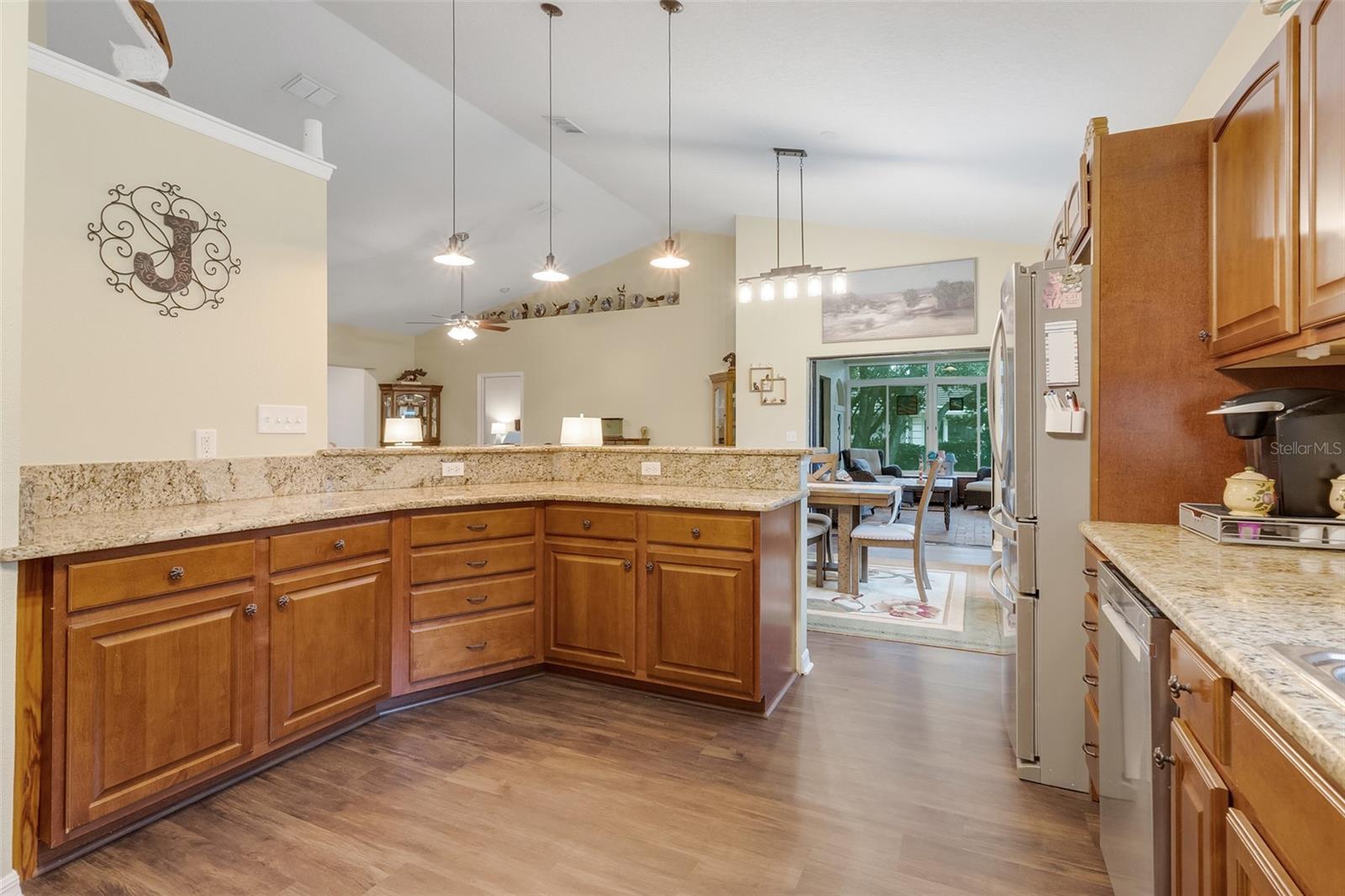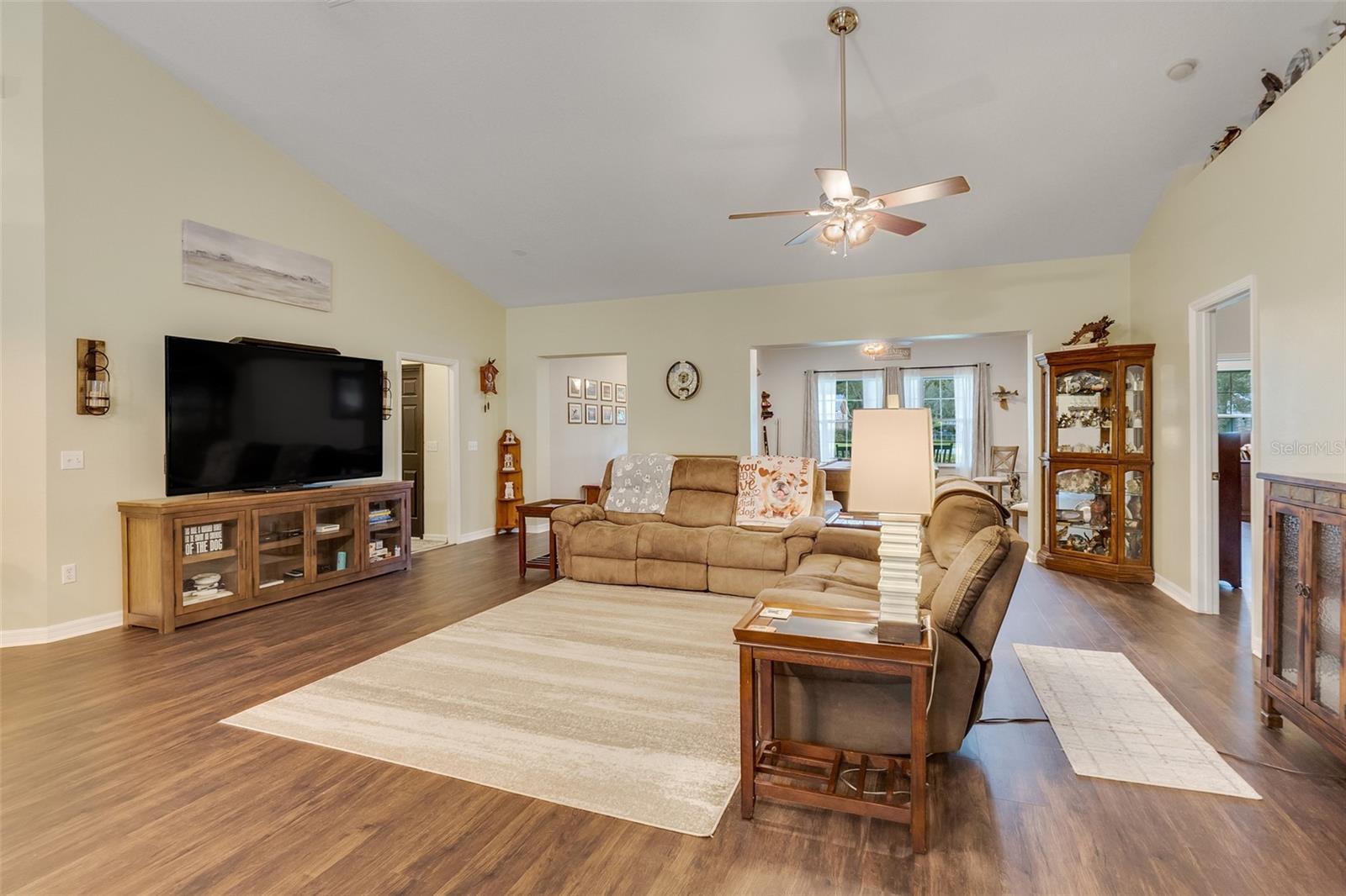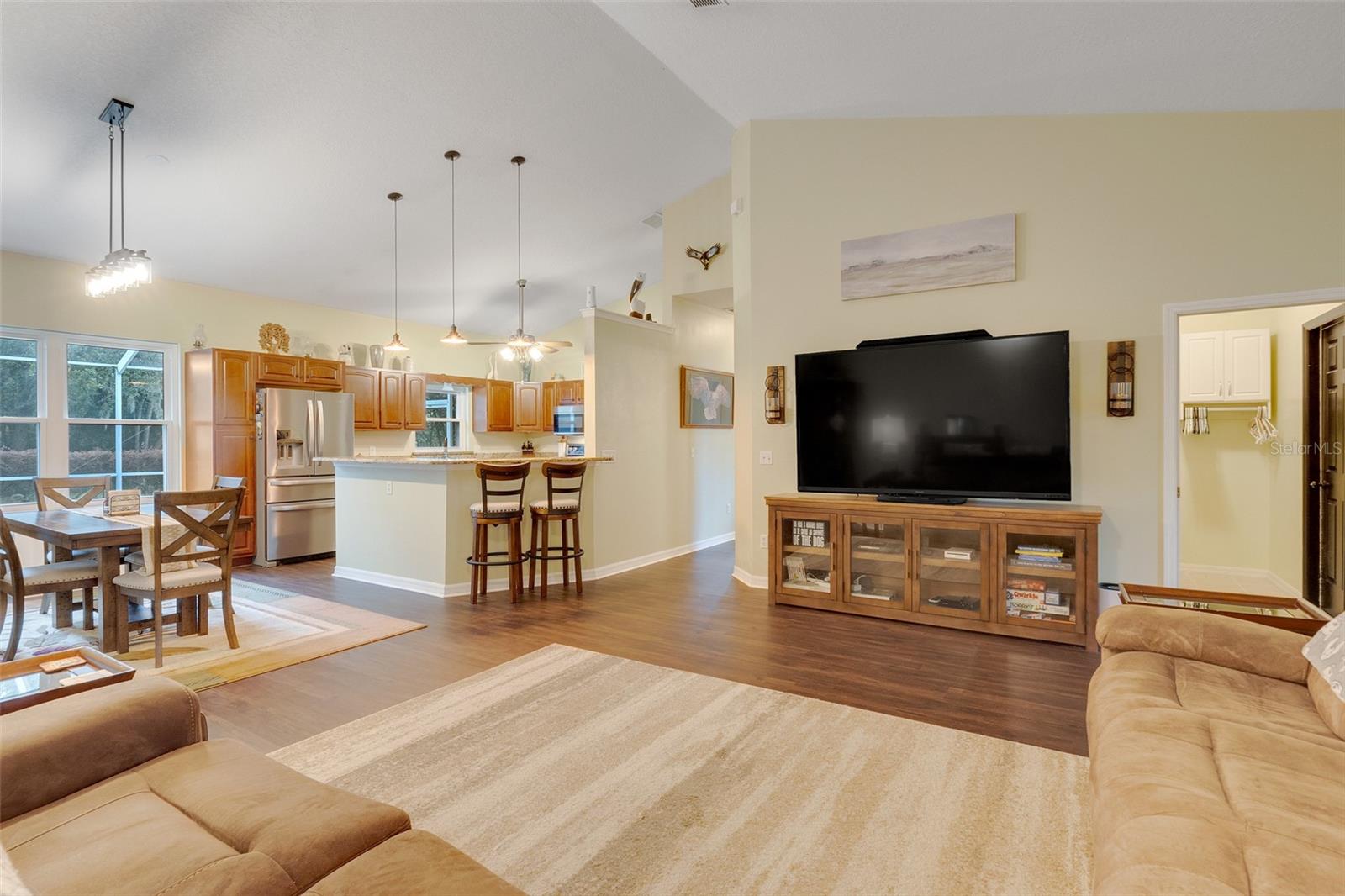 MAGNIFICENT POOL HOME IN SPRING PINES - FULLY UPGRADED! You will not want to miss this beautifully updated pool home, lovingly cared for and showcasing the ultimate pride of ownership! Nestled in the secluded and sought-after community of Spring Pines, this home offers privacy and charm with the lowest HOA around—just $75 year! This spacious home boasts three bedrooms, two bathrooms, and nearly 2,300 sq. ft. of living space. The open floor plan highlights low-maintenance luxury floors throughout the main areas and master bedroom. The large dream kitchen is perfect for any chef, featuring granite countertops, abundant built-ins, a pantry closet, and brand-new appliances, including a new refrigerator, oven, dishwasher, and new kitchen faucets (2023-2024). The home is move-in ready, with several recent updates in 2023-2024, including a new AC unit, new pool equipment and heater, a new dryer, a security system, and a new irrigation timer. Additional upgrades include a new thermostat, new entry lamp posts, added lanai lighting, and a fully rescreened pool cage. The home is also generator-ready—just plug in and flip the switch! Situated on over half an acre of land on a corner lot, the property provides ample space and privacy with no rear neighbors. There’s even a detached building that can serve as a workshop or craft room, complete with air conditioning. The community allows RV and boat parking on your property, with minor restrictions. This home has a deep water well for the best-tasting water, a septic system that was updated only 10 years ago, and a roof that was replaced in 2013. Come see what makes this home and community so unique!