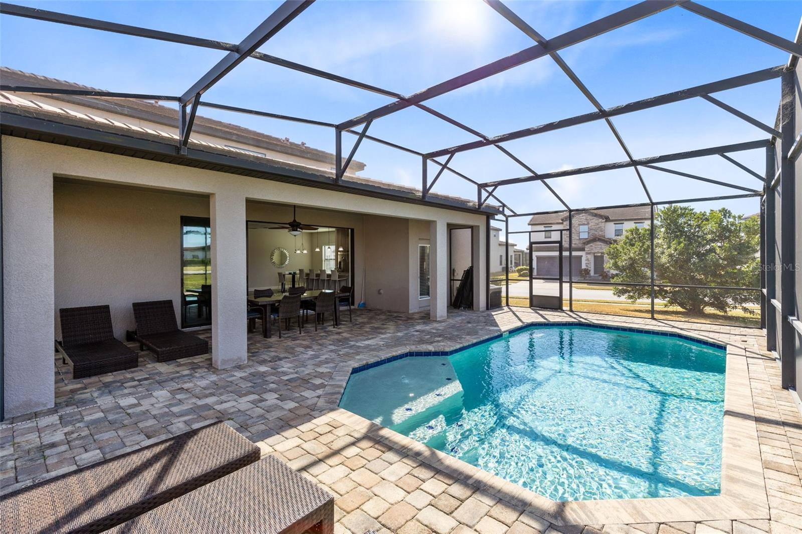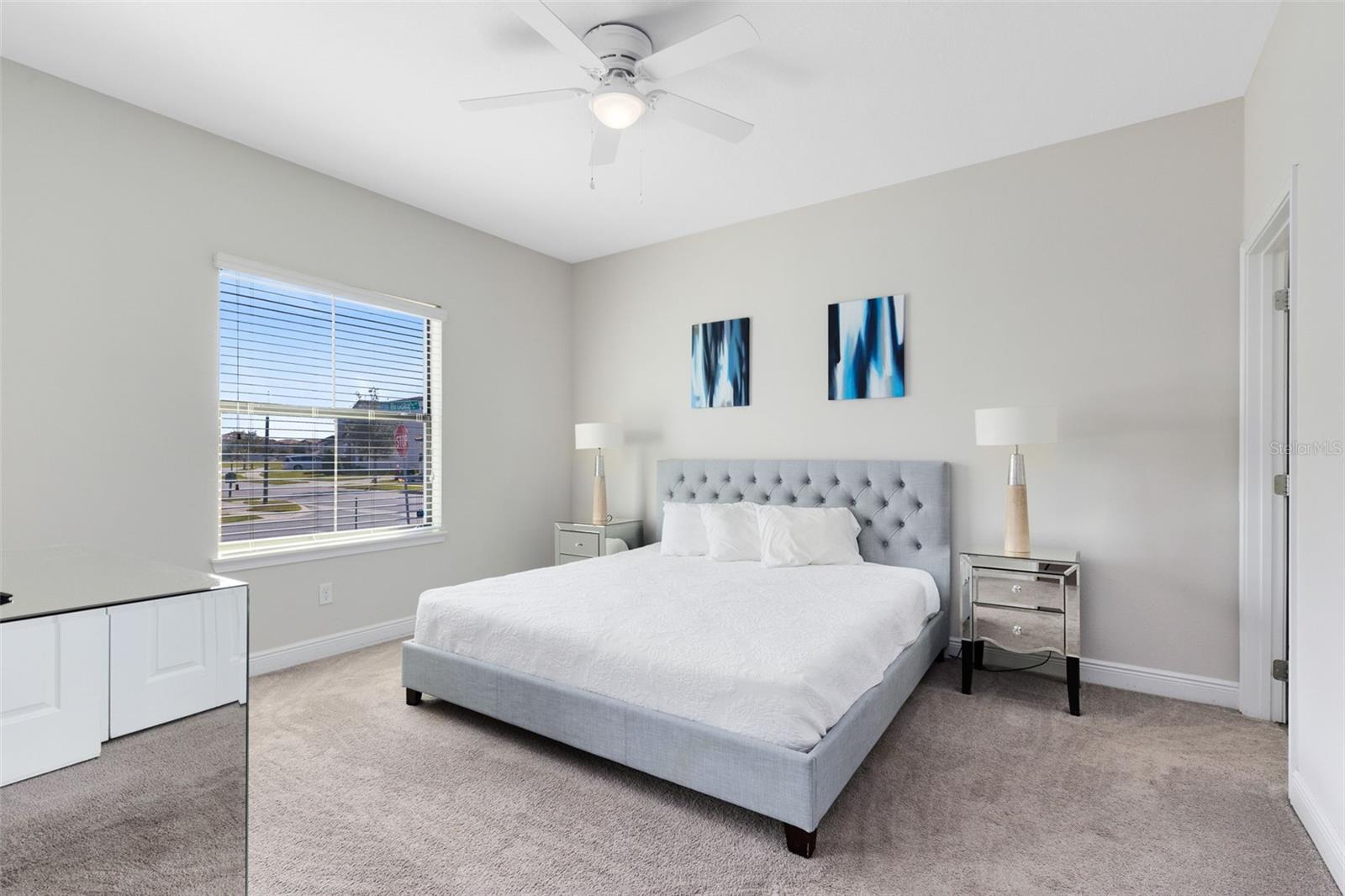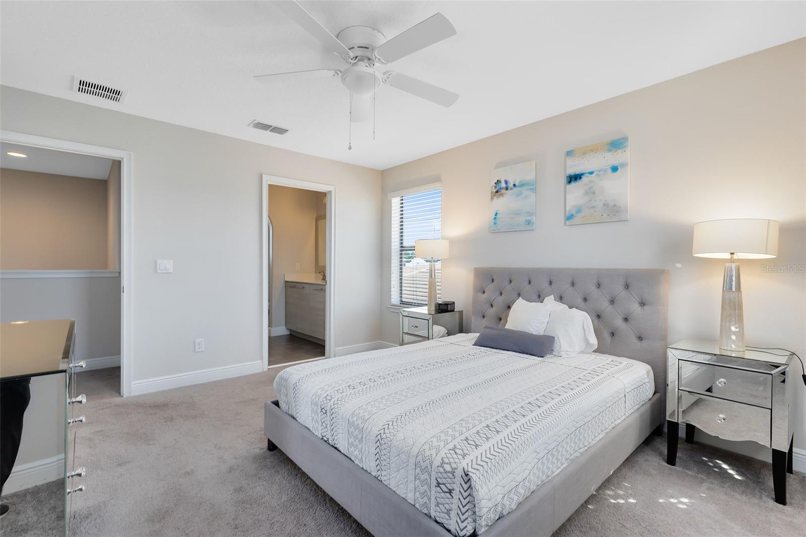 Welcome to your freshly painted dream home—where luxury, comfort, and convenience come together in perfect harmony! Nestled on a prime corner lot, this stunning 4-bedroom, 4.5 bathroom beauty is the ultimate retreat. Step inside and be immediately greeted by the peaceful, private bedroom and bath tucked away on your left—ideal for guests or a quiet sanctuary. As you make your way through the home, you’ll be drawn into the heart of the space—the open-concept kitchen and dining room. Featuring sleek stainless steel appliances, sparkling quartz countertops, and a large island with a breakfast bar, this kitchen is as stylish as it is functional. The space flows effortlessly into the spacious living room, where a wall of glass opens to reveal your own backyard oasis. Step outside onto the expansive covered patio, complete with room for outdoor dining and lounging, and enjoy the gorgeous, fully enclosed private pool with new pool filter—perfect for year-round relaxation and entertaining. Back inside, you'll find a convenient half bath, located just off the kitchen, with easy access to the back patio. Upstairs, the versatile loft area serves as a great space for anything from a home office to a playroom. You'll also find three spacious bedrooms, each with its own ensuite bath—offering plenty of space and privacy for everyone. The primary suite is an absolute retreat, featuring a luxurious bathroom with double sinks, a walk-in shower, and a separate water closet. And with the added bonus of a high-quality water filtration system throughout the home, you can rest easy knowing every drop is pristine. But the luxury doesn’t stop inside. This property is part of a vibrant, resort-style community that’s packed with amenities to enhance your lifestyle. Dive into the zero-entry community pool with waterslides and a hot tub, or let the kids enjoy their own play area. Stay fit at the state-of-the-art fitness center or enjoy a bite at the poolside restaurant. For fishing enthusiasts, there’s a community dock with access to a nearby lake—perfect for spending leisurely afternoons by the water. With 24/7 security at the guard gate, you can relax and enjoy all the community has to offer, knowing your safety and privacy are top priority. This isn’t just a home—it’s a lifestyle. Don’t wait to make this beauty yours! Call today to schedule your private showing and experience the charm and elegance of this exceptional property!