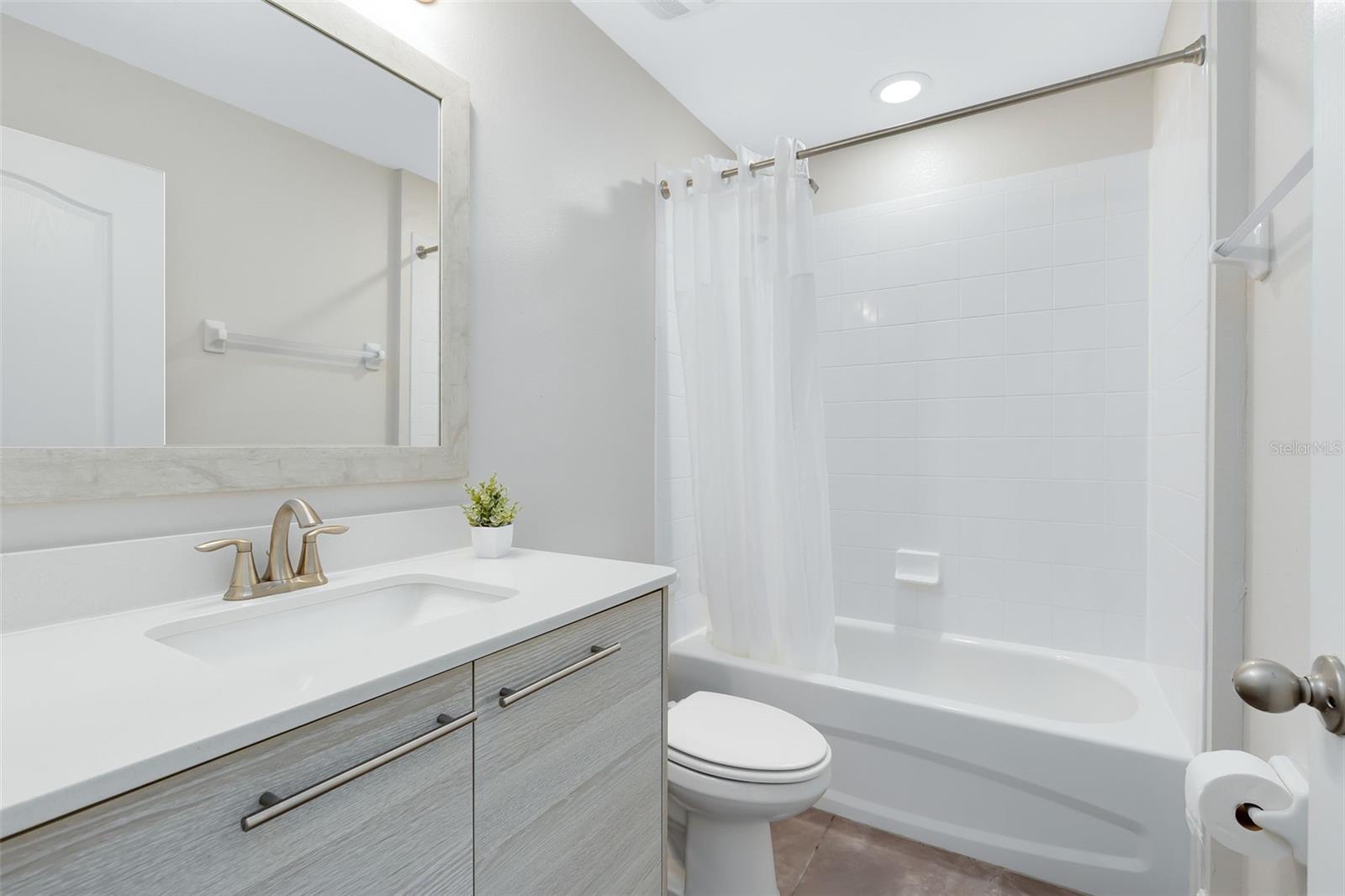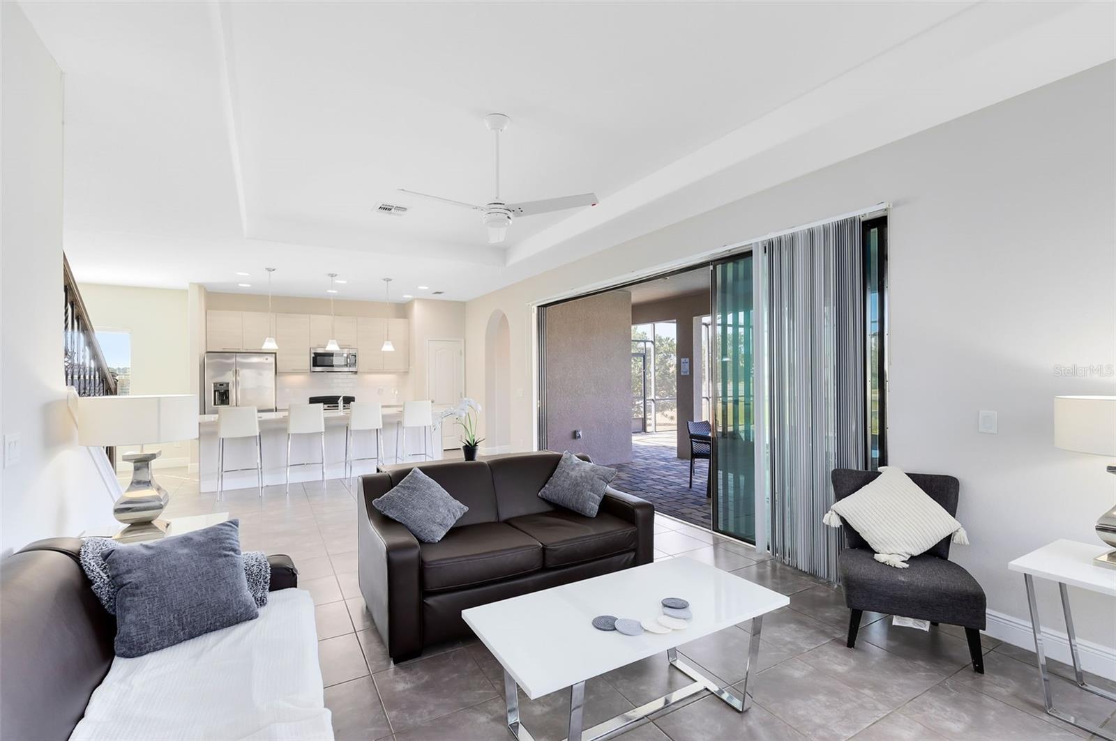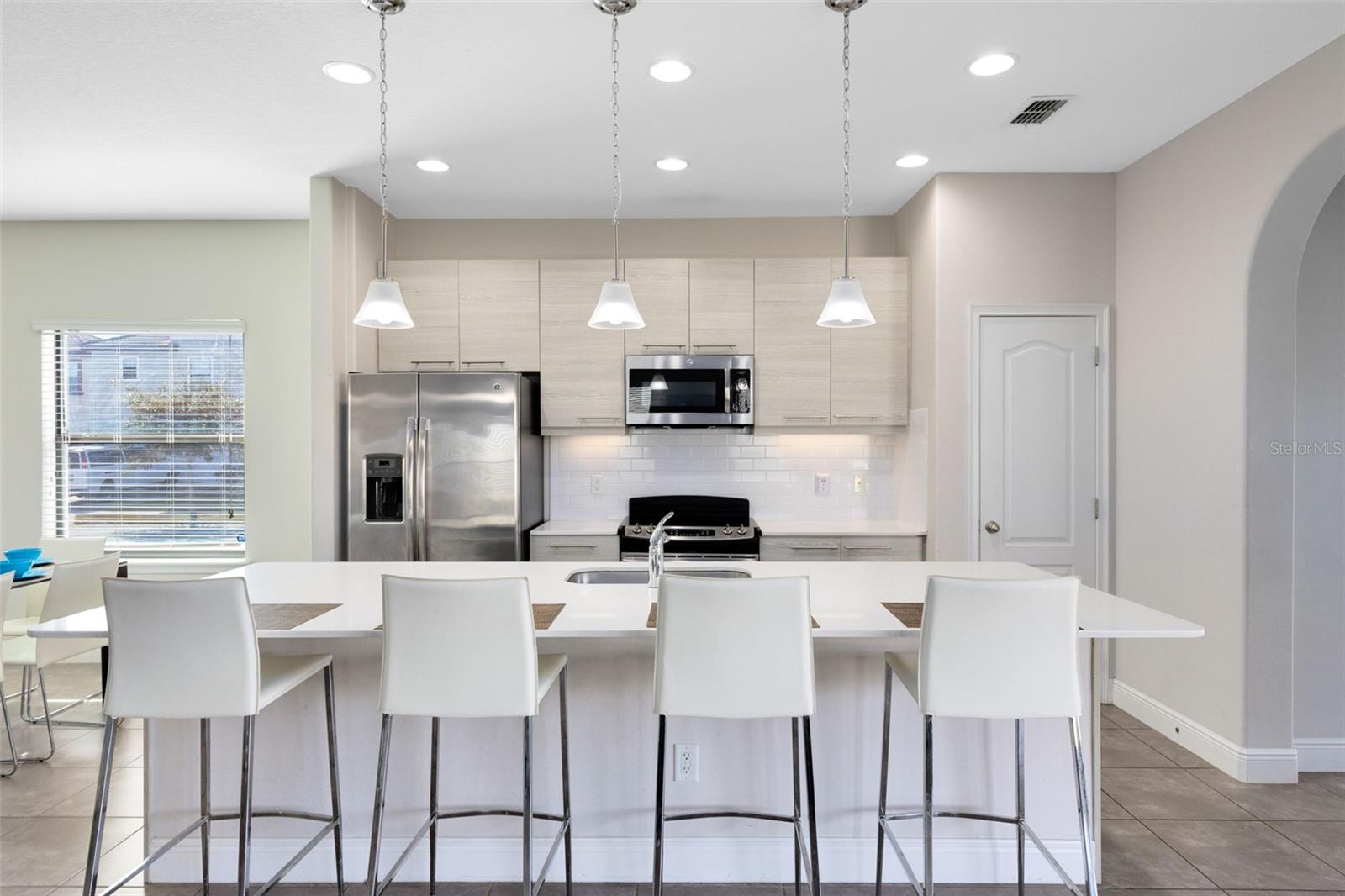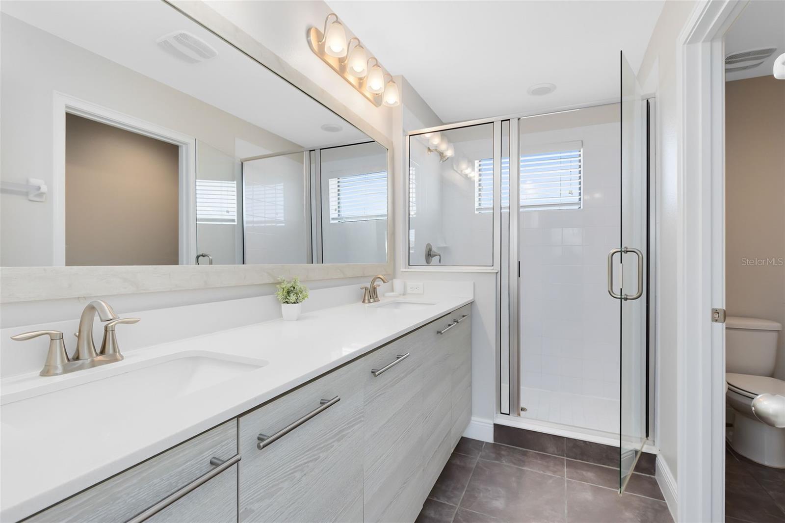 Welcome to your freshly painted dream home—where luxury, comfort, and convenience come together in perfect harmony! Nestled on a prime corner lot, this stunning 4-bedroom, 4.5 bathroom beauty is the ultimate retreat. Step inside and be immediately greeted by the peaceful, private bedroom and bath tucked away on your left—ideal for guests or a quiet sanctuary. As you make your way through the home, you’ll be drawn into the heart of the space—the open-concept kitchen and dining room. Featuring sleek stainless steel appliances, sparkling quartz countertops, and a large island with a breakfast bar, this kitchen is as stylish as it is functional. The space flows effortlessly into the spacious living room, where a wall of glass opens to reveal your own backyard oasis. Step outside onto the expansive covered patio, complete with room for outdoor dining and lounging, and enjoy the gorgeous, fully enclosed private pool with new pool filter—perfect for year-round relaxation and entertaining. Back inside, you'll find a convenient half bath, located just off the kitchen, with easy access to the back patio. Upstairs, the versatile loft area serves as a great space for anything from a home office to a playroom. You'll also find three spacious bedrooms, each with its own ensuite bath—offering plenty of space and privacy for everyone. The primary suite is an absolute retreat, featuring a luxurious bathroom with double sinks, a walk-in shower, and a separate water closet. And with the added bonus of a high-quality water filtration system throughout the home, you can rest easy knowing every drop is pristine. But the luxury doesn’t stop inside. This property is part of a vibrant, resort-style community that’s packed with amenities to enhance your lifestyle. Dive into the zero-entry community pool with waterslides and a hot tub, or let the kids enjoy their own play area. Stay fit at the state-of-the-art fitness center or enjoy a bite at the poolside restaurant. For fishing enthusiasts, there’s a community dock with access to a nearby lake—perfect for spending leisurely afternoons by the water. With 24/7 security at the guard gate, you can relax and enjoy all the community has to offer, knowing your safety and privacy are top priority. This isn’t just a home—it’s a lifestyle. Don’t wait to make this beauty yours! Call today to schedule your private showing and experience the charm and elegance of this exceptional property!