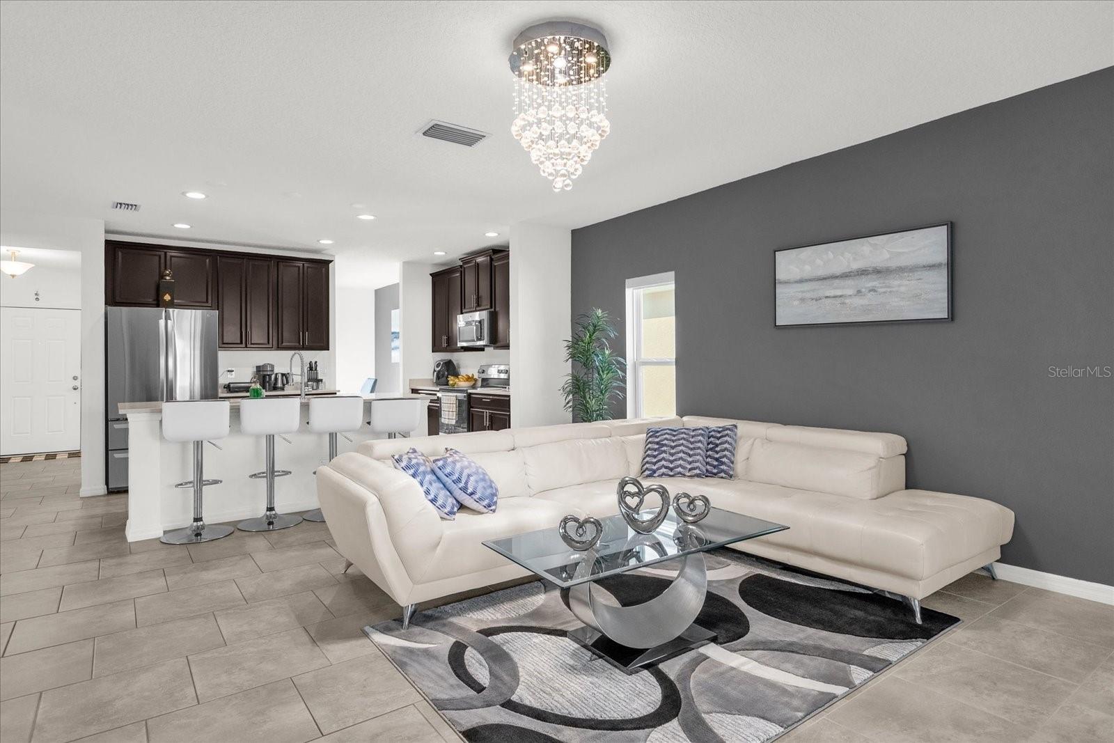This fully FURNISHED 3-bedroom, 2-bath home with a 2-car garage in Orchid Terrace offers an unbeatable combination of luxury, convenience, and top-tier amenities. Bonus Package Included , this home comes with everything shown in the photos, plus: • Whole-house Westinghouse water purification system • 950 - HVAC air filters (various sizes) • 60-inch horizontal refrigerator and freezer • Mini executive fridge and freezer • Hot and cold water dispenser with a 5-gallon jug Home Features • Modern kitchen with quartz countertops, 42-inch Tahoe Maple Espresso cabinets, and stainless steel appliances • Spacious Great Room and formal dining area • Luxury master bath with Kohler digital shower, dual shower heads, frameless glass, and raised vanities • Upgraded flooring with 18-inch ceramic tile in living areas and plush carpet in bedrooms • Covered lanai, brick paver driveway, and premium landscaping Community Perks • Resort-style pool, dog park, playground, and walking paths • Sidewalks for an active, pedestrian-friendly lifestyle • Prime location just 10 minutes from I-4, Posner Park, and 25 minutes to Disney This is more than just a home—it is a move-in-ready lifestyle upgrade. Schedule your showing today.
