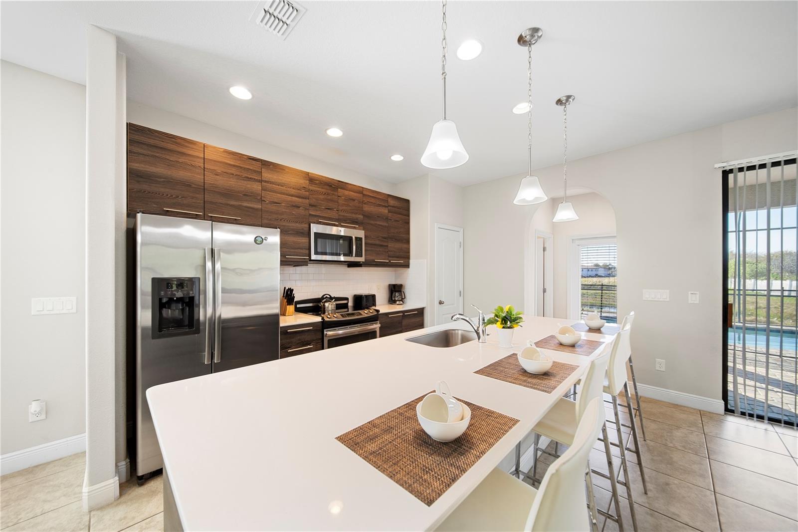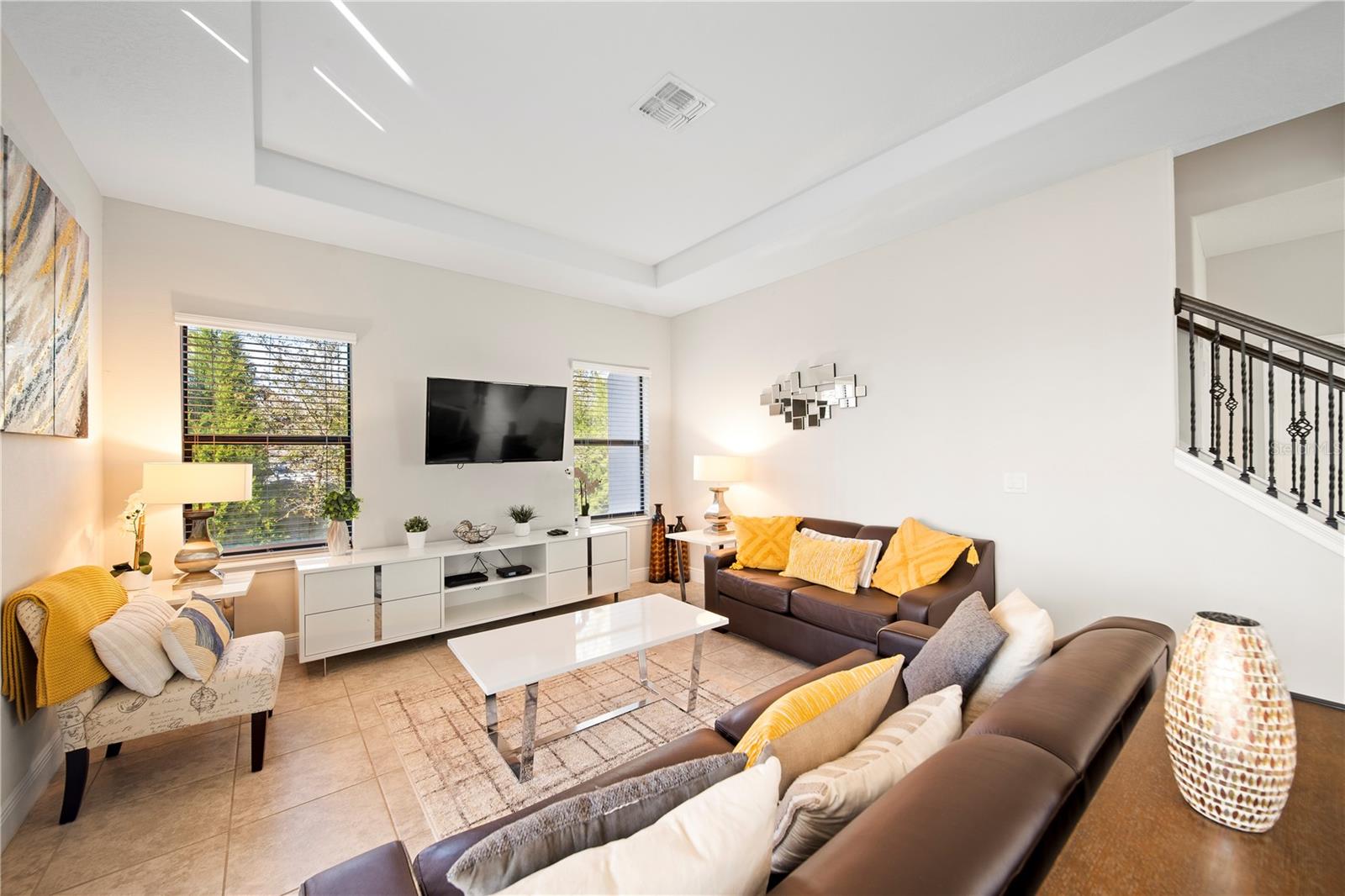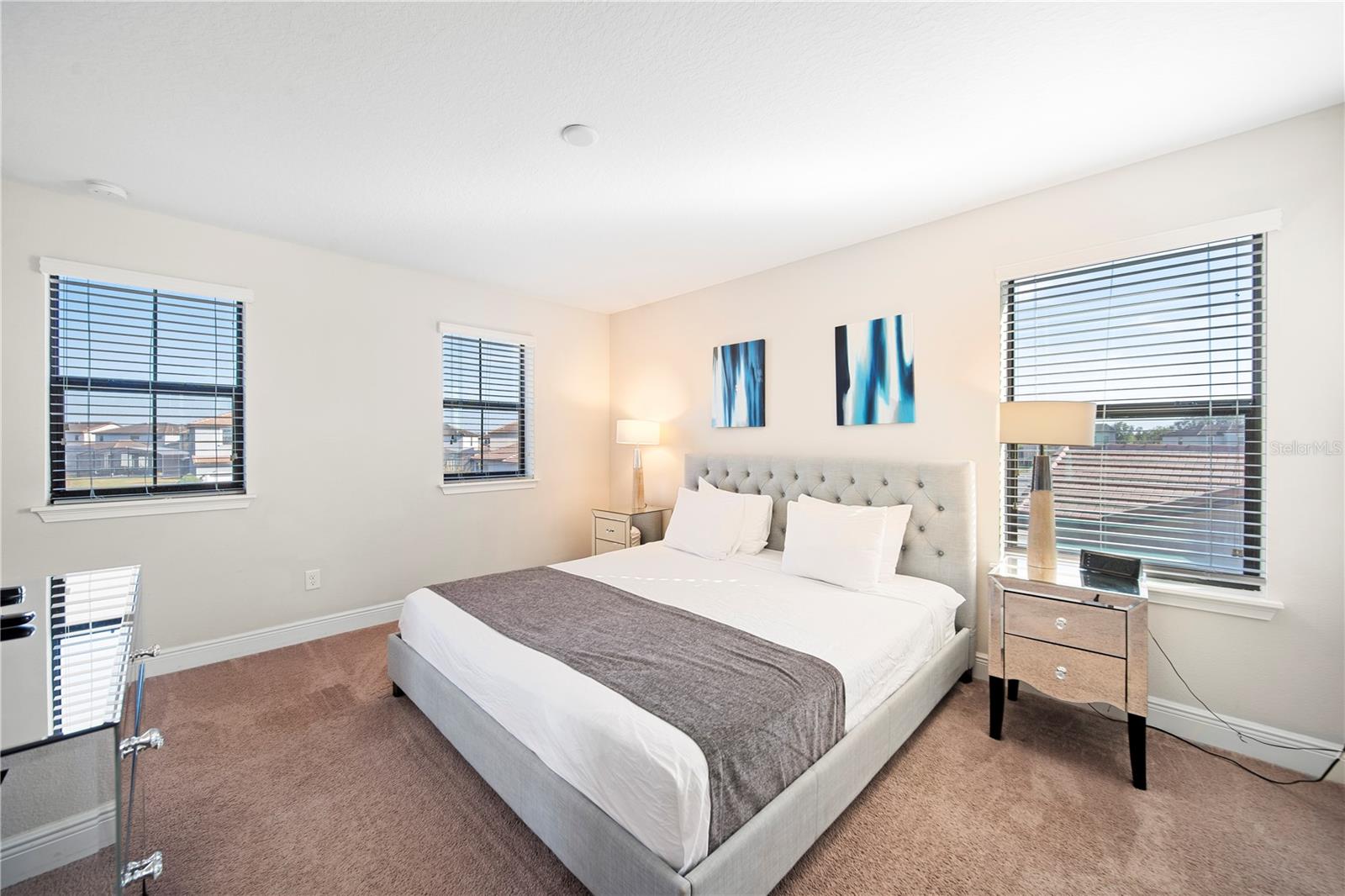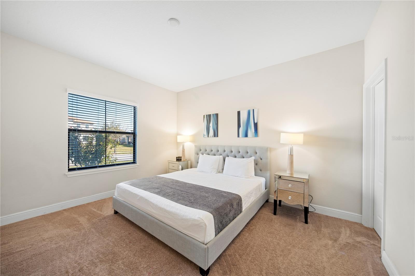 FULLY FURNISHED & MOVE IN READY! Welcome to Balmoral Estates, where luxury living meets vacation bliss! This stunning 4-bedroom, 4.5-bathroom home combines elegance and comfort, conveniently located just 35 minutes from Disney theme parks and 15 minutes from Lego Land. Set within a secure gated community, this property offers an unparalleled lifestyle with exclusive access to a wide array of amenities, including a water park, pool, cabanas, fitness center, volleyball court, sandy beaches, mini-golf, scenic walkways, tranquil ponds, and an outdoor Bar and Grill—perfect for hosting family and friends. Inside, the open-concept living and dining areas flow seamlessly into a chef’s dream kitchen, complete with a breakfast island and gleaming quartz countertops. The first-floor master suite ensures privacy and direct access to a private, screen-enclosed pool. Upstairs, each bedroom features its own en-suite bathroom, providing a comfortable retreat for guests or family. This home offers a turnkey solution for embracing the resort lifestyle that Balmoral Estates at Water's Edge is celebrated for. Don’t miss this rare opportunity to own a slice of paradise. Enjoy the perfect blend of proximity to world-renowned attractions and the serenity of an exclusive community. Schedule your tour today and start living the Florida dream!