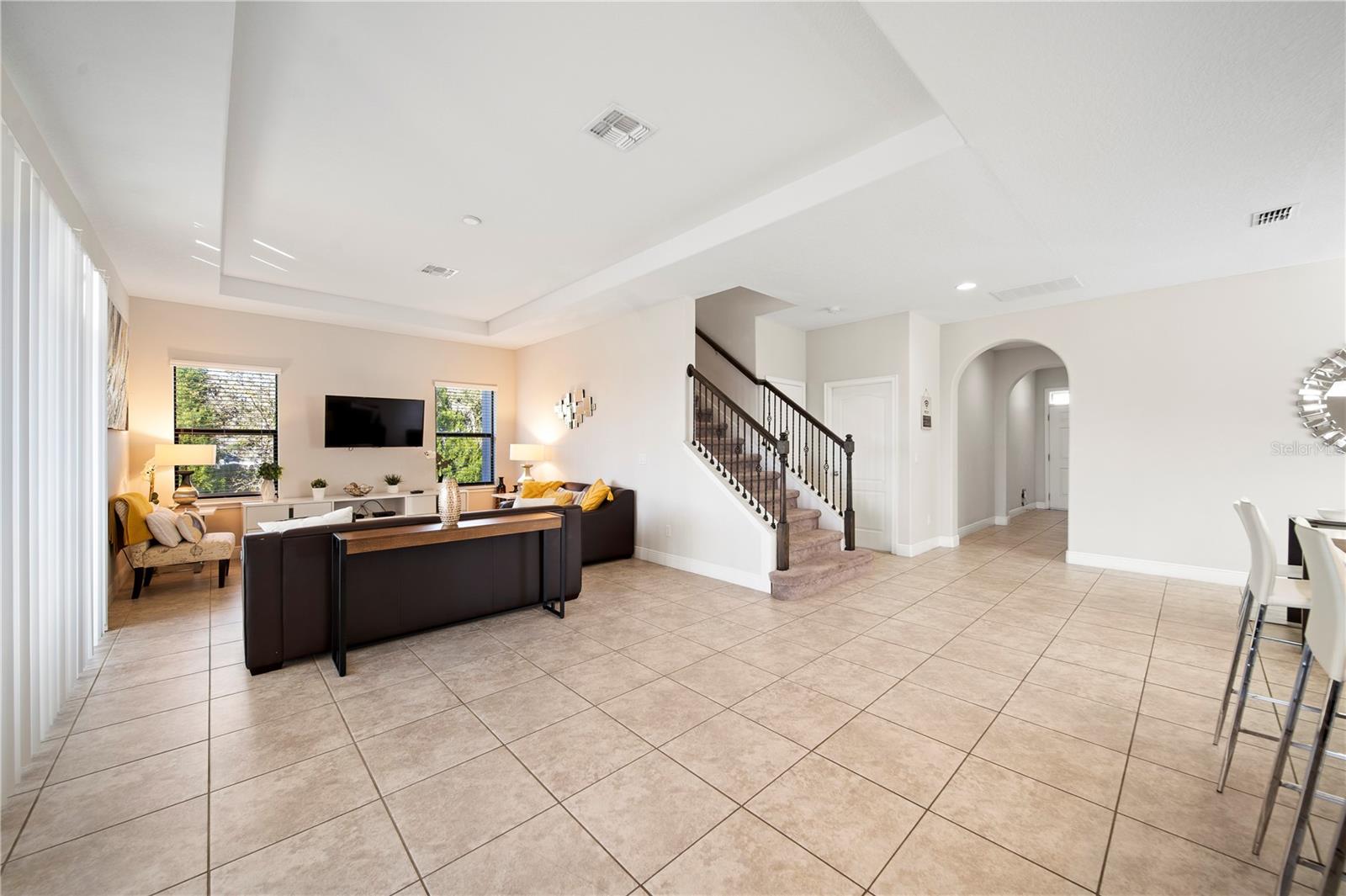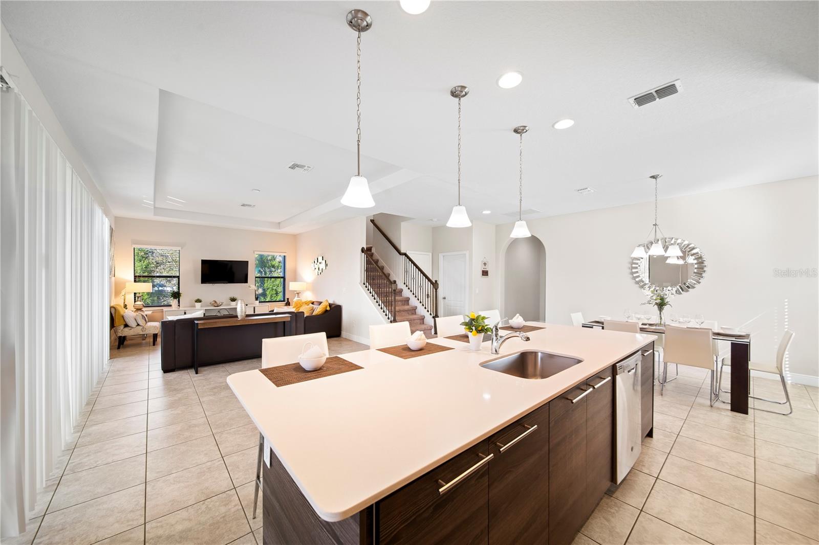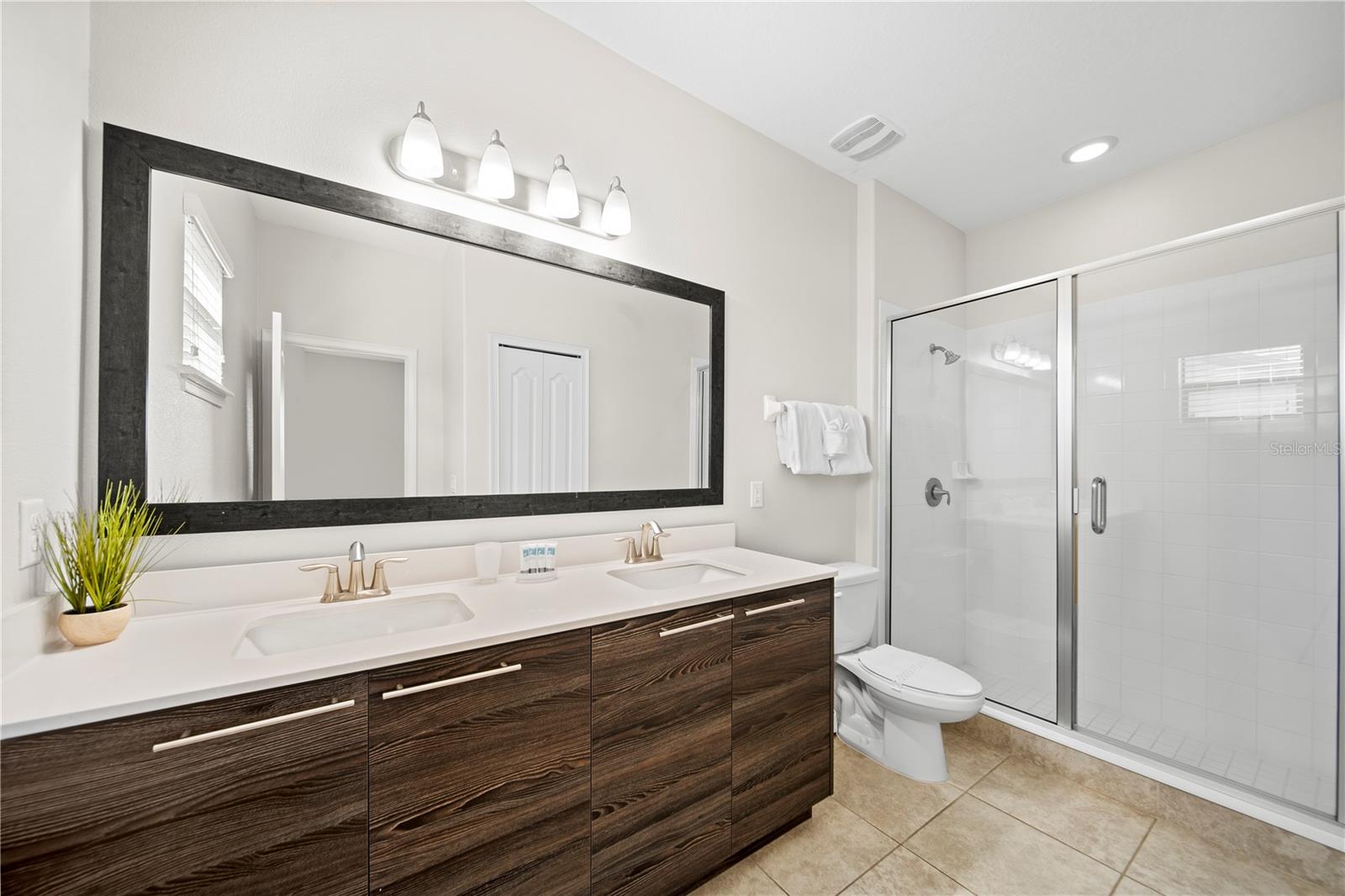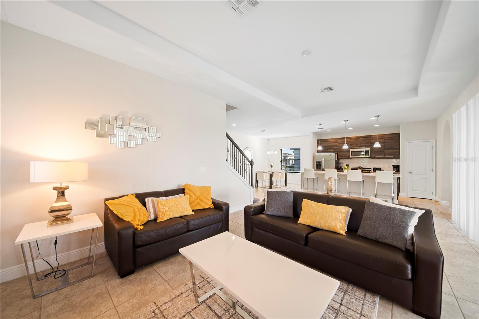 FULLY FURNISHED & MOVE IN READY! Welcome to Balmoral Estates, where luxury living meets vacation bliss! This stunning 4-bedroom, 4.5-bathroom home combines elegance and comfort, conveniently located just 35 minutes from Disney theme parks and 15 minutes from Lego Land. Set within a secure gated community, this property offers an unparalleled lifestyle with exclusive access to a wide array of amenities, including a water park, pool, cabanas, fitness center, volleyball court, sandy beaches, mini-golf, scenic walkways, tranquil ponds, and an outdoor Bar and Grill—perfect for hosting family and friends. Inside, the open-concept living and dining areas flow seamlessly into a chef’s dream kitchen, complete with a breakfast island and gleaming quartz countertops. The first-floor master suite ensures privacy and direct access to a private, screen-enclosed pool. Upstairs, each bedroom features its own en-suite bathroom, providing a comfortable retreat for guests or family. This home offers a turnkey solution for embracing the resort lifestyle that Balmoral Estates at Water's Edge is celebrated for. Don’t miss this rare opportunity to own a slice of paradise. Enjoy the perfect blend of proximity to world-renowned attractions and the serenity of an exclusive community. Schedule your tour today and start living the Florida dream!