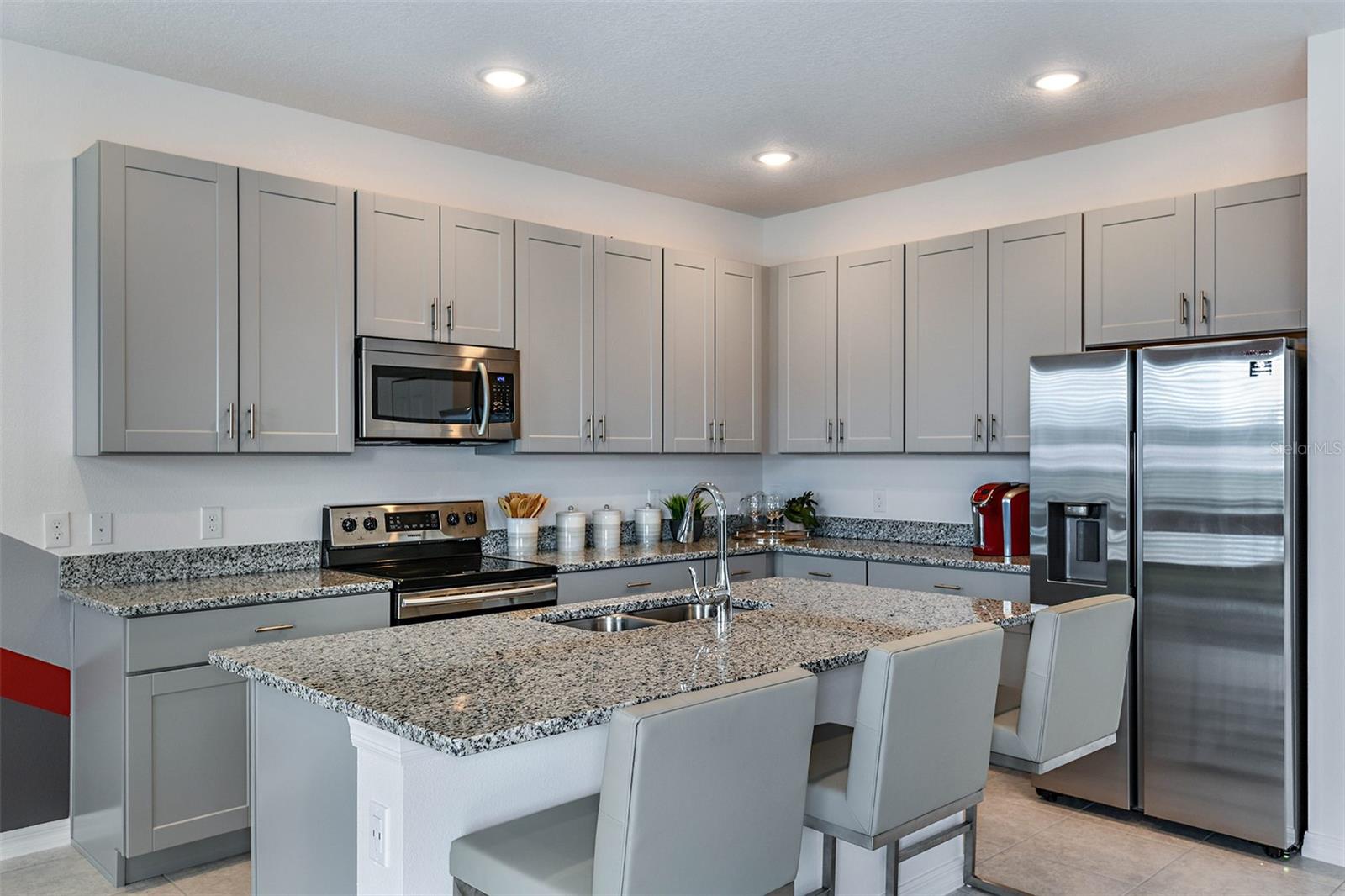Imagine yourself in this 4 bedroom 3 bathroom home that provides plenty of space and comfort for your family. This home features 17" x 17" ceramic tile that flows through all of your living areas as well as the bathrooms. The 9’4” ceilings let in the natural Florida light and opens up your living spaces. The kitchen features ample cabinetry with 42” upper cabinets for extra storage, a spacious island with sink, granite countertops, and stainless steel appliances including a microwave over the range, dishwasher, and refrigerator. Every home comes with blinds on the windows and our SMART home technology package. Imagine the possibilities and make your family’s dreams come true. These images are for illustrative purposes only and may not depict the exact specifications or details of the actual home available for sale.