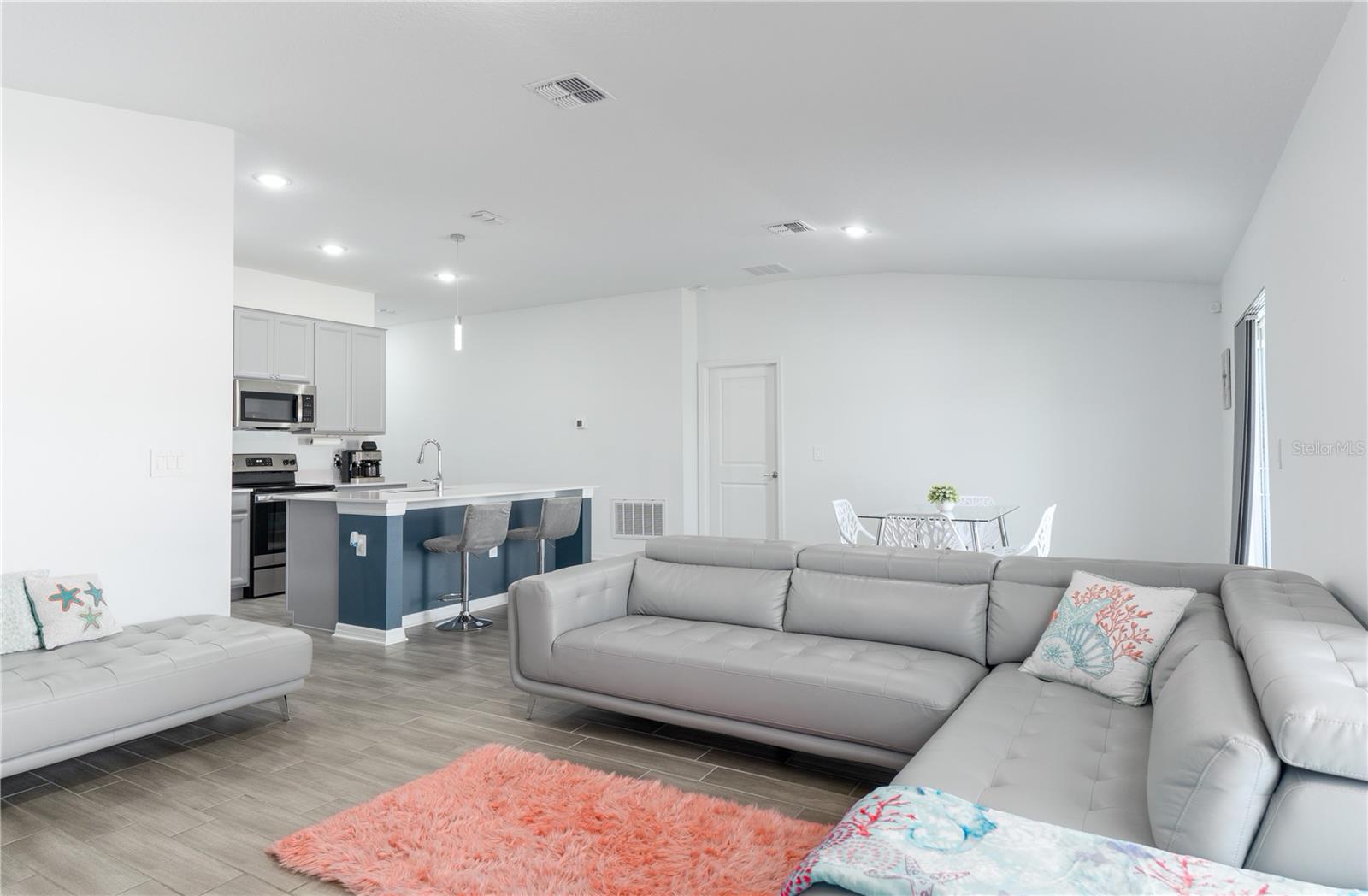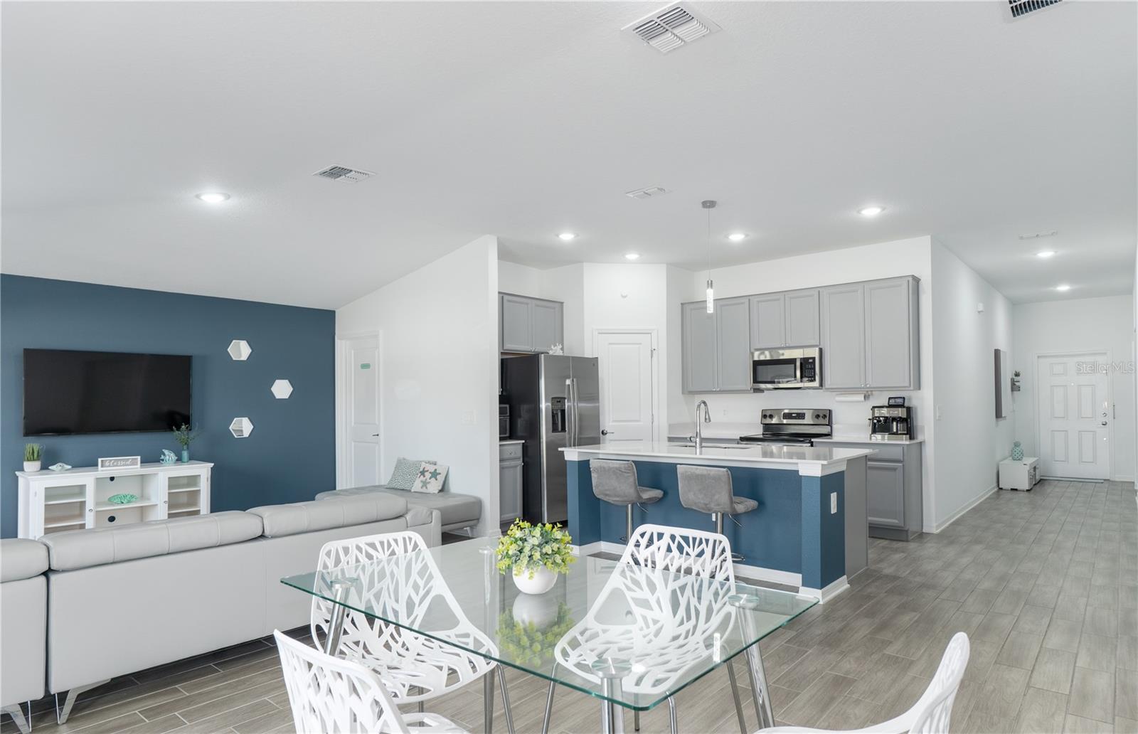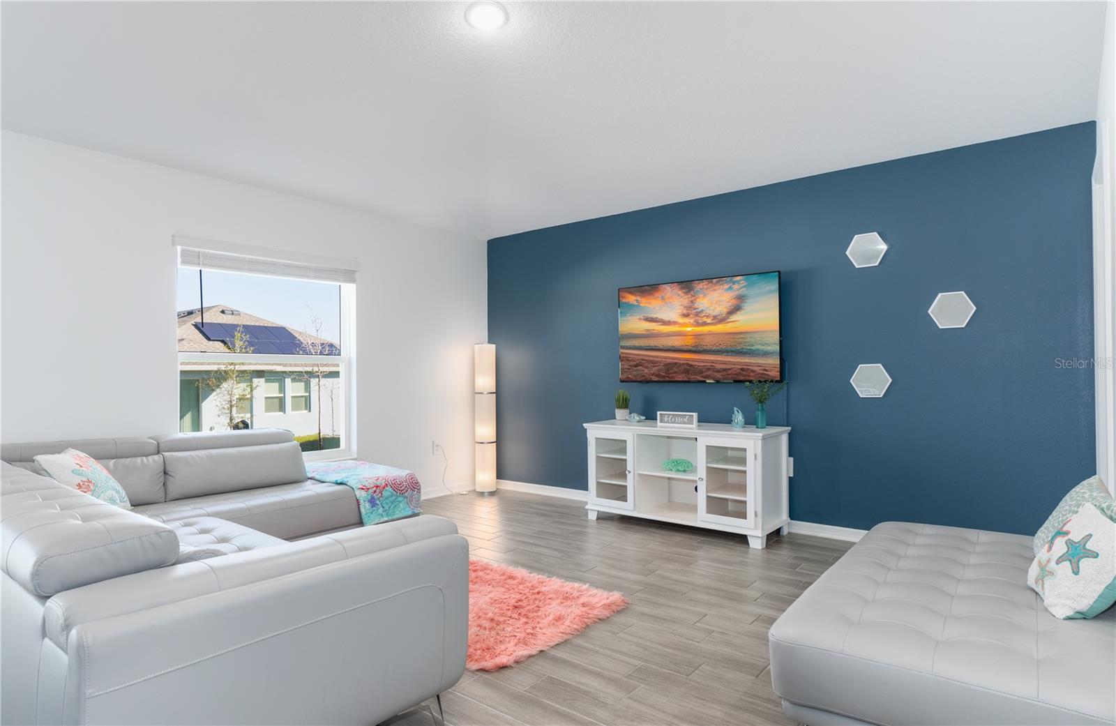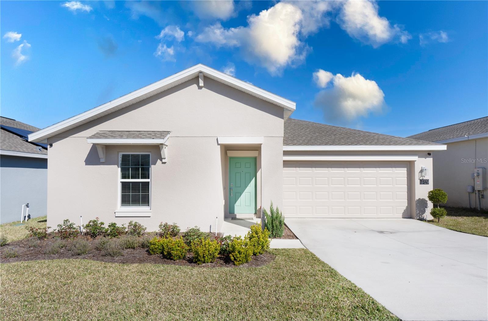 Great curb appeal and charm throughout! This immaculate home features an open-concept layout with tall ceilings, large windows, and stylish finishes, including quartz countertops and wood-look tile. The modern kitchen offers custom cabinetry, a chic backsplash, and stainless steel appliances. The primary suite includes an ensuite bath and custom walk-in closet, while additional bedrooms provide flexibility for family, guests, or an office. Step outside to an open patio and spacious backyard. Smart home features include a Schlage smart lock, MyQ garage door opener, Flo by Moen water monitor, solar panels, and a generator transfer switch. Enjoy community amenities like a private pool, parks, playgrounds, and a dog park. This home has it all—style, technology, and comfort. Call today for your private showing!