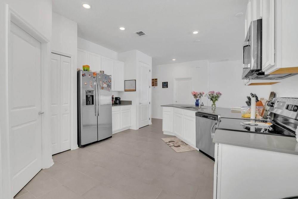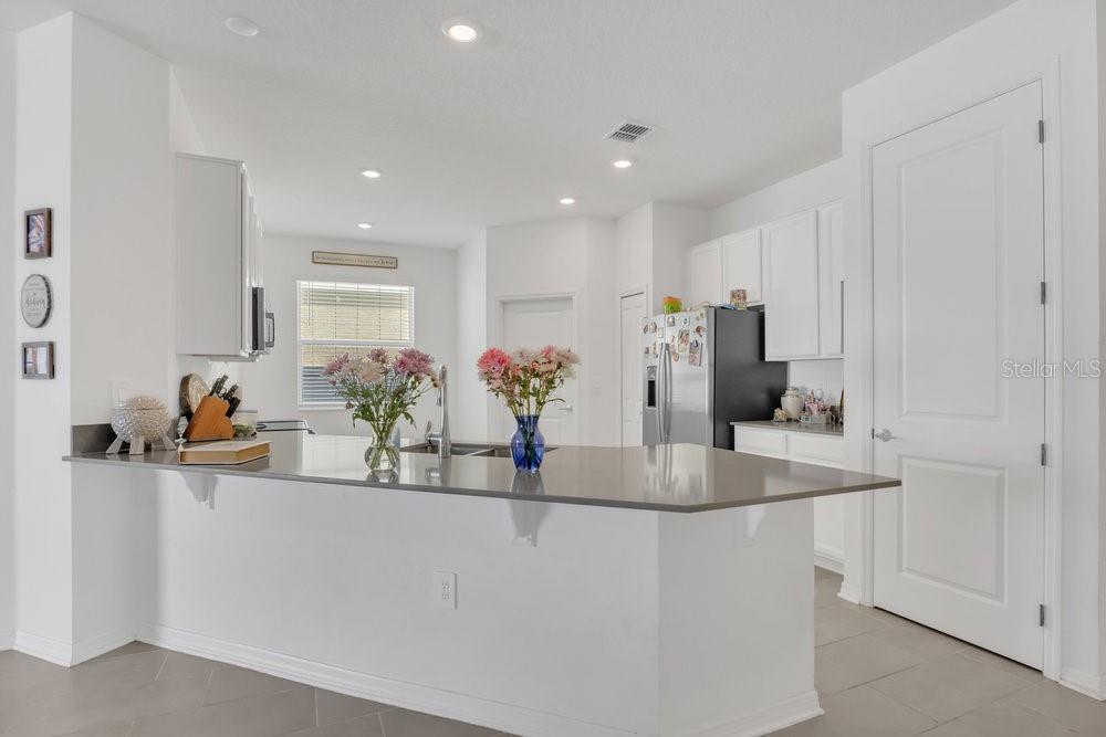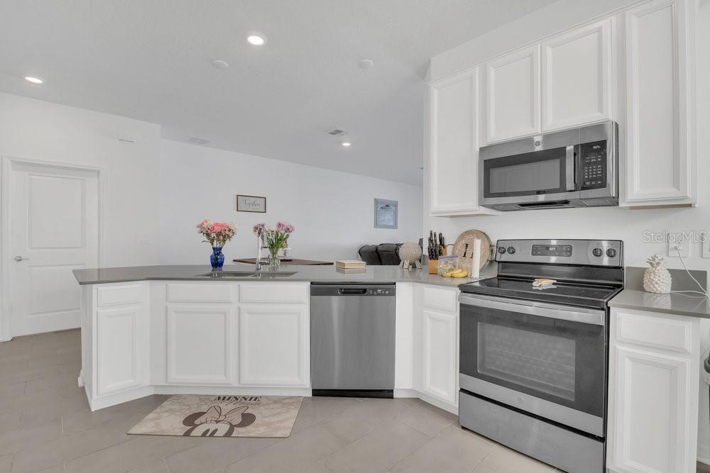 Welcome to this immaculate 4-bedroom (could be 5 with 2nd suite no closet), 3-bath home in the highly sought-after Cypress Park Estates community of Haines City, Florida. Designed with both style and functionality in mind, this home is perfect for families, especially those seeking a private in-law suite. This dedicated suite offers its own separate entrance, a cozy living room, a convenient laundry area, and a fully equipped kitchenette, providing the perfect space for extended family or guests while ensuring privacy and comfort. Step inside to find a beautifully open floor plan filled with natural light, modern finishes, and elegant design elements throughout. The main living area flows effortlessly into a well-appointed kitchen, complete with stainless steel appliances, including a refrigerator, microwave, dishwasher, and stackable washer and dryer, making everyday living a breeze. The spacious layout allows for easy entertaining while offering a sense of warmth and comfort. Outside, the partially fenced yard creates a perfect blend of privacy and open space, ideal for relaxing afternoons or playtime with family and pets. A spacious two-car garage provides ample parking and additional storage. Beyond the home itself, the Cypress Park Estates community offers an array of amenities designed for a vibrant lifestyle, including a large resort-style swimming pool, a playground, and a dog park, making it an ideal place to call home. This thoughtfully designed residence delivers the perfect balance of private retreat and community living. Whether you're searching for a multi-generational home, extra space for guests, or simply a stunning modern home in a welcoming neighborhood, this property is a rare find. Don’t miss the opportunity to make it yours—schedule a showing today!
