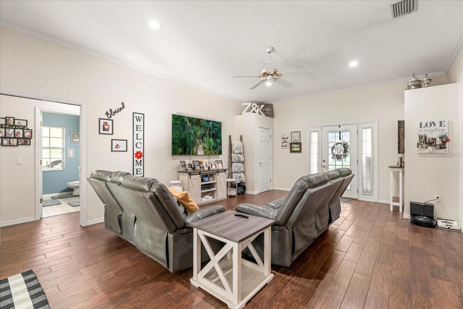 Under contract-accepting backup offers. Experience the best of Central Florida living in this stunning home located in the sought-after Spring Pines neighborhood of Haines City. Offering over 2,000 square feet of thoughtfully designed living space, this home perfectly blends comfort and style. The open floor plan seamlessly connects the living area to the kitchen, which features sleek new stainless-steel appliances and a charming dining nook. Designed with a split-bedroom layout, this home provides three spacious bedrooms and two bathrooms, ensuring privacy and relaxation. The primary suite offers a peaceful retreat with a walk-in closet that conveniently connects to the laundry room. A versatile bonus room adds flexibility, making it ideal for a dining area, playroom, or home office to suit your needs. Additionally, the garage features an air-conditioned bonus space—perfect as a workshop, hobby room, or extra storage. Situated on a beautiful half-acre lot, the backyard is fully fenced and ready for outdoor entertaining, with plenty of space to add a pool or create your own private retreat. Nestled in a tranquil yet convenient location, this home offers both serenity and easy access to all that Haines City has to offer. With modern updates, an adaptable layout, and generous outdoor space, this property is a true gem. Schedule a showing today and see for yourself!