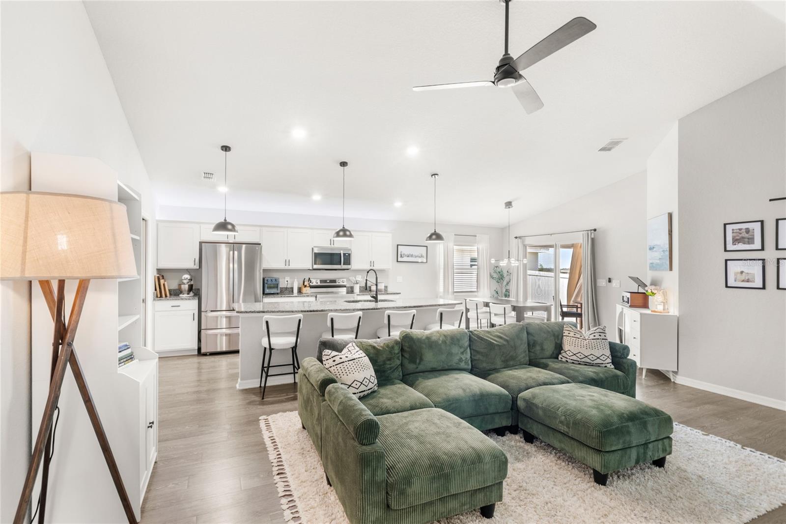 Welcome to this beautifully maintained 3-bedroom, 2-bath home in the heart of Haines City, Florida! Built in 2021, this modern residence offers an open-concept layout with a stunning kitchen featuring an island perfect for entertaining. Upgraded flooring flows throughout the home, adding a touch of elegance and comfort. Step outside to enjoy the spacious screened-in lanai, ideal for relaxing Florida evenings, and a custom backyard putting green—perfect for golf enthusiasts or just putting around with friends. This home combines style, comfort, and outdoor living in one fantastic package!
