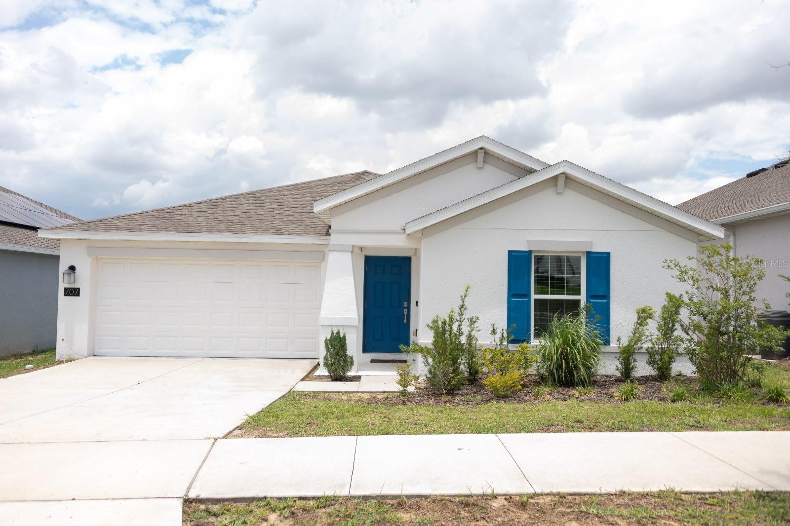 Welcome to 707 Staffora Street, a beautifully maintained single-family home nestled in the desirable Magnolia Park community of Haines City, Florida. Built in 2022, this modern residence offers 3 bedrooms and 2 bathrooms across approximately 1,555 square feet of living space, situated on a 5,510 square foot lot. The home features wood-finish plank tile flooring throughout the main living areas and kitchen, complemented by brand-new appliances, including a washer and dryer. Energy efficiency is enhanced with solar panels installed on the roof, contributing to lower electricity costs. Located adjacent to the community clubhouse, pool, and play area. Convenient access to shopping, dining, and major theme parks like Disney, Universal, and Legoland