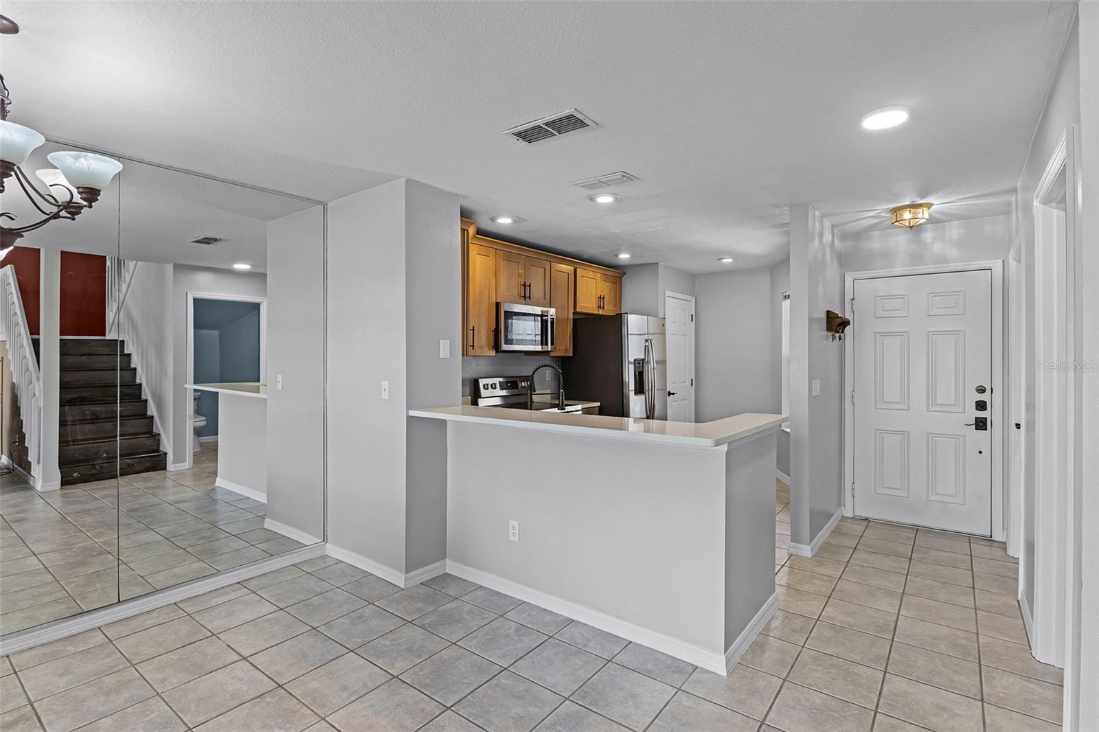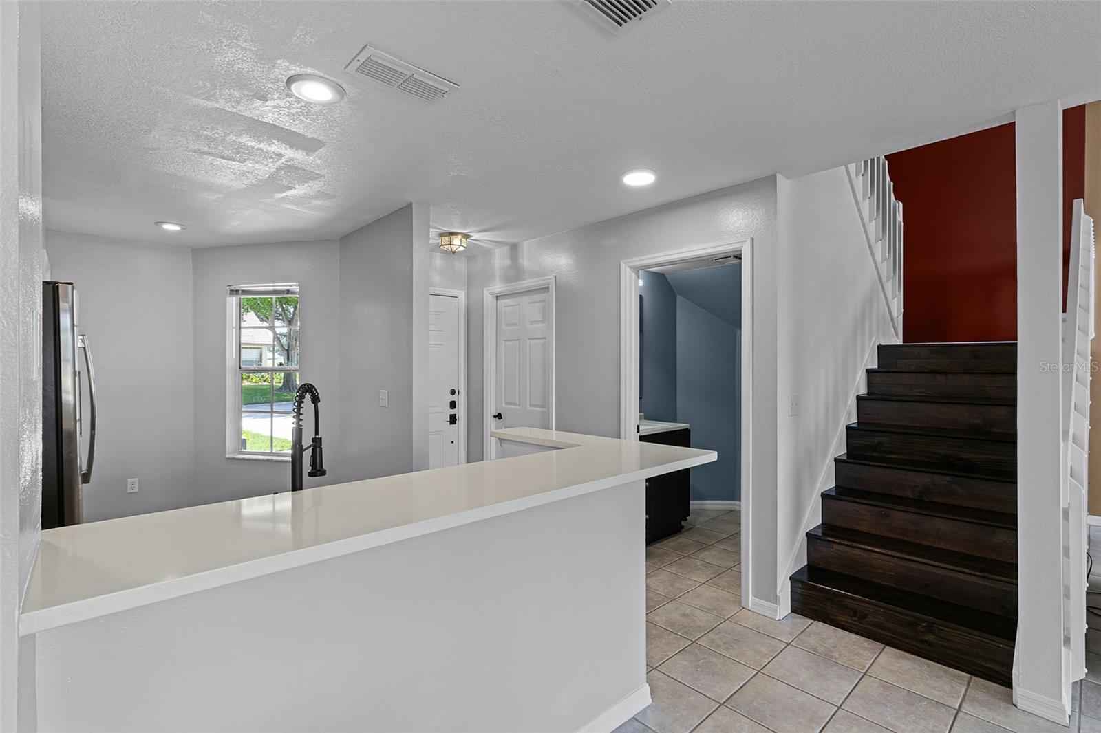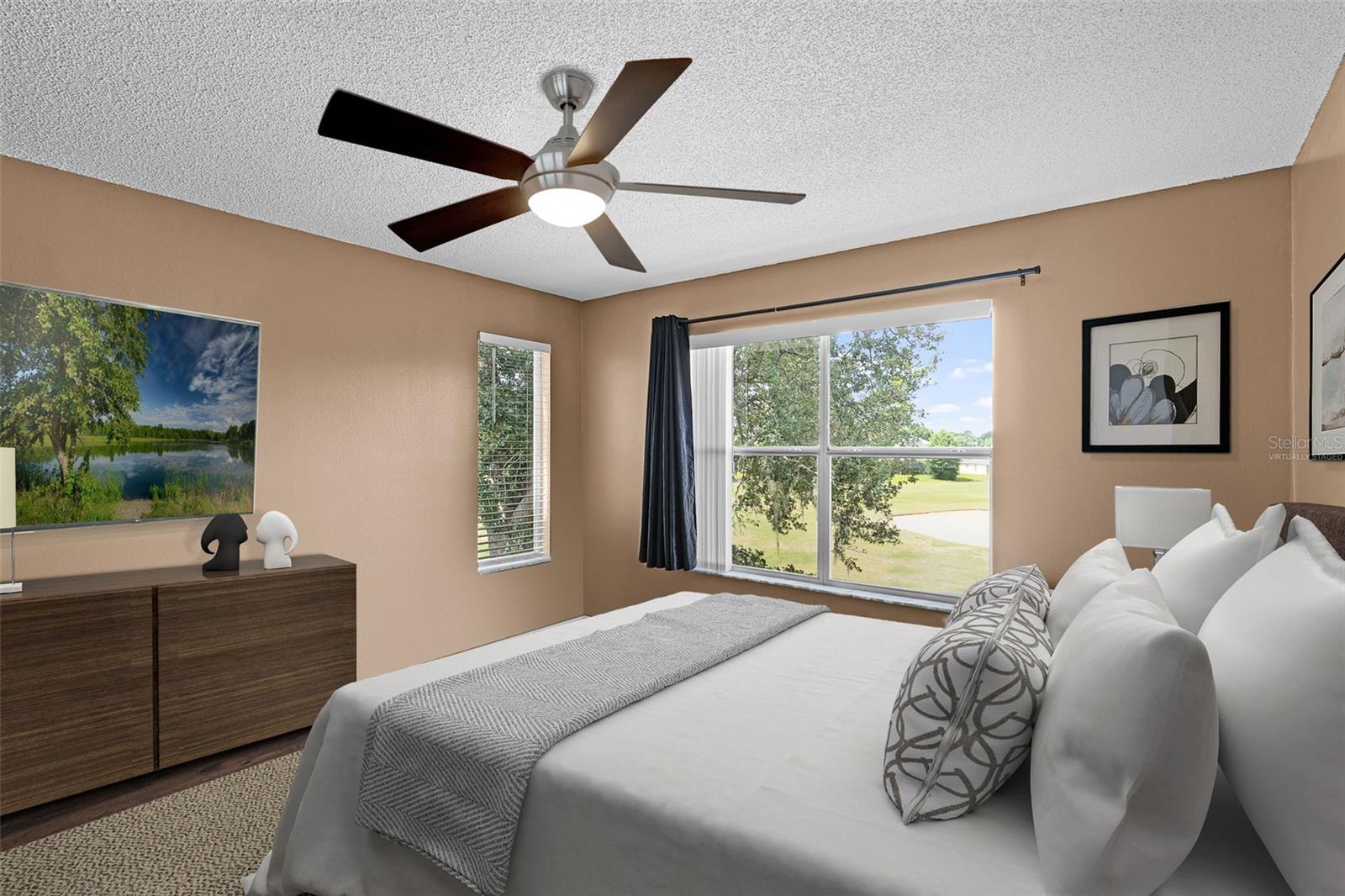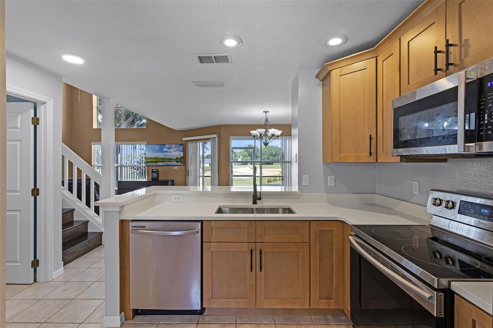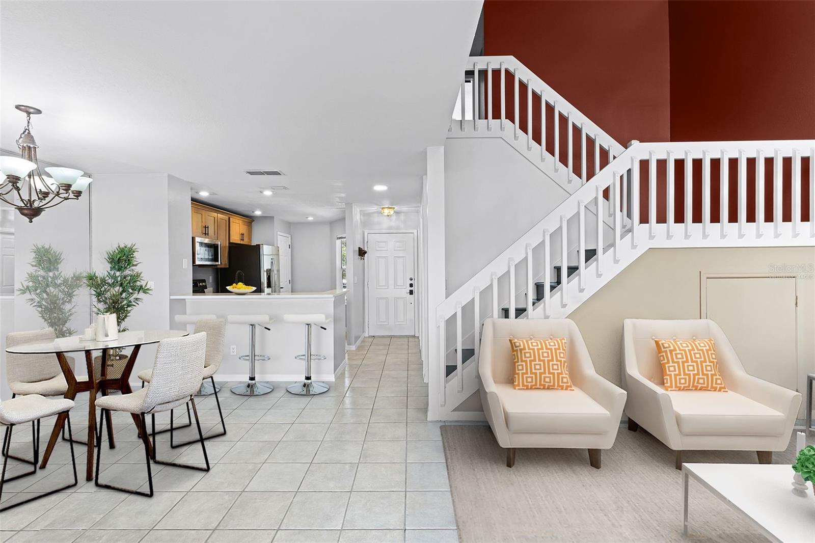 Welcome home to your 3-bedroom 2.5-bathroom TOWNHOME in the MAN-GATED GOLF COURSE COMMUNITY of Southern Dunes Golf and Country Club! Step into the SPACIOUS great room and take in the PANORAMIC view of the SCREENED in LANAI overlooking the GOLF COURSE with a HIGH CEILING, dining area, and GOURMET kitchen that features QUARTZ counter tops, stainless steel appliances, plenty of cabinet space with CROWN MOLDING and a breakfast bar. Upstairs, the Primary Suite includes a luxurious bathroom with QUARTZ countertop, tile shower and walk-in closet. This property also features BRAND-NEW INTERIOR PAINTING (2025), BRAND-NEW STAINLESS-STEEL DISHWASHER (2025), BRAND-NEW QUARTZ COUNTERTOPS IN KITCHEN & PRIMARY BATHROOM (2025), BRAND-NEW VANITIES IN ALL 3 BATHROOMS WITH LIGHTING (2025), BRAND-NEW CABINETRY WITH CROWN MOLDING IN KITCHEN (2025), BRAND-NEW TILED SHOWER IN PRIMARY BATHROOM (2025) and NEWER A/C UNIT (2024). There is also a Newer Generator (2024) available for an additional cost to the Buyer. Southern Dunes Golf & Country Club features a man-guard gated entrance that brings resort-style living to Haines City with amazing amenities such as heated lap pool and resort-style pool, a true golfing experience that offers 18 holes of remarkable golf, playground, lighted tennis courts, lighted basketball courts, library, card room, and on-site restaurant that features LIVE MUSIC on some weekends. This community is located just off 27 and a few minutes' drive to Posner Park Shopping Mall, Interstate I-4, with convenient access to tons of local shopping, dining establishments and schools.