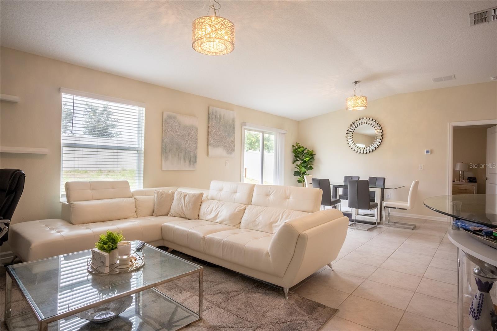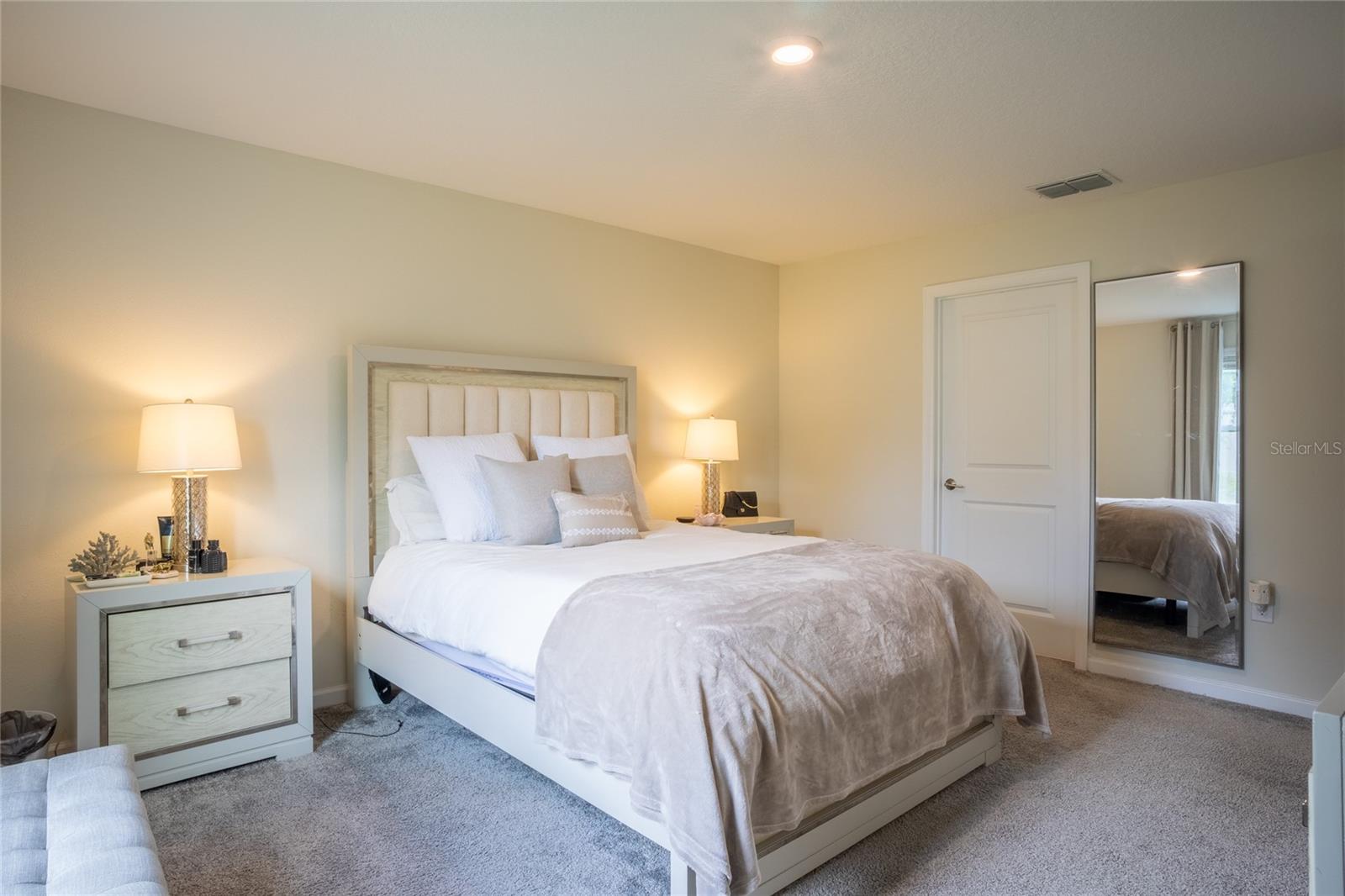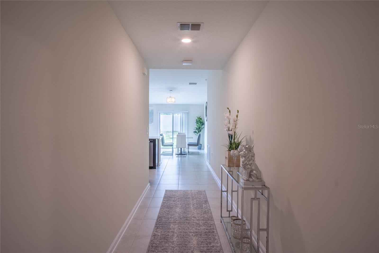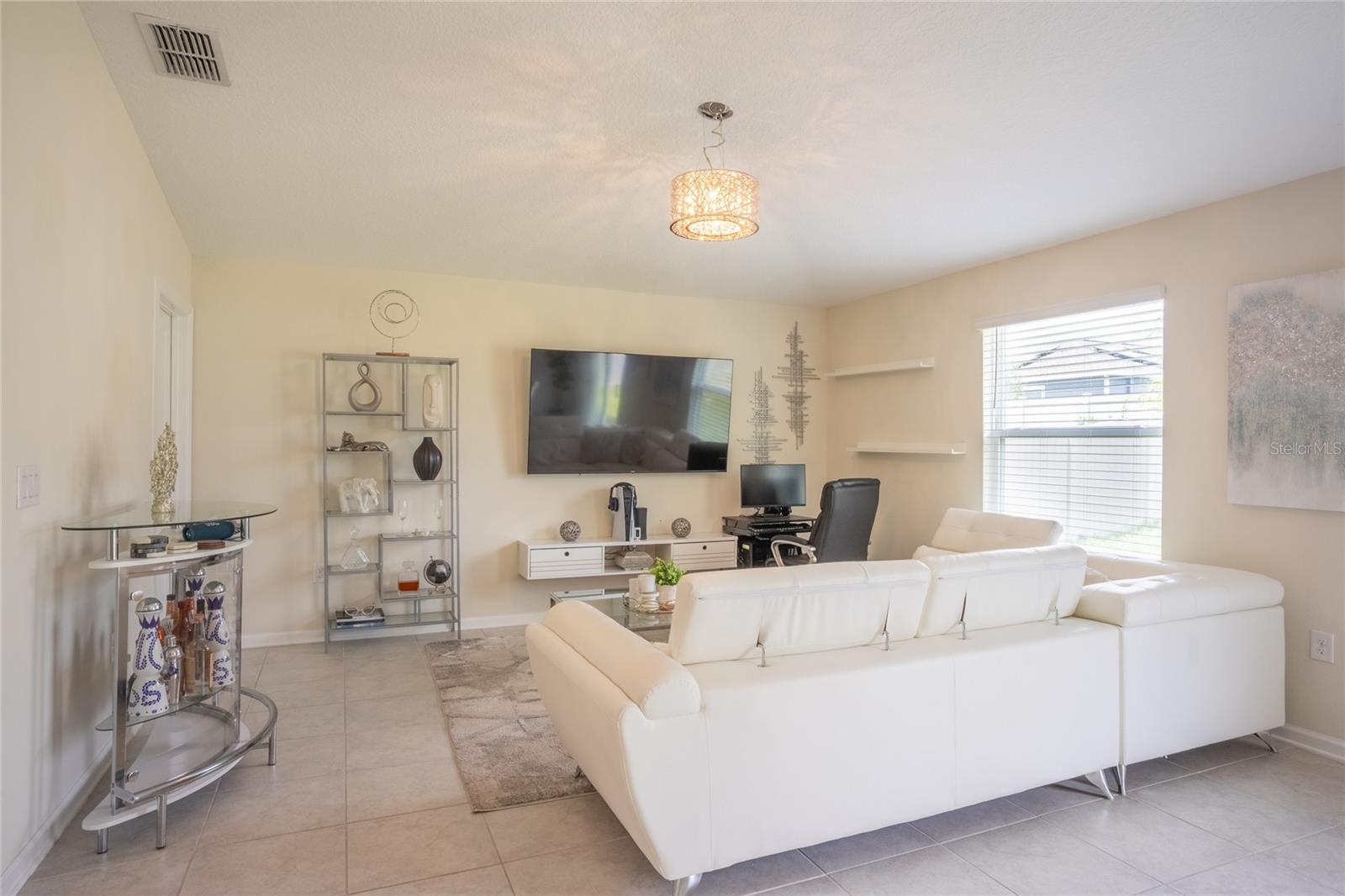 This beautifully maintained, nearly new home offers a perfect blend of modern comfort and energy efficiency, featuring an open-concept kitchen with 42-inch cabinets, quartz countertops, a spacious pantry, and stainless steel appliances, all overlooking the family room and coffee area ideal for everyday living and entertaining. The generous owner’s suite includes a large walk-in closet and dual sinks for added convenience, while the 2-car garage provides ample storage. Enjoy smart home features like a Honeywell thermostat, Schlage smart lock, Ring doorbell, and built-in pest control system, along with a full vinyl-fenced backyard, water filtration system, and leased solar panels designed to help lower your electric bill. Located in The Estates at Lake Hammock, a peaceful waterfront community with walking trails, a dog park, and a private dock, this home offers a rural lifestyle with convenient access to I-4, Disney, Universal, Legoland, Bok Tower Gardens, Posner Park, hospitals, and more perfectly situated between Orlando and Tampa.