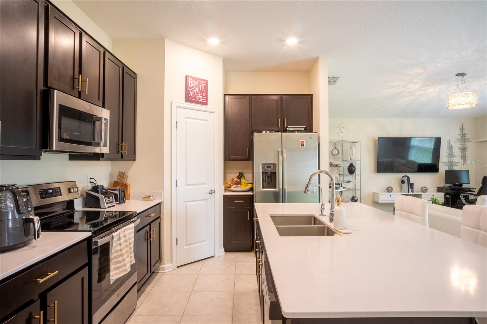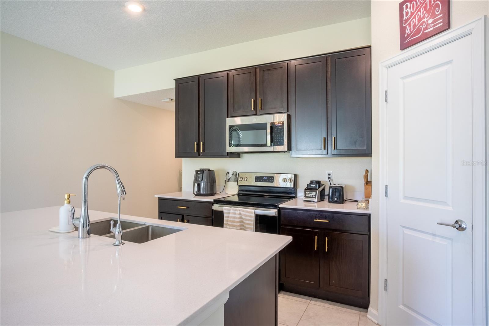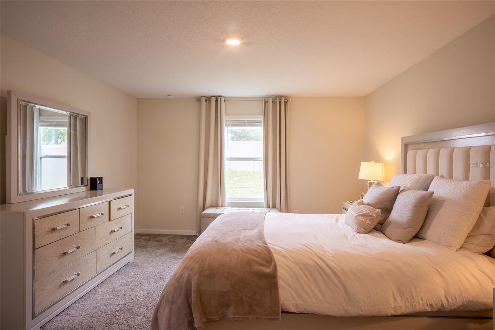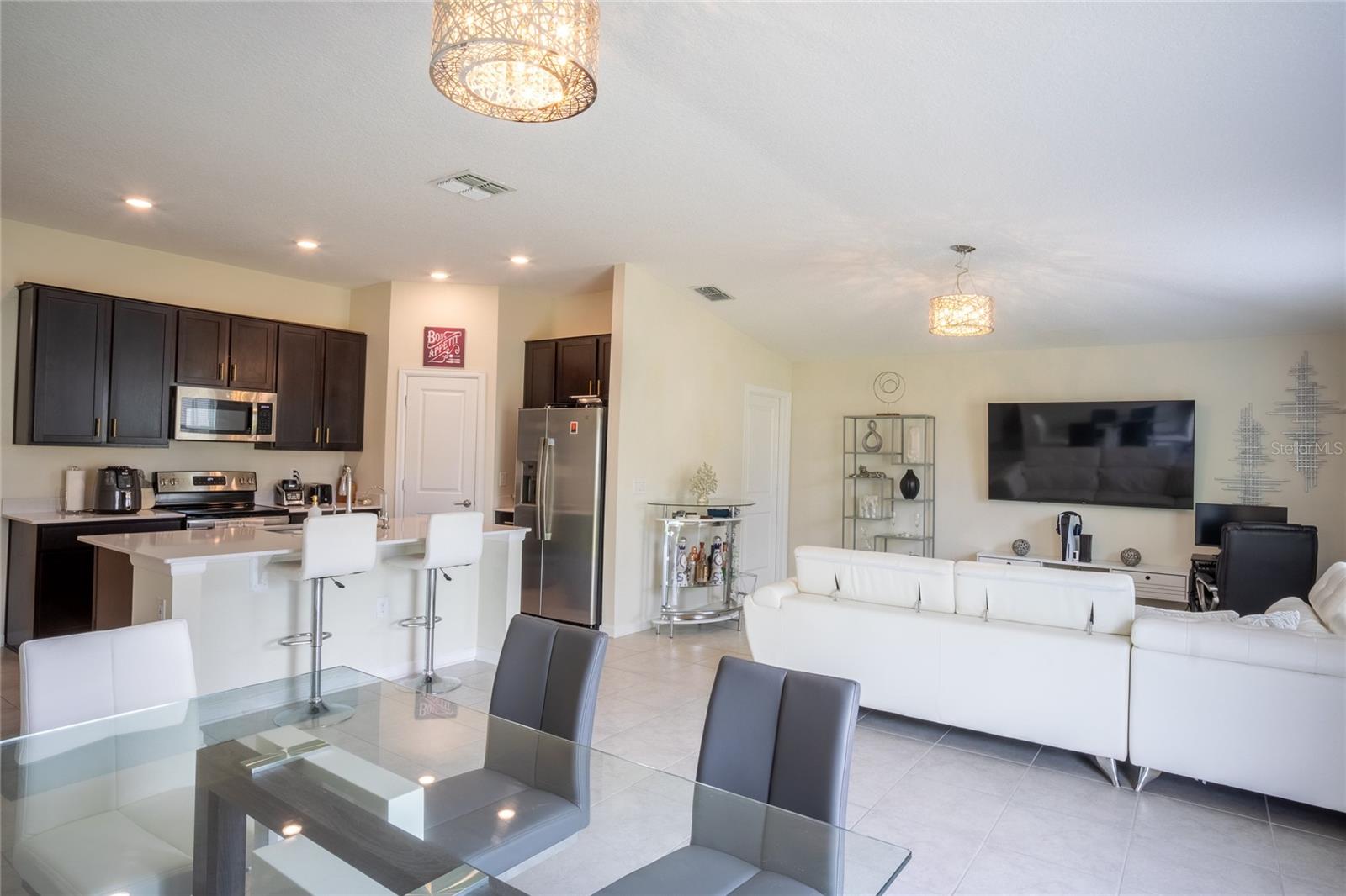 This beautifully maintained, nearly new home offers a perfect blend of modern comfort and energy efficiency, featuring an open-concept kitchen with 42-inch cabinets, quartz countertops, a spacious pantry, and stainless steel appliances, all overlooking the family room and coffee area ideal for everyday living and entertaining. The generous owner’s suite includes a large walk-in closet and dual sinks for added convenience, while the 2-car garage provides ample storage. Enjoy smart home features like a Honeywell thermostat, Schlage smart lock, Ring doorbell, and built-in pest control system, along with a full vinyl-fenced backyard, water filtration system, and leased solar panels designed to help lower your electric bill. Located in The Estates at Lake Hammock, a peaceful waterfront community with walking trails, a dog park, and a private dock, this home offers a rural lifestyle with convenient access to I-4, Disney, Universal, Legoland, Bok Tower Gardens, Posner Park, hospitals, and more perfectly situated between Orlando and Tampa.