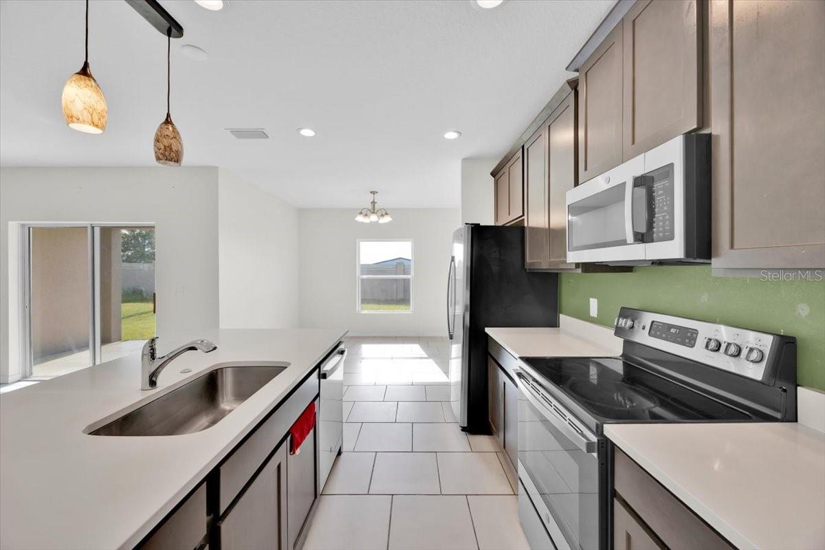 Welcome to 3653 Yarian Dr — a stylish 4-bedroom, 2-bath home built in 2023 and located in the desirable Hammock Reserve community of Haines City. This move-in-ready residence offers a spacious open-concept layout with high ceilings, natural light, and a modern kitchen featuring stainless steel appliances, solid surface counters, and a large center island. The private primary suite includes a walk-in closet and a spa-like en-suite with dual vanities and an oversized shower. Additional highlights include ceramic tile in main areas, carpet in bedrooms, a 2-car garage, and a covered rear lanai. Hammock Reserve offers resort-style amenities including a community pool, playground, and walking paths. Conveniently located near shopping, dining, medical facilities, and just minutes from Disney and LEGOLAND.