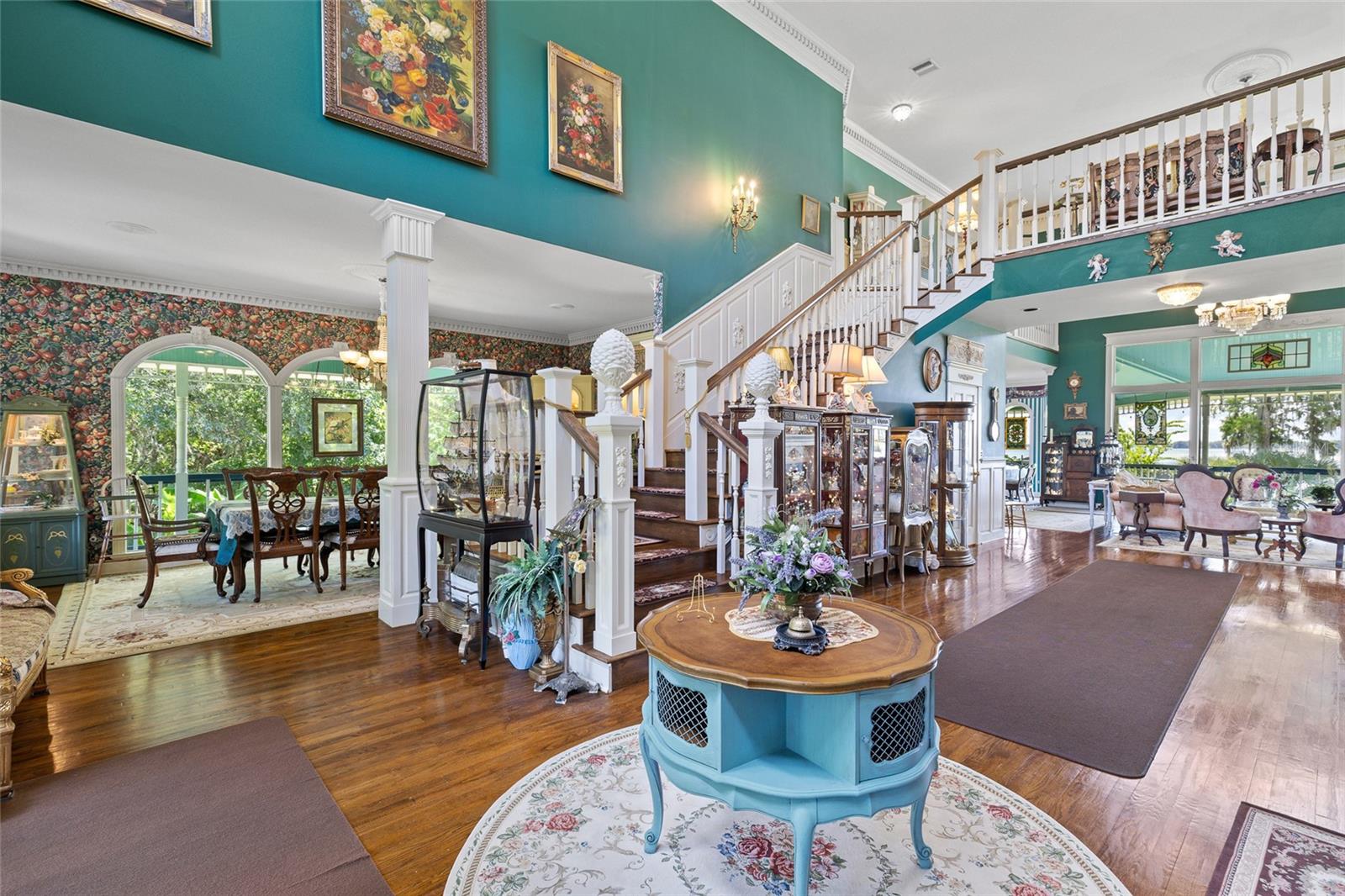 Huge Price Reduction !! Stunning 3-Story Victorian Lakefront Estate on 6.24 Private Acres! This extraordinary custom-built Victorian home on the shores of Lake Marion is a rare gem offering over 8,000 sq. ft. of luxurious living space. Nestled on a secluded 6.24-acre lot, this one-of-a-kind property provides the perfect blend of elegance, privacy, and lakefront serenity. From the moment you enter, you're greeted by a grand two-story foyer featuring twin sweeping staircases—a dramatic entrance that sets the. tone for the entire home. Designed with meticulous attention to detail, this 5-bedroom, 6.5-bath residence features extensive crown and dentil. moulding, high tray ceilings, and custom-built cabinetry throughout. Each of the five spacious bedrooms includes its own private en-suite bathroom, ensuring comfort and privacy for family and guests. The main-floor master suite is a true retreat, complete with a fireplace, luxurious soaking tub, dual vanities, and a spacious walk-in shower. The main level also boasts a formal dining room with butler’s pantry, a bright eat-in kitchen that opens to the great room, and a cozy fireplace framed by elegant built-ins—ideal for entertaining or enjoying quiet evenings at home. Enjoy panoramic lake views from the glass-enclosed office, or relax on the wrap-around porch while watching wildlife and taking in the peaceful scenery. The fully finished lower level includes a soundproof music room, and multiple additional spaces perfect for a home theater, office, or extra bedrooms. Additional features: Extended brick-paved driveway with ample parking Expansive backyard ideal for outdoor activities Incredible privacy and tranquility. New AC in 2021, New Roof in 2020, Boat Dock in 2021, 7 Zone New Irrigation system in 2023, 3 zone landscape lighting installed in 2023, can be remotely controlled, new propane gas generator, Smart home control system and 2 outdoor 220 v power. outlets for RV.s. This lakefront estate is truly one of a kind—schedule your private tour today and experience the unmatched charm and elegance of this spectacular home! - parcel 28-27-30-000000-042090 (1.15 acres), 28-27-30-000000-042100 (1.62 Acres), 28-27-30-000000-042140 (2.37 acres), 28-27-30-30-000000-042130 (1.10 Acres)