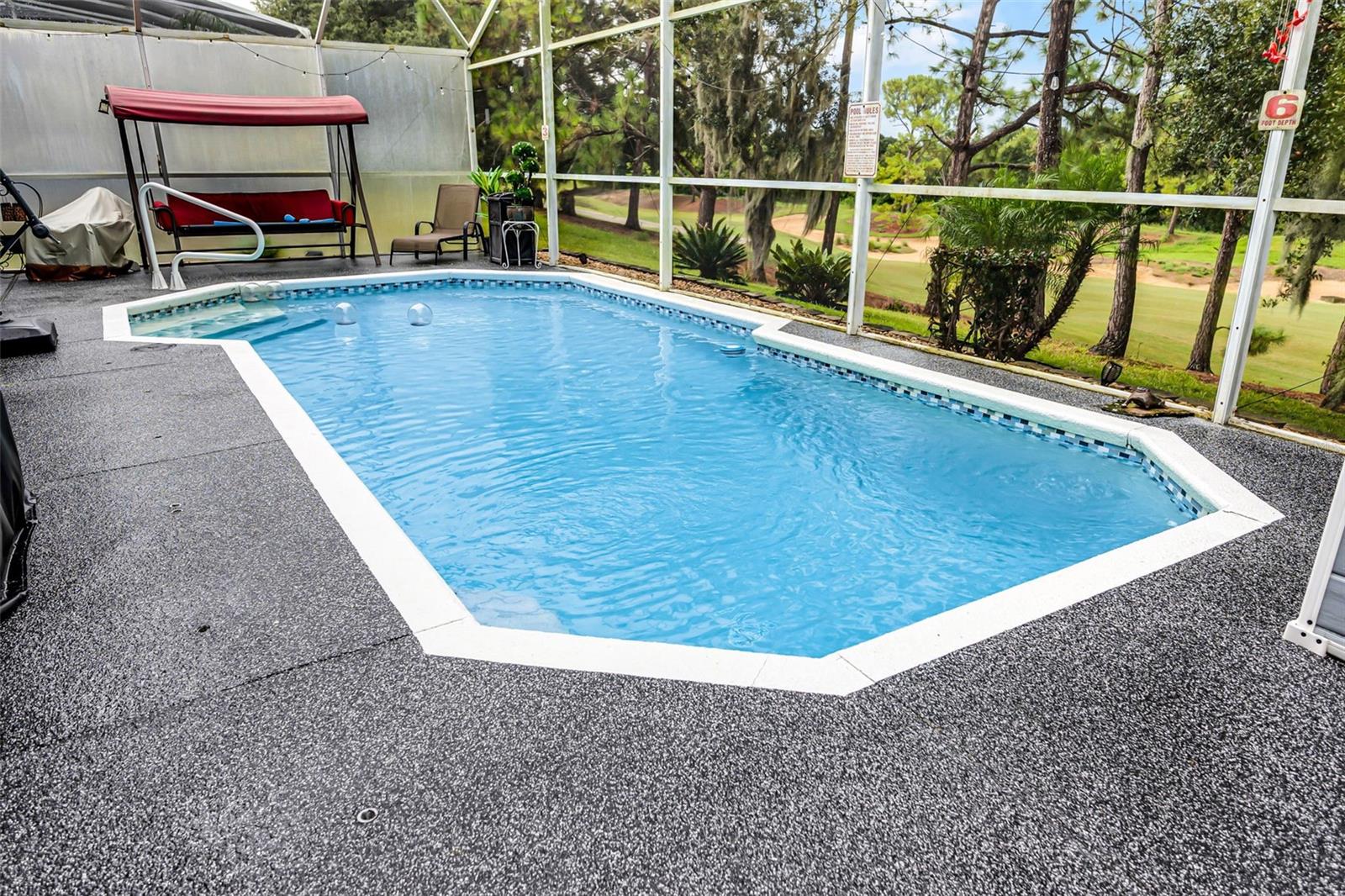 Welcome to Your DREAM Retreat of Paradise!! Step into timeless sophistication with this fully UPGRADED POOL home, perfectly positioned to capture sweeping Golf Course views of the Fairway! This modern Luxurious pool home embodies Elegance, Exclusivity, and the ultimate Resort-Style living with breathtaking Golf Course views, all set within an Exclusive Gated community renowned for its World-Class Amenities. NEW AC January 2026, NEW ROOF 2022 (with Gutters), NEW Water Heater 2024, NEW Hurricane-Proof Windows, NEW Tile Flooring, Pool Resurfaced, and Solar Panels Fully Paid Off providing Free Electricity!! As you pull into the extended driveway, the charming Curb Appeal immediately grabs your attention from the gorgeous palm trees and flower bed to the Fenced Front Deck it compliments making it very inviting for guests. As you enter this 4-Bedroom and 3 Full Bathroom home, you will notice the care and detail put into the upgrades including the new gorgeous Tiled flooring and Remodeled Kitchen. Explore your inner chef and host/entertain your guests in the Upgraded Kitchen with Luxurious finishes boasting plenty of cabinetry for storage space, Granite countertops with plenty of prep space, Tiled Backsplash, and Stainless Steel appliances for your daily essentials including a Double-Oven. Enjoy family time or read in therapy in this cozy Open Concept family room equipped with a cute fireplace, and boasting mesmerizing Views of the Screened Pool and Golf Course through the glass sliding doors. The Master bedroom also has its own Private Access to the private pool area through separate sliding glass doors. It also includes a Walk-In Closet, and an En-Suite Master Bathroom equipped with upgraded Granite countertops. Enjoy 3 additional guest bedrooms that share 2 full bathrooms that have also been Remodeled! As you make your way to the garage, you'll notice a Bonus Office Space with a ceiling fan leading to the garage that has been well maintained with Epoxy coating on the floor for added convenience. Step out back and catch some shade under the Lanai while your family enjoys the resurfaced private pool as you sip your coffee/tea and enjoy the therapeutic views of the golf course and wildlife. Whether you are looking for a Primary Residence, a Snowbird looking for a Winter home, or an Investor (Short Term Rentals Allowed), this will be sure to check ALL of your boxes!! You'll never have a dull moment to create new priceless memories here as Southern Dunes offers 24-hour Security in a GATED Community, a Top-Rated Championship Golf Course, Clubhouse, Restaurant & Bar, state-of-the-art Fitness Center, Tennis courts, Community Pools, Children's Playground, and a newly added flood-lit Driving Range. A PERFECT LOCATION between both Orlando or Tampa attractions, Airports, and close to shopping and dining, medical facilities, I-4, Walmart, Winn Dixie, Posner Park Village, 35 minutes from Disney World, and a short drive to either the Gulf or Atlantic beaches. Upgrade not just your Living, but also your Lifestyle with all that the exclusive Southern Dunes community has to offer! Schedule your private tour Today!!