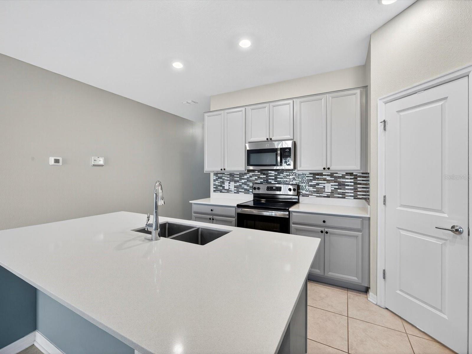 One or more photo(s) has been virtually staged. Welcome to 1450 Lassen St in Orchid Terrace, a BEAUTIFULLY MAINTAINED 3 bedrooms, 2 bathroom home offering modern design with thoughtful upgrades and SOLAR PANELS FULLY PAID OFF! Step inside to find an open floor plan that seamlessly connects the kitchen, dining, and living areas—perfect for both everyday living and entertaining. The kitchen features elegant STONE COUNTERTOPS and a stylish BACKSPLASH, while the living room and dining areas boast UPGRADED LIGHT FIXTURES, creating a bright and inviting space. Both bathrooms also showcase stone counters, with the primary ensuite featuring DUAL SINKS and a walk-in closet for convenience and comfort. THROUGHOUT the home, durable CERAMIC TILE flooring adds a sleek, cohesive look. Additional highlights include an OWNED SECURITY SYSTEM for peace of mind and tasteful finishing touches that make this home truly move-in ready. With only 4 years of age, this home FEELS LIKE NEW and blends modern style, function, and security in one complete package. Less than 2 miles from U.S. 27 and around 9 miles from I-4, making commutes toward Orlando or Lakeland is a breeze. Local shopping, dining, and services along US-27 are easily accessible. Don’t miss the opportunity to call this home yours and schedule your private showing today!