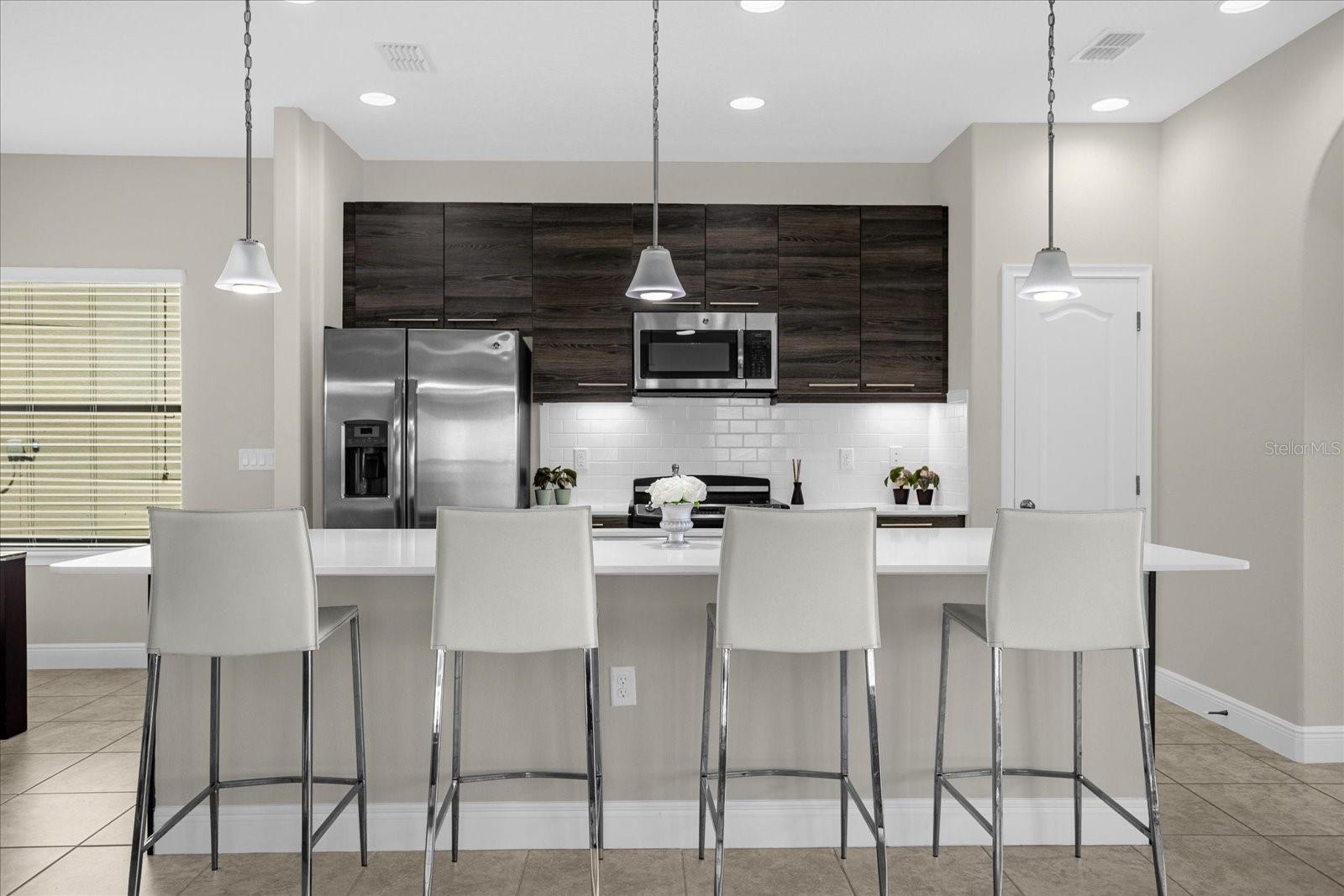 **This house comes with a REDUCED RATE through the seller's preferred lender. This is a lender-paid rate buydown that reduces the buyer's interest rate and monthly payment.**. BEAUTIFUL furnished, turnkey vacation home located in the heart of Haines City, just a short drive away from all major attractions including Disney. This 4 bedroom 4.5 bathroom waterfront pool home offers the perfect investment opportunity to add to your short term rental portfolio, your second home, or live like you’re on vacation everyday and make this your primary residence. Located right off the front door is the first guest bedroom that could be used as a first-floor primary bedroom with an ensuite. At the back of the home is the open concept space with tray ceilings, an abundance of natural light and serene views of the water. The gorgeous kitchen features quartz countertops, modern cabinetry, and stainless-steel appliances. The convenient half bathroom just off the kitchen provides direct access to and from the pool deck along with the triple sliding glass doors in the living room. Upstairs you’ll find the 3 remaining bedrooms that all have ensuites with the laundry room in the middle for convenience. The covered patio is the perfect lounging space and entertainment area out back overlooking the beautiful pool that is fully screened in with no rear neighbors! Recent upgrades include 2025 3 new TVs, 2025 dishwasher, 2025 new pool filter housing and pool filter, 2025 added lights in the anterior of the home and the pool area, 2023 exterior painting, 2023 interior painting, 2023 garage floor painting, 2023 new energy efficient pool pump, 2023 pool screens replaced, 2022 LED lighting throughout the home, 2022 new A/C compressor, 2022 ceiling fans, 2022 washer and dryer, and improved landscaping. Balmoral offers amazing amenities such as a fitness center, game room, community pool, water park, splash pad, outdoor Bar & Grill, football field, soccer fields, and dock overlooking the pond. Located a little over 30 minutes from Disney theme parks and 20 minutes from Legoland and Peppa Pig Theme Park and with easy access to Central Florida's most popular attractions, this home is a MUST SEE! Schedule your private showing today!