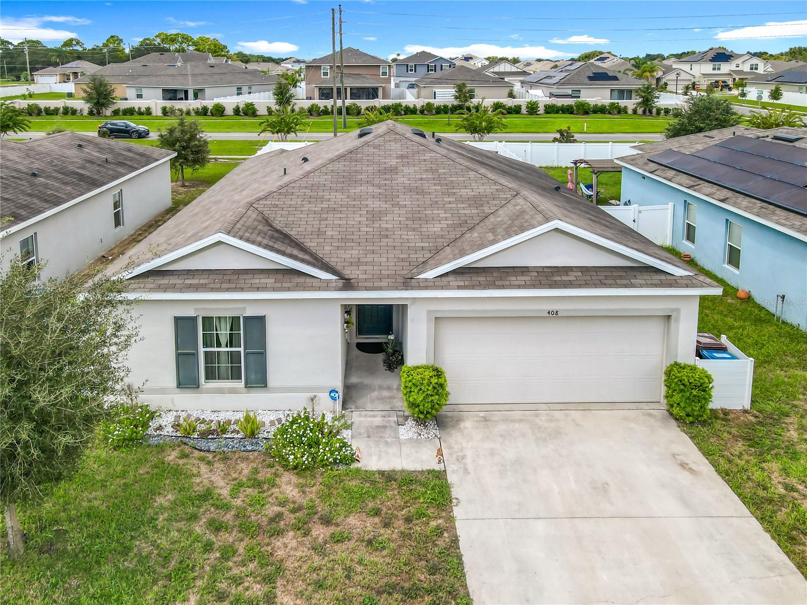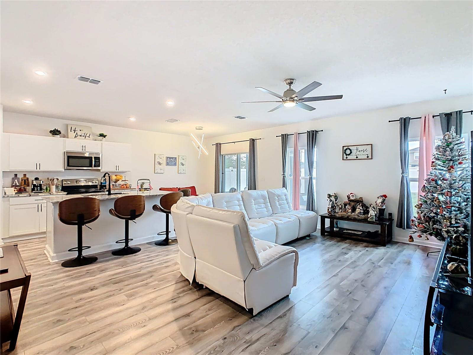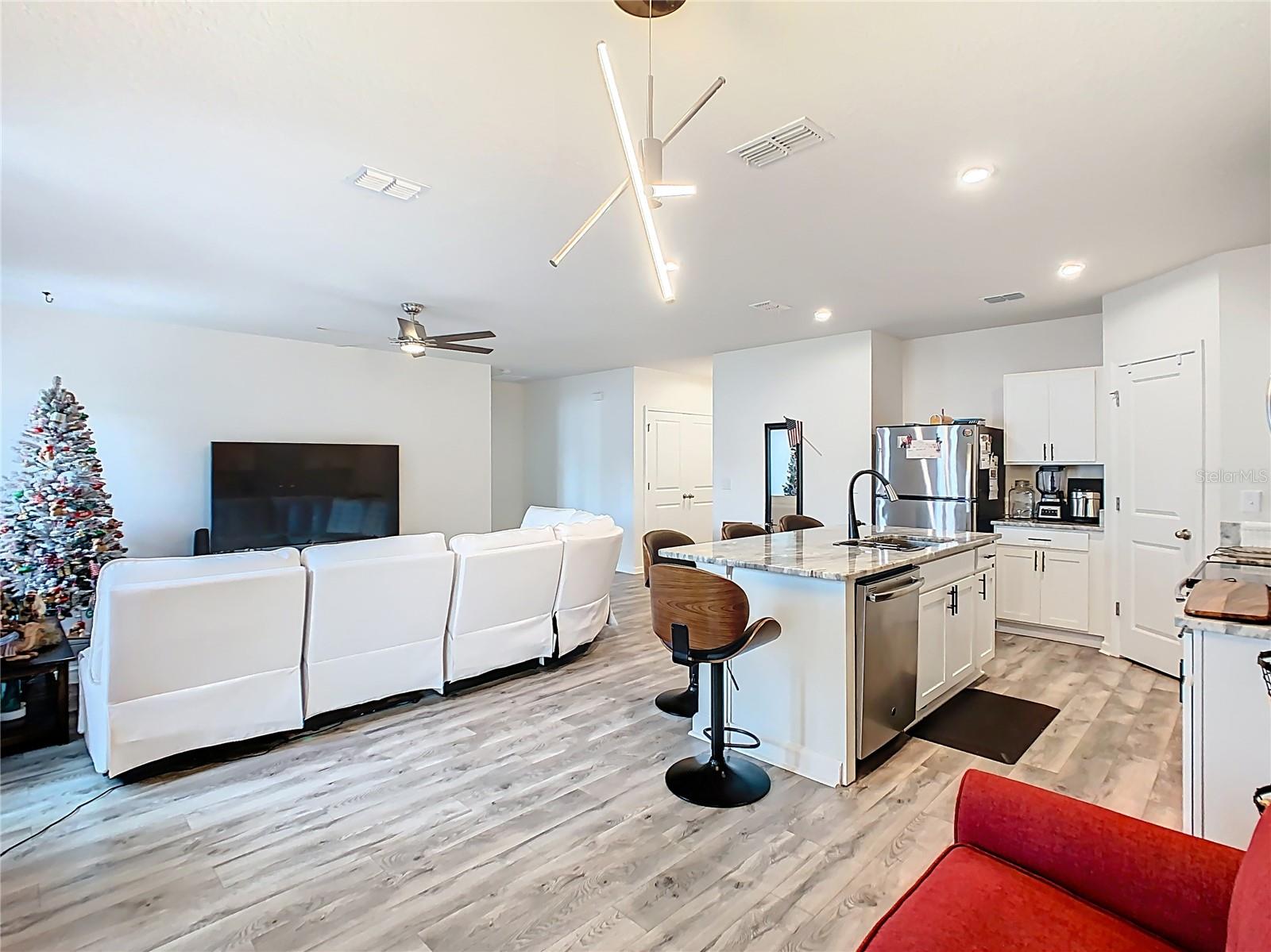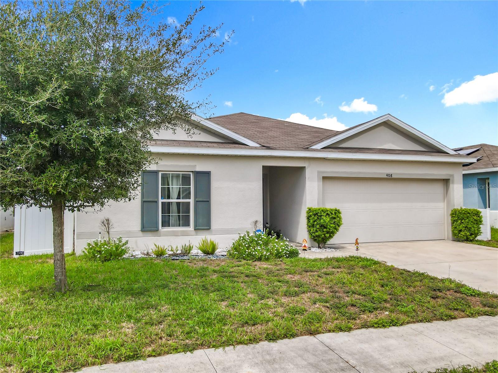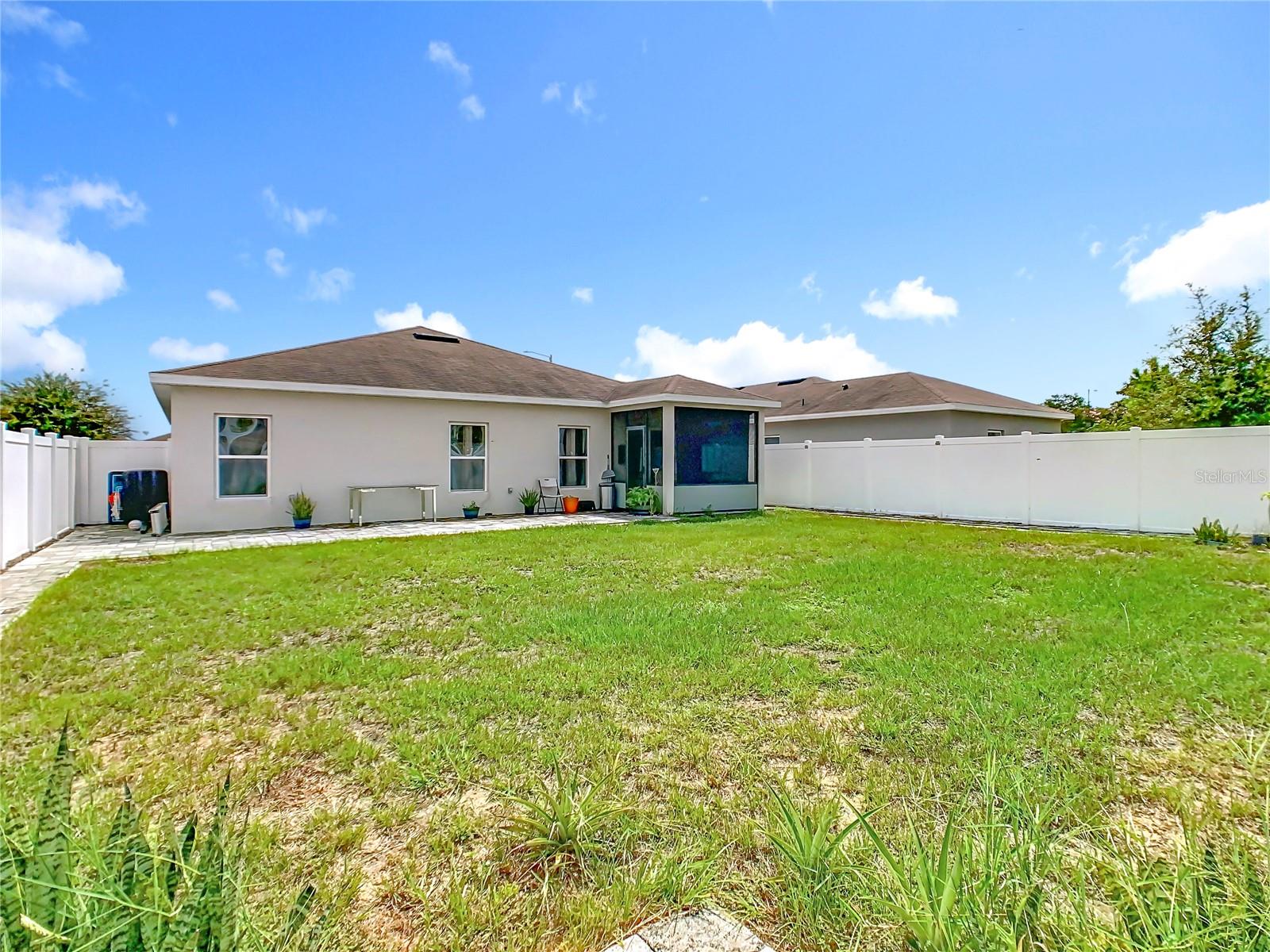 Built in 2019, this well-kept 3-bedroom, 2-bath home offers 1,431 sq ft of comfortable, modern living. The kitchen features Shaker cabinetry, a center island, granite countertops, and stainless steel appliances, opening to a spacious great room ideal for everyday living and entertaining. A true split floor plan places two secondary bedrooms and a full guest bath off the foyer, with a convenient laundry closet centrally located between bedroom areas. The primary suite is generous in size and includes a large bathroom and walk-in closet. Recent finishes include ceramic tile in the baths and newer gray wood-look laminate throughout the rest of the home. Additional upgrades include a whole-house water softener and a roof-covered, enclosed lanai. Out back, the vinyl-fenced yard is neatly landscaped with storage areas and expansive paver spaces perfect for relaxing or hosting guests. Highland Place is an intimate community of just 42 homesites, conveniently located near restaurants, shopping, I-4, and Central Florida’s top attractions. Appliances convey (microwave, dishwasher, range, refrigerator, washer, and dryer). Schedule your showing today.