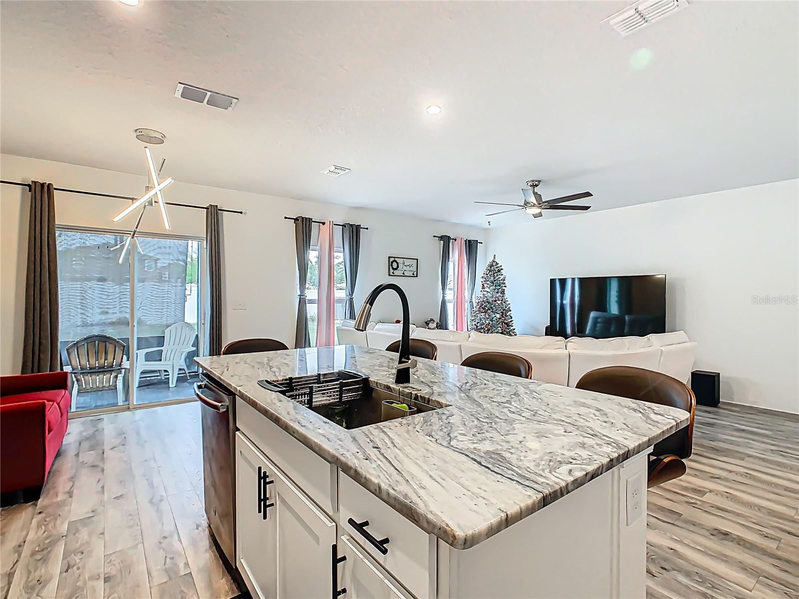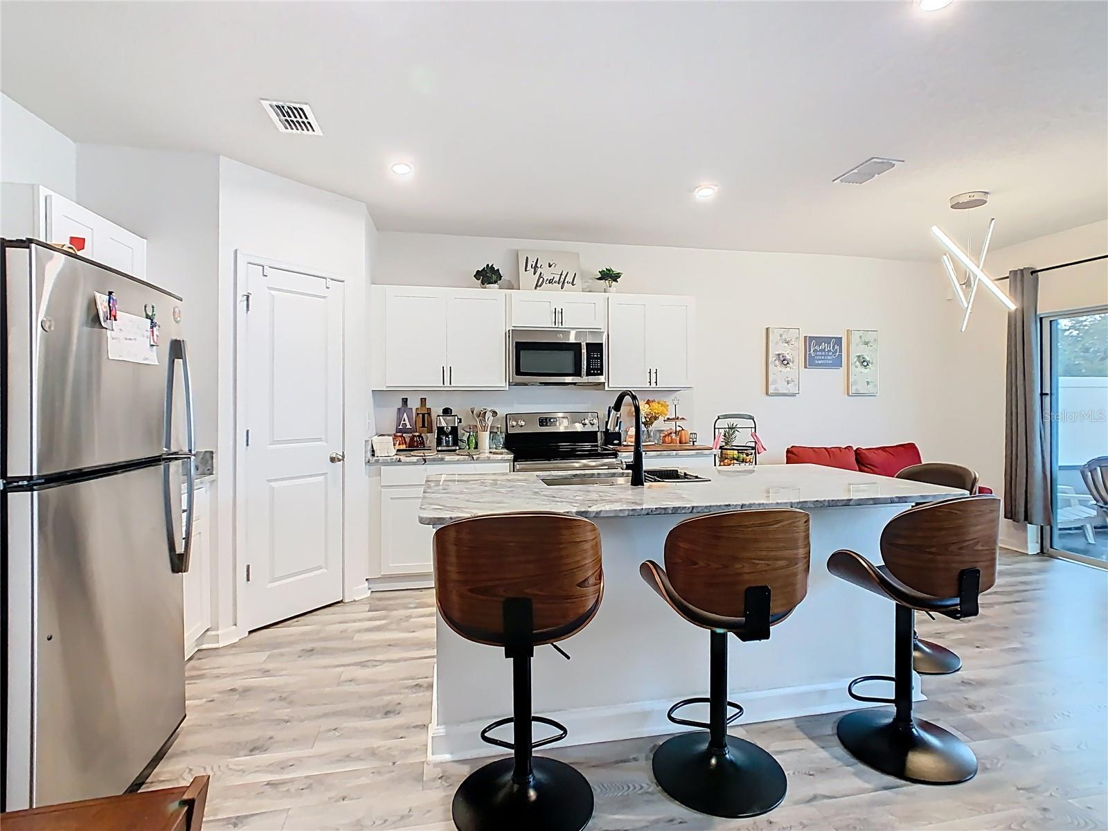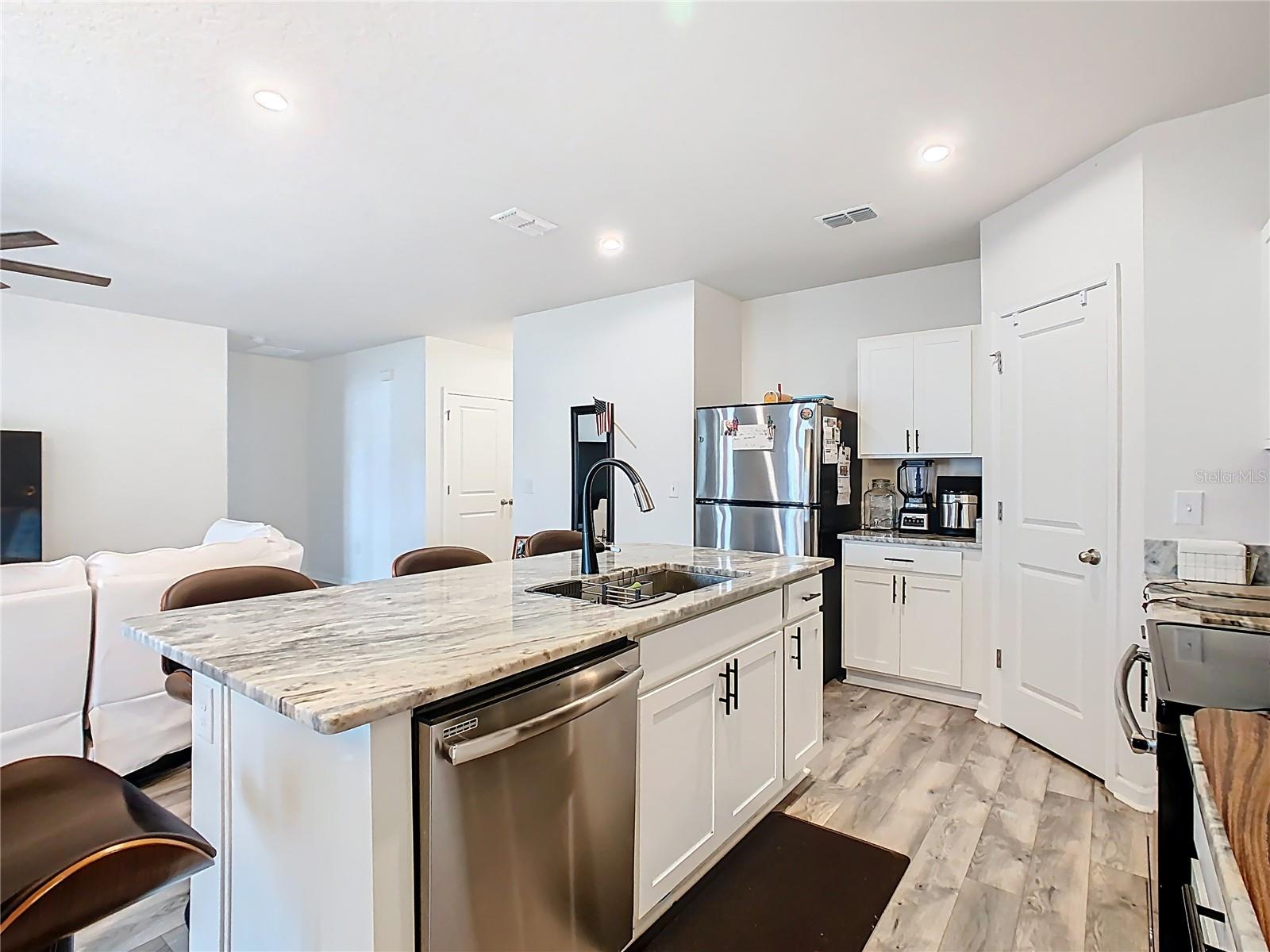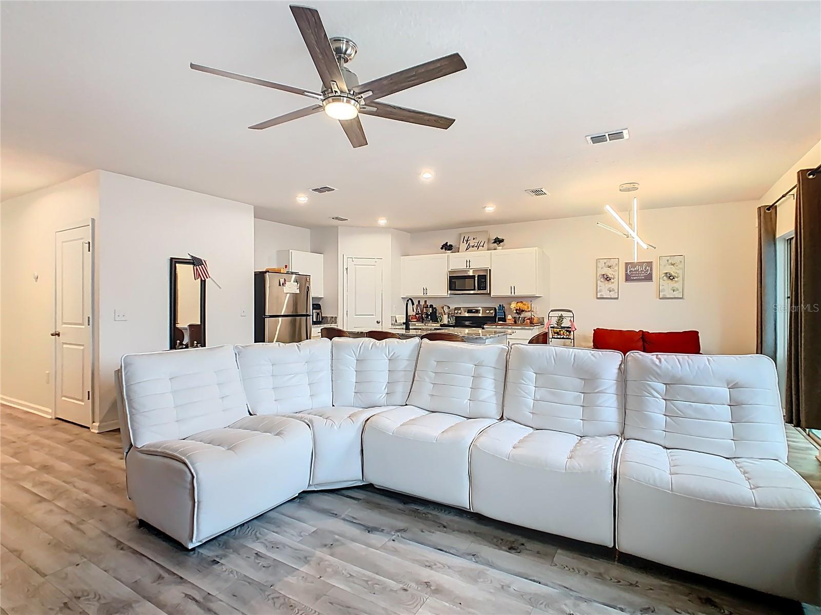Built in 2019, this well-kept 3-bedroom, 2-bath home offers 1,431 sq ft of comfortable, modern living. The kitchen features Shaker cabinetry, a center island, granite countertops, and stainless steel appliances, opening to a spacious great room ideal for everyday living and entertaining. A true split floor plan places two secondary bedrooms and a full guest bath off the foyer, with a convenient laundry closet centrally located between bedroom areas. The primary suite is generous in size and includes a large bathroom and walk-in closet. Recent finishes include ceramic tile in the baths and newer gray wood-look laminate throughout the rest of the home. Additional upgrades include a whole-house water softener and a roof-covered, enclosed lanai. Out back, the vinyl-fenced yard is neatly landscaped with storage areas and expansive paver spaces perfect for relaxing or hosting guests. Highland Place is an intimate community of just 42 homesites, conveniently located near restaurants, shopping, I-4, and Central Florida’s top attractions. Appliances convey (microwave, dishwasher, range, refrigerator, washer, and dryer). Schedule your showing today.