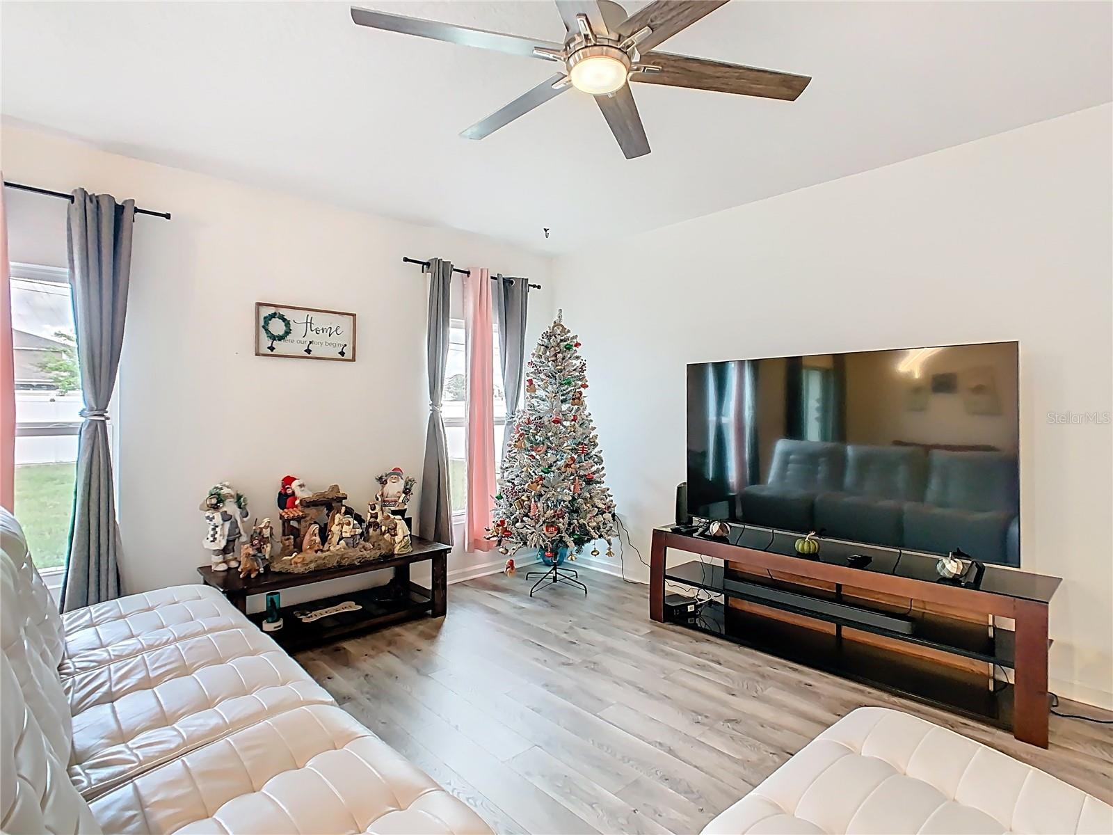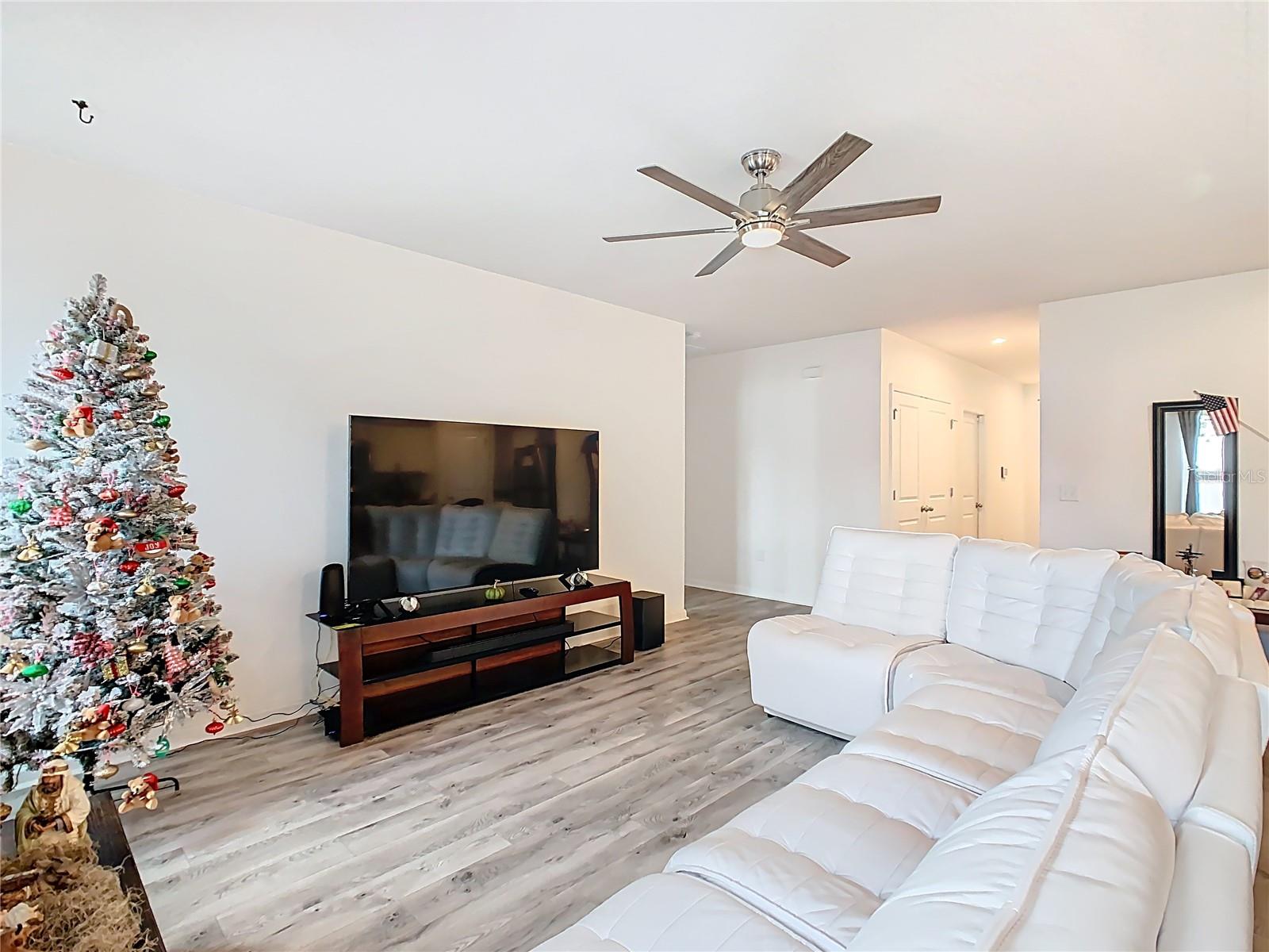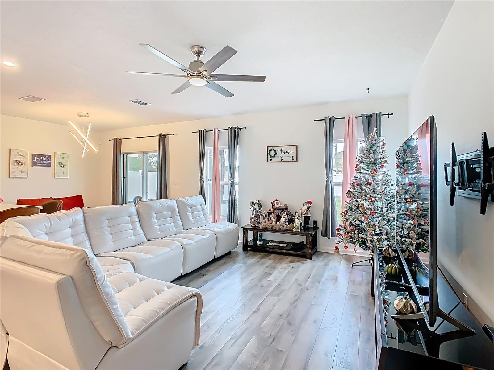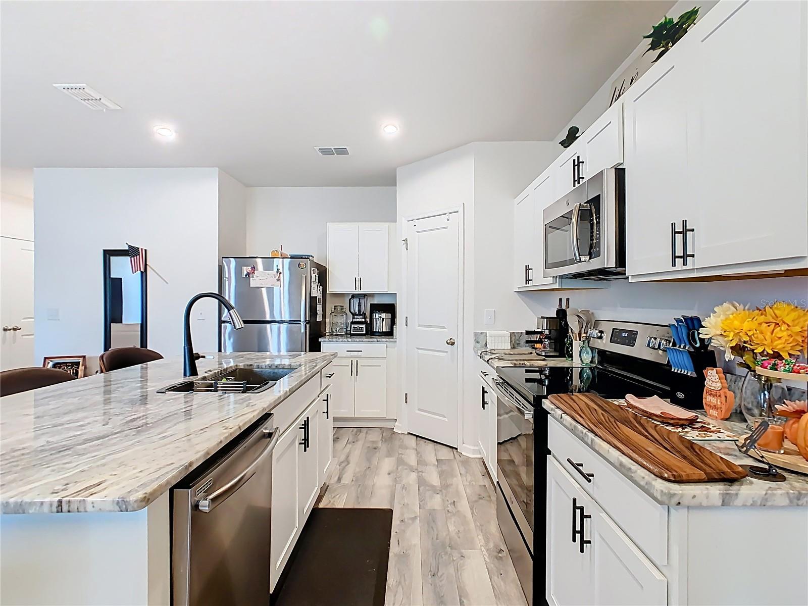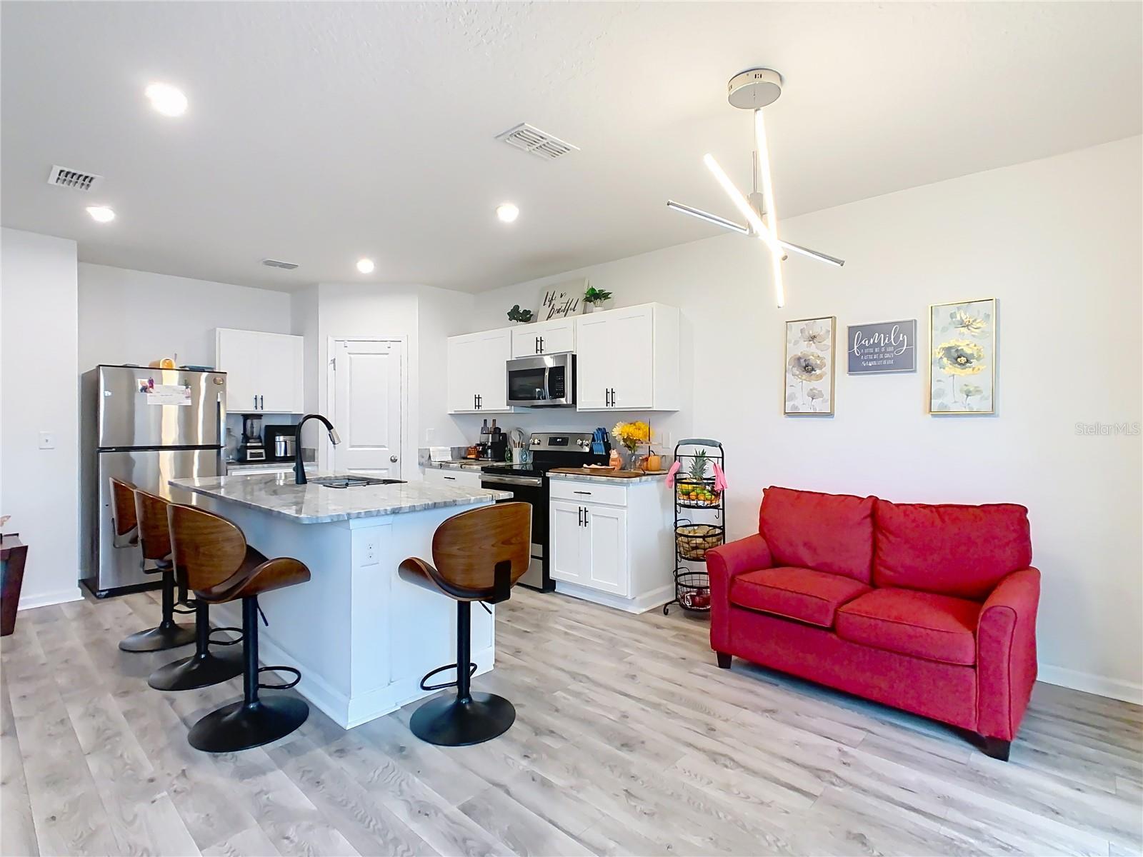 Built in 2019, this well-kept 3-bedroom, 2-bath home offers 1,431 sq ft of comfortable, modern living. The kitchen features Shaker cabinetry, a center island, granite countertops, and stainless steel appliances, opening to a spacious great room ideal for everyday living and entertaining. A true split floor plan places two secondary bedrooms and a full guest bath off the foyer, with a convenient laundry closet centrally located between bedroom areas. The primary suite is generous in size and includes a large bathroom and walk-in closet. Recent finishes include ceramic tile in the baths and newer gray wood-look laminate throughout the rest of the home. Additional upgrades include a whole-house water softener and a roof-covered, enclosed lanai. Out back, the vinyl-fenced yard is neatly landscaped with storage areas and expansive paver spaces perfect for relaxing or hosting guests. Highland Place is an intimate community of just 42 homesites, conveniently located near restaurants, shopping, I-4, and Central Florida’s top attractions. Appliances convey (microwave, dishwasher, range, refrigerator, washer, and dryer). Schedule your showing today.