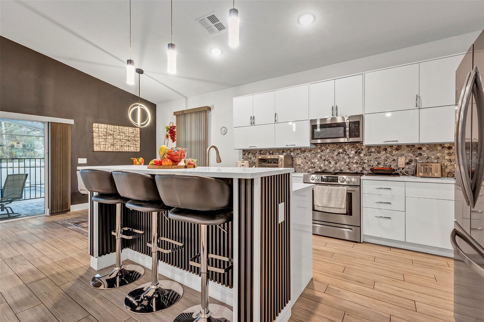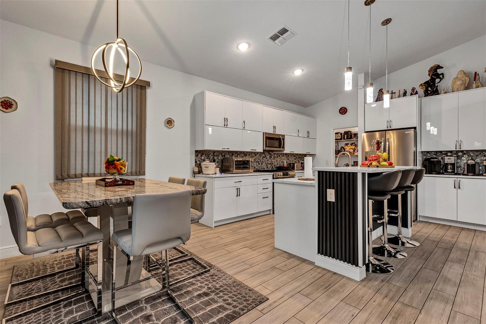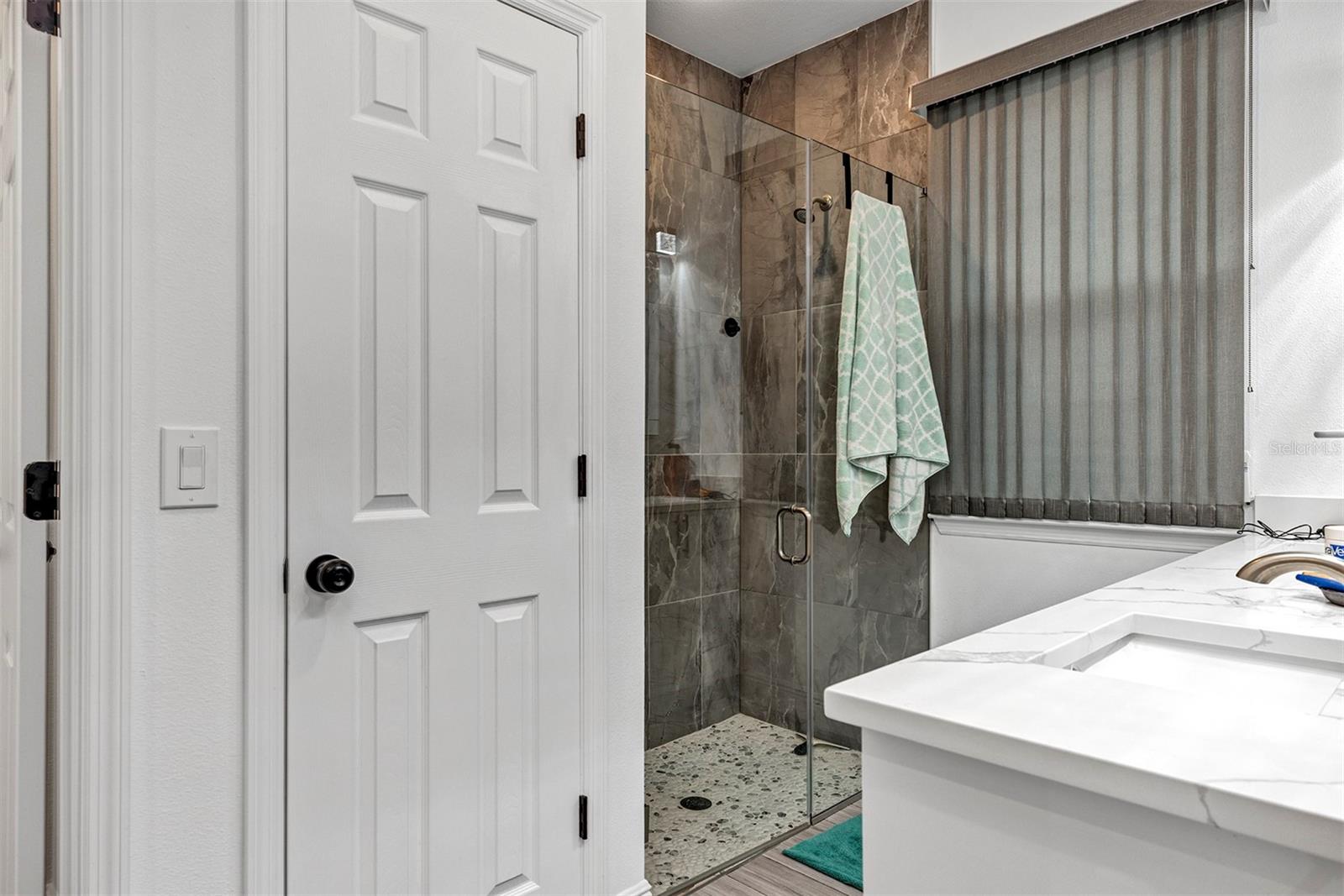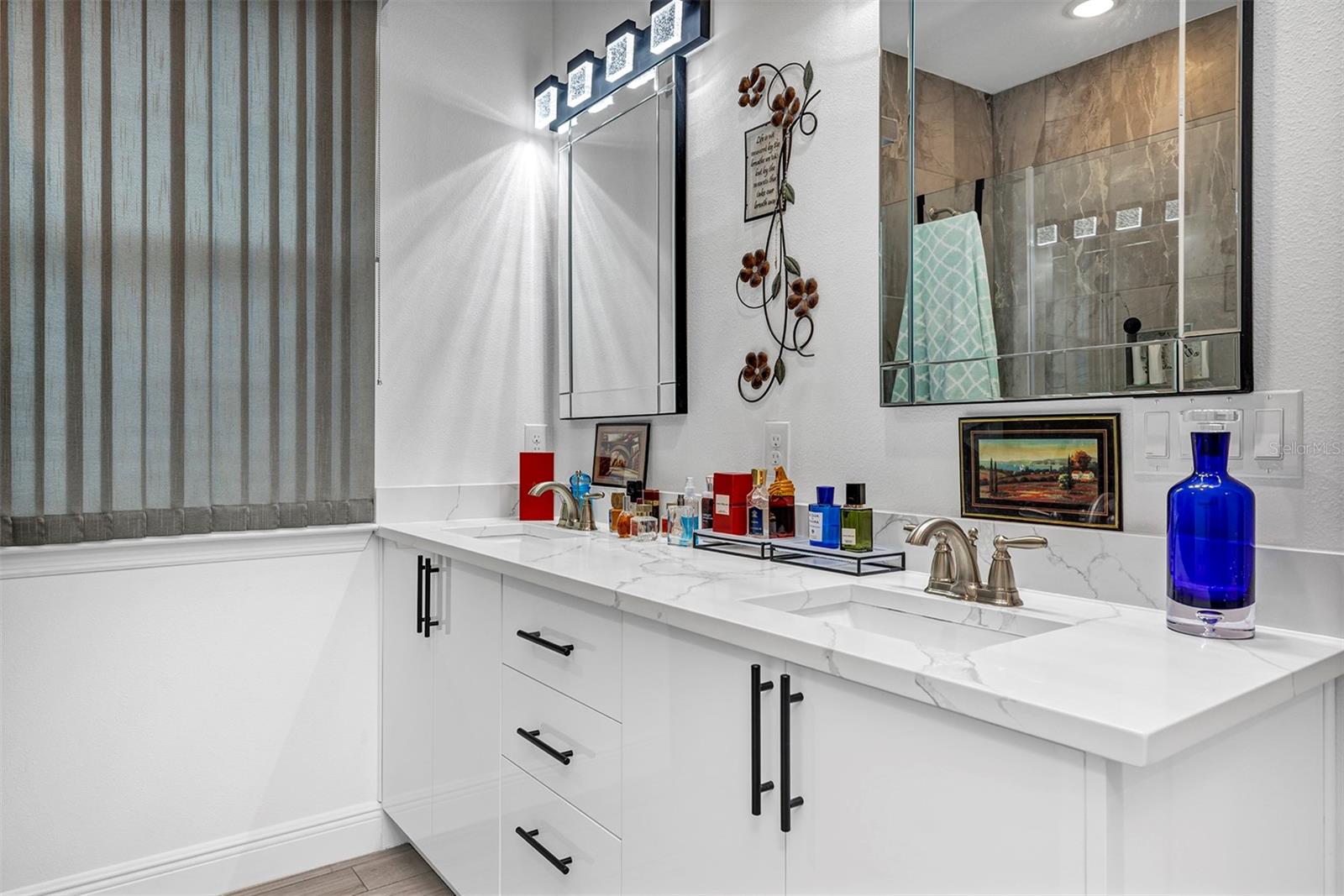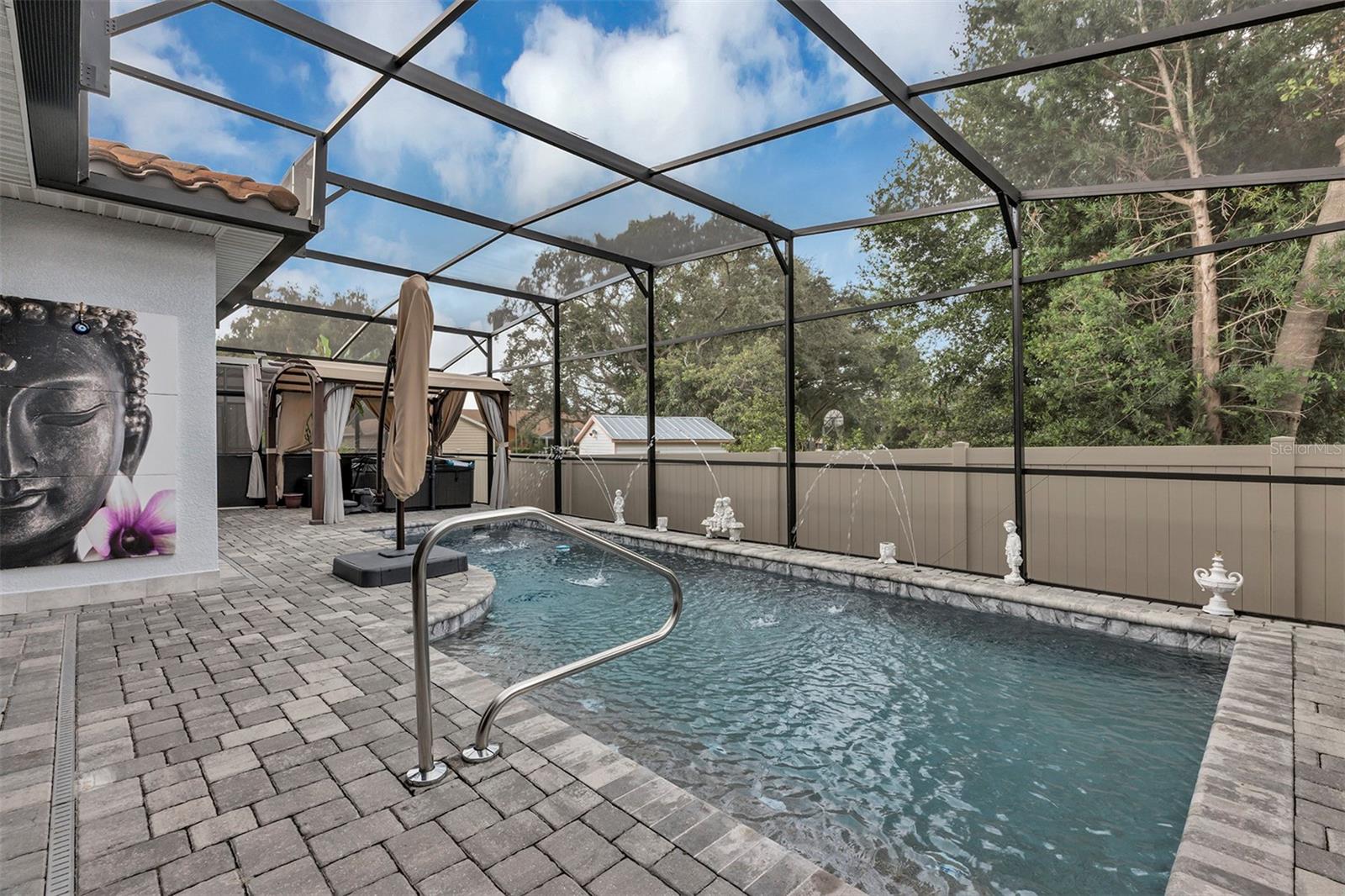 Welcome to 379 Villa Sorrento Circle, where modern luxury meets Florida living! This stunning one-story home combines modern design, functionality, and meticulous care! With 4 bedrooms, 3.5 baths, and an open-concept floor plan, this residence offers both privacy and seamless flow for everyday living and entertaining. Step inside and be greeted by expansive porcelain tile floors throughout and a thoughtfully designed layout. The gourmet kitchen is a chef’s dream, featuring 42-inch cabinetry, upgraded quartz countertops, a spacious two-tier island, and a hidden walk-in pantry. The kitchen opens to the dining and living areas, creating the perfect gathering space for family and friends. The private primary suite is tucked away in the rear of the home and showcases dual walk-in closets and a luxurious en suite bath with double vanities, a walk-in shower, and an additional bath/shower combo. A large front bedroom with its own walk-in closet provides extra comfort, while two middle bedrooms share a Jack-and-Jill bathroom with dual vanities and a walk-in shower. Enjoy Florida’s indoor-outdoor lifestyle with a 12-foot sliding glass door that opens to the screened lanai. Here you’ll find a sparkling pool, above-ground hot tub under a gazebo, and a poolside half bath with outdoor shower. The lanai is perfect for alfresco dining and includes space for a future outdoor kitchen. This property boasts professional landscaping with curb appeal, epoxy coated garage floor and spacious laundry/utility room. Located in the desirable Villa Sorrento community, residents enjoy resort-style amenities and a prime location near world-famous attractions including Disney, Universal, SeaWorld, Legoland, and more. Conveniently situated between both Florida coasts, this home provides easy access to beaches, dining, shopping, and entertainment. This is modern Florida living at its finest—move-in ready and waiting for you. Schedule your private showing today!