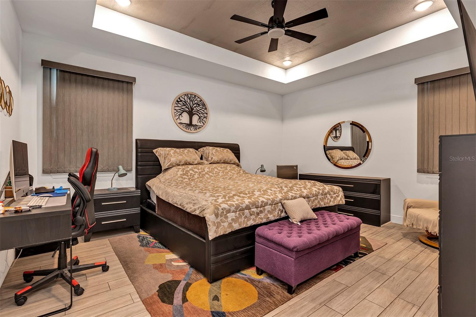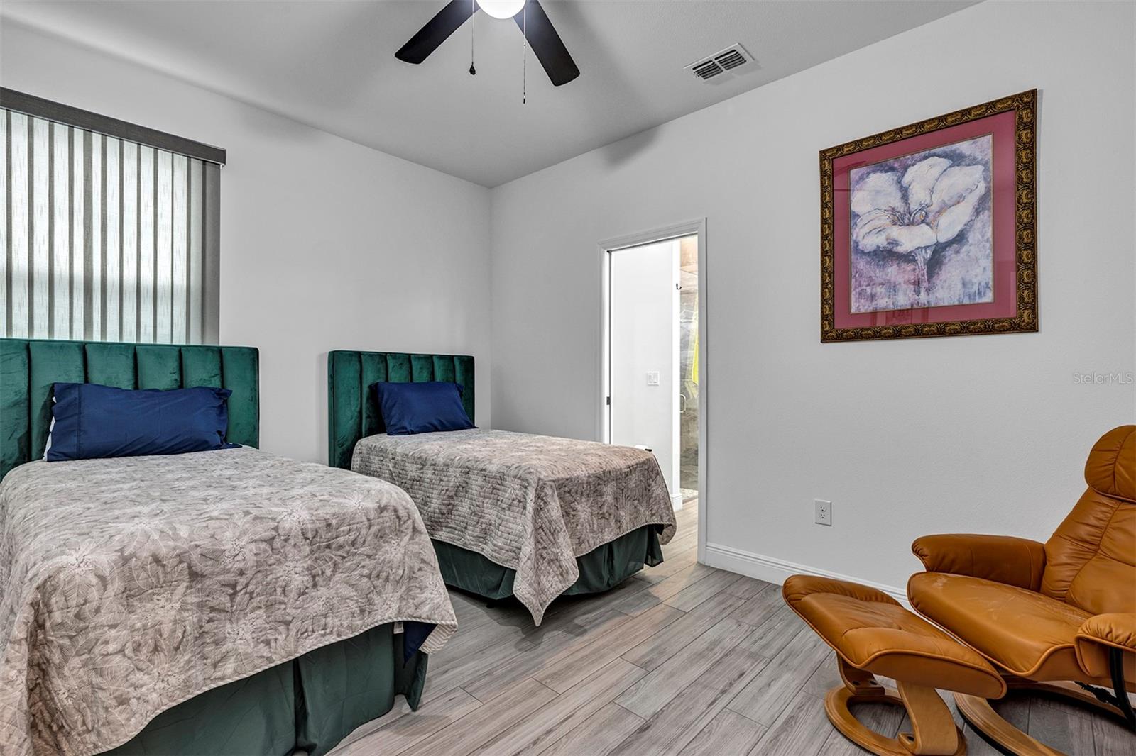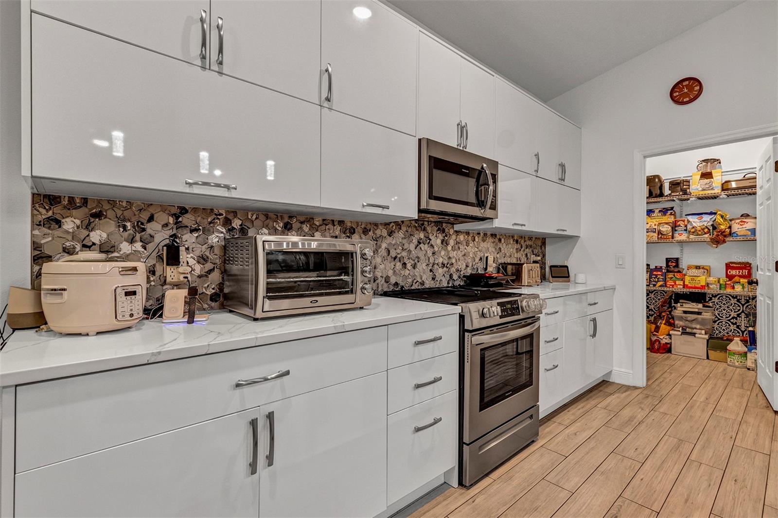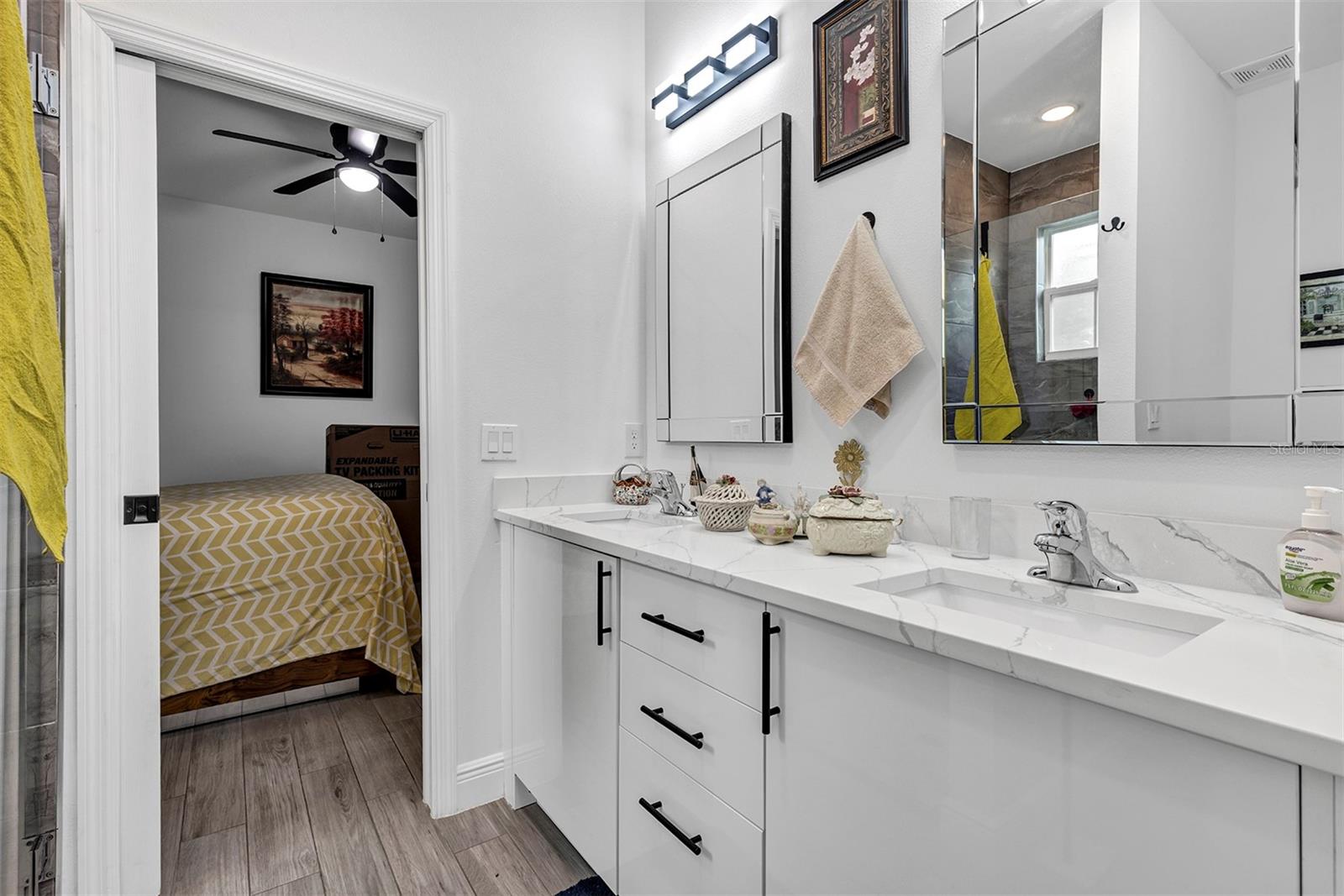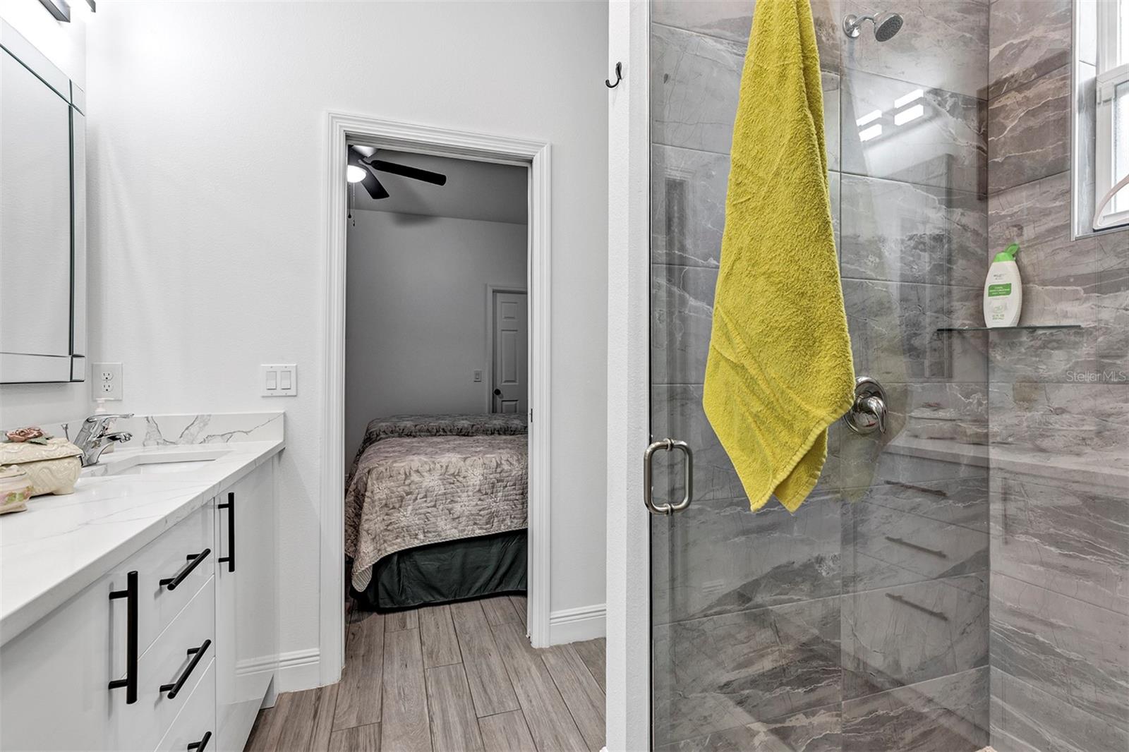 Welcome to 379 Villa Sorrento Circle, where modern luxury meets Florida living! This stunning one-story home combines modern design, functionality, and meticulous care! With 4 bedrooms, 3.5 baths, and an open-concept floor plan, this residence offers both privacy and seamless flow for everyday living and entertaining. Step inside and be greeted by expansive porcelain tile floors throughout and a thoughtfully designed layout. The gourmet kitchen is a chef’s dream, featuring 42-inch cabinetry, upgraded quartz countertops, a spacious two-tier island, and a hidden walk-in pantry. The kitchen opens to the dining and living areas, creating the perfect gathering space for family and friends. The private primary suite is tucked away in the rear of the home and showcases dual walk-in closets and a luxurious en suite bath with double vanities, a walk-in shower, and an additional bath/shower combo. A large front bedroom with its own walk-in closet provides extra comfort, while two middle bedrooms share a Jack-and-Jill bathroom with dual vanities and a walk-in shower. Enjoy Florida’s indoor-outdoor lifestyle with a 12-foot sliding glass door that opens to the screened lanai. Here you’ll find a sparkling pool, above-ground hot tub under a gazebo, and a poolside half bath with outdoor shower. The lanai is perfect for alfresco dining and includes space for a future outdoor kitchen. This property boasts professional landscaping with curb appeal, epoxy coated garage floor and spacious laundry/utility room. Located in the desirable Villa Sorrento community, residents enjoy resort-style amenities and a prime location near world-famous attractions including Disney, Universal, SeaWorld, Legoland, and more. Conveniently situated between both Florida coasts, this home provides easy access to beaches, dining, shopping, and entertainment. This is modern Florida living at its finest—move-in ready and waiting for you. Schedule your private showing today!