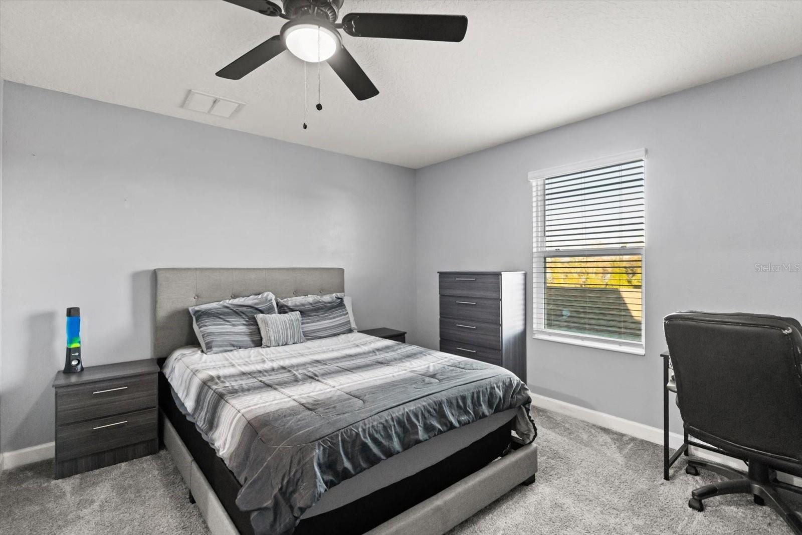 Beautiful home located in the Estates at Lake Hammock, offering a clean, move-in ready presentation and a layout designed for comfort and flexibility. Set on a quiet cul-de-sac with limited street traffic, this spacious home delivers a sense of privacy while still providing everyday convenience. The kitchen is appointed with quartz countertops and tile flooring, while carpeted bedrooms provide added comfort. The primary bedroom is located on the main level and includes an oversized suite for ease and privacy. With seven legal bedrooms, including a thoughtfully converted flex room and an upstairs loft now used as additional bedroom space, the layout offers exceptional options for guests, multi-generational living, or creating dedicated hobby and work areas. Additional highlights include a two-car garage, a fenced-in yard, and a covered front porch ideal for enjoying Florida living. Ceiling fans are installed in many rooms, the home is wired for an alarm system, and two solar systems are in place to help manage electric costs, with estimated savings averaging approximately $6,000 per year on energy expenses. The community offers a park and playground, and the location provides convenient access to major roadways including 408, 50, and the Turnpike. Shopping, everyday conveniences, and area attractions are all within easy reach, with theme parks including Walt Disney World just minutes away.