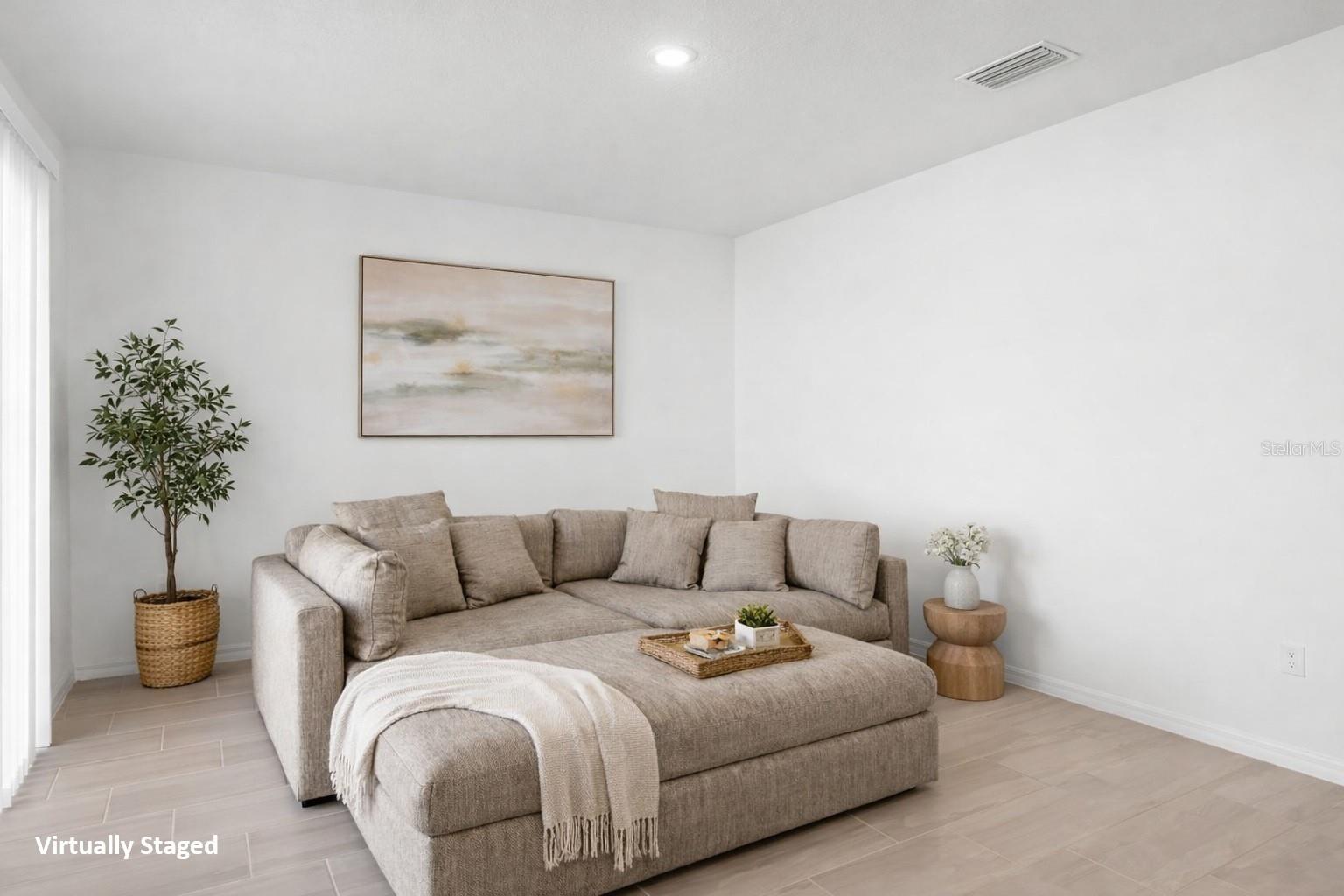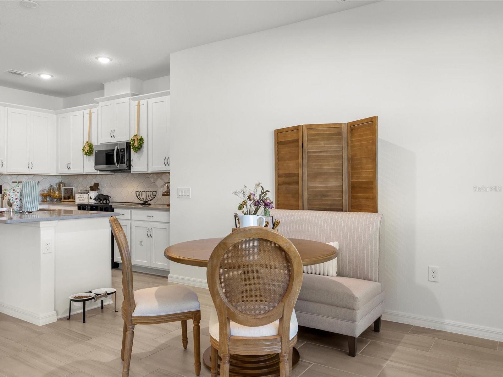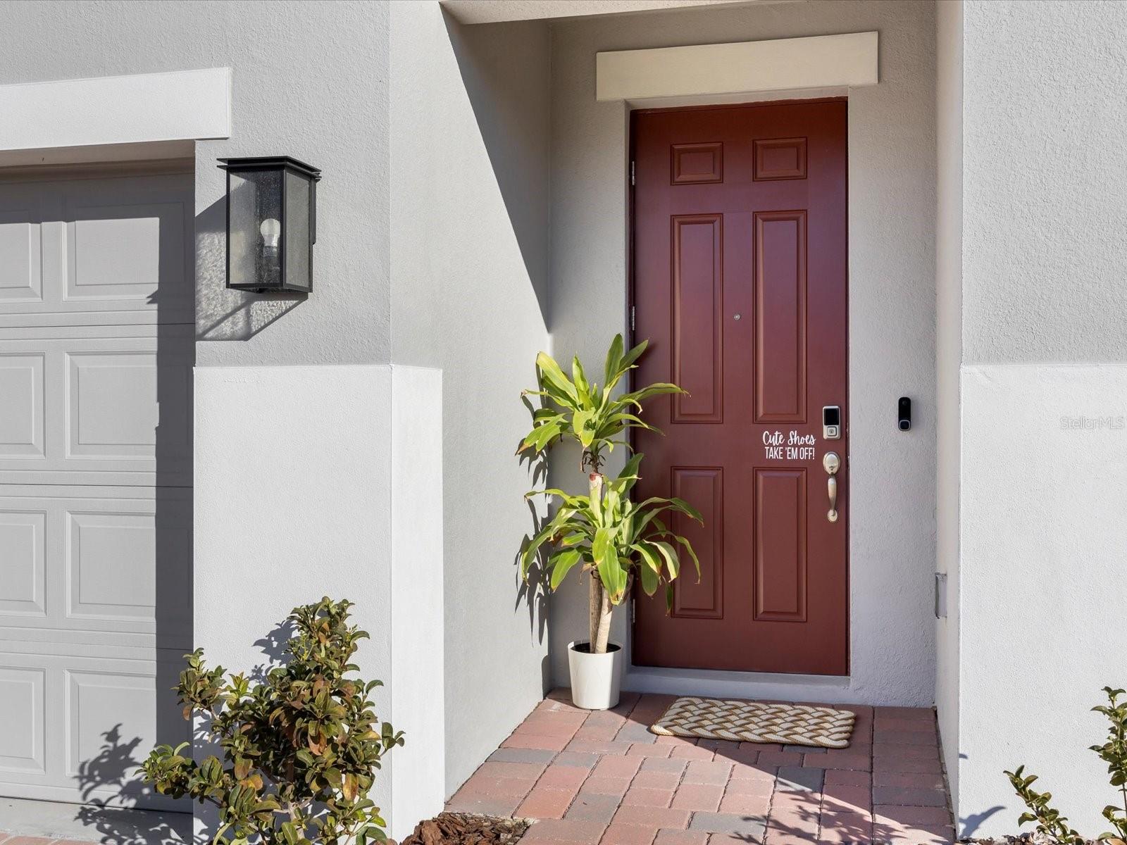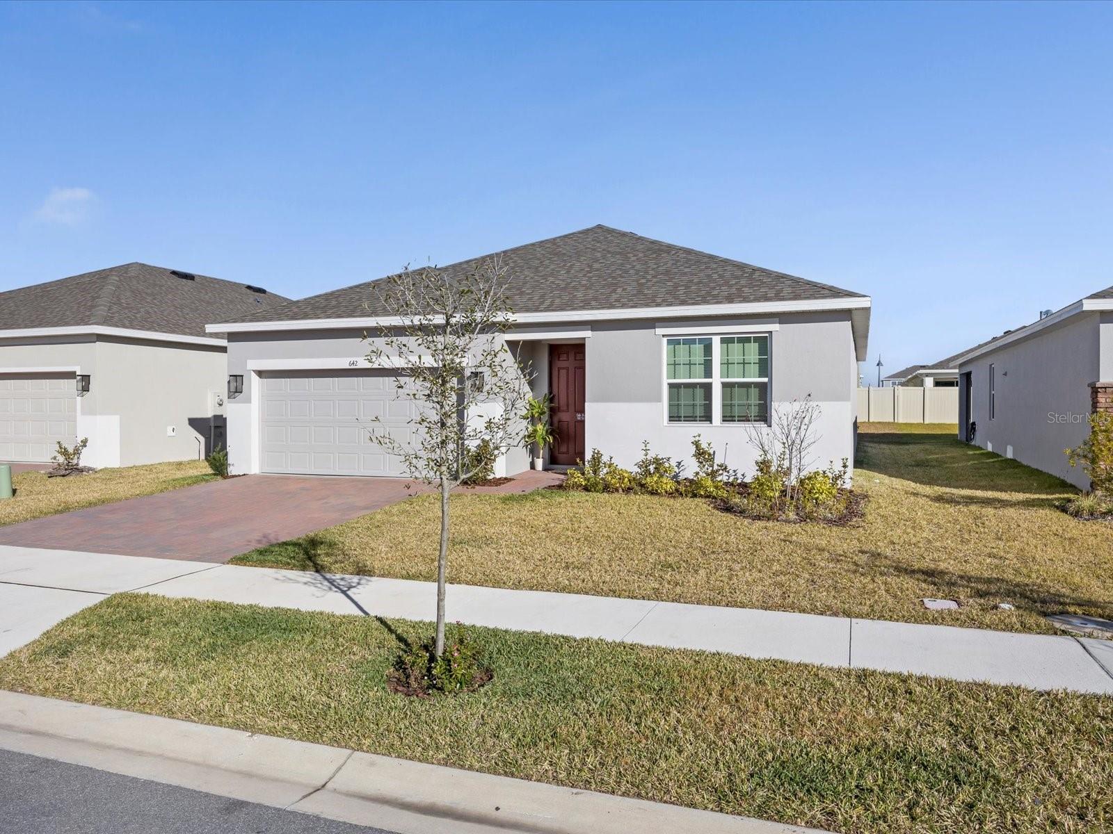 Built in late 2024 and gently lived in by its original owner, this nearly new single-family home offers modern design, smart technology, and energy-efficient living without the wait of new construction. The thoughtfully designed layout includes three bedrooms, two bathrooms, a two-car garage, and flexible living space ideal for a home office, den, or playroom. The open-concept main living area is bright and welcoming, with tile flooring throughout and a seamless flow between the kitchen, dining area, and great room. The kitchen is finished with quartz countertops, a large center island, ample cabinetry, and a full Samsung appliance suite, including Samsung refrigerator, microwave, dishwasher, and cooktop, creating a cohesive and modern look that’s both stylish and functional for everyday living and entertaining. The home is equipped with smart light switches, a keypad entry door lock, an Ecobee smart thermostat and doorbell, and a smart water heater, offering convenience and remote-control functionality. The A/C system includes a HALO LED air purification system designed to improve indoor air quality and airflow throughout the home. The primary suite is privately positioned and features a walk-in closet and an en-suite bathroom with dual sinks, quartz countertops, and a spacious walk-in shower. Secondary bedrooms are well sized and share a modern full bathroom. Window blinds are installed throughout, adding to the move-in-ready appeal. Outside, the property includes a full irrigation system serving the entire yard, helping maintain the landscaping with ease. Additional features include a brick-paver driveway and walkway, energy-efficient construction elements, and a dedicated indoor laundry room. The community offers green spaces, a playground, dog park, and sidewalks, creating a welcoming neighborhood atmosphere. Conveniently located near shopping, dining, and major roadways, this home provides easy access throughout Haines City and Central Florida. A rare opportunity to own a nearly new, owner-occupied home with modern systems, smart technology, and high-quality finishes already in place.