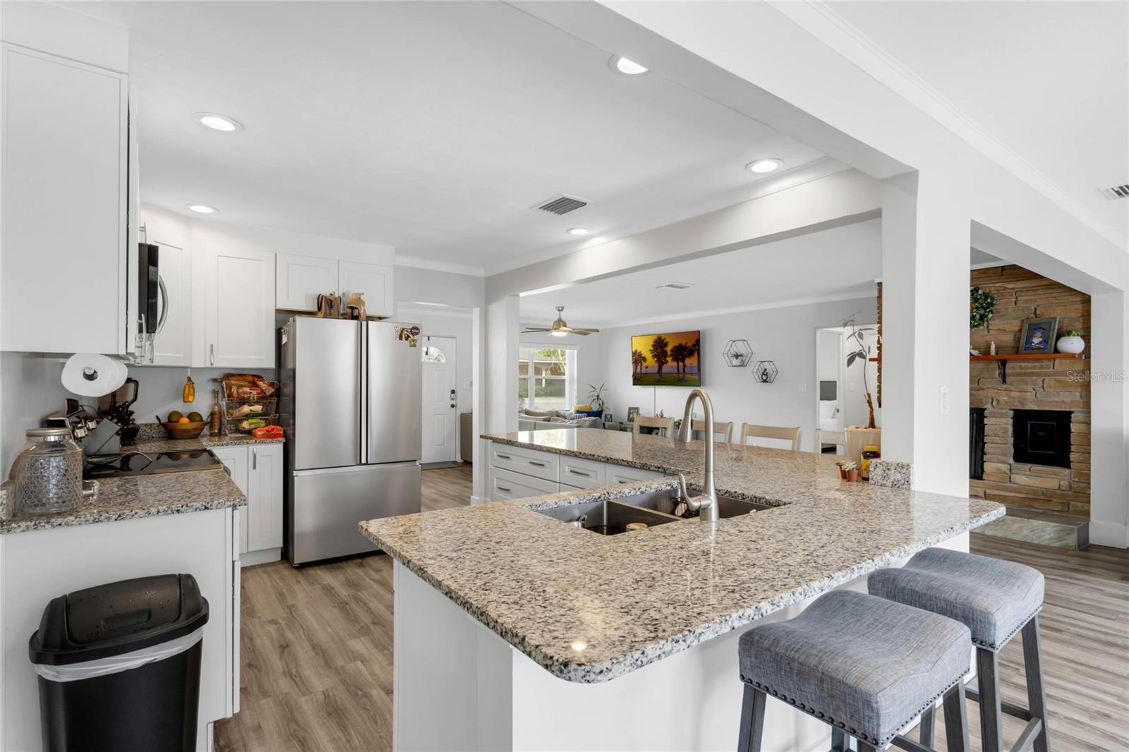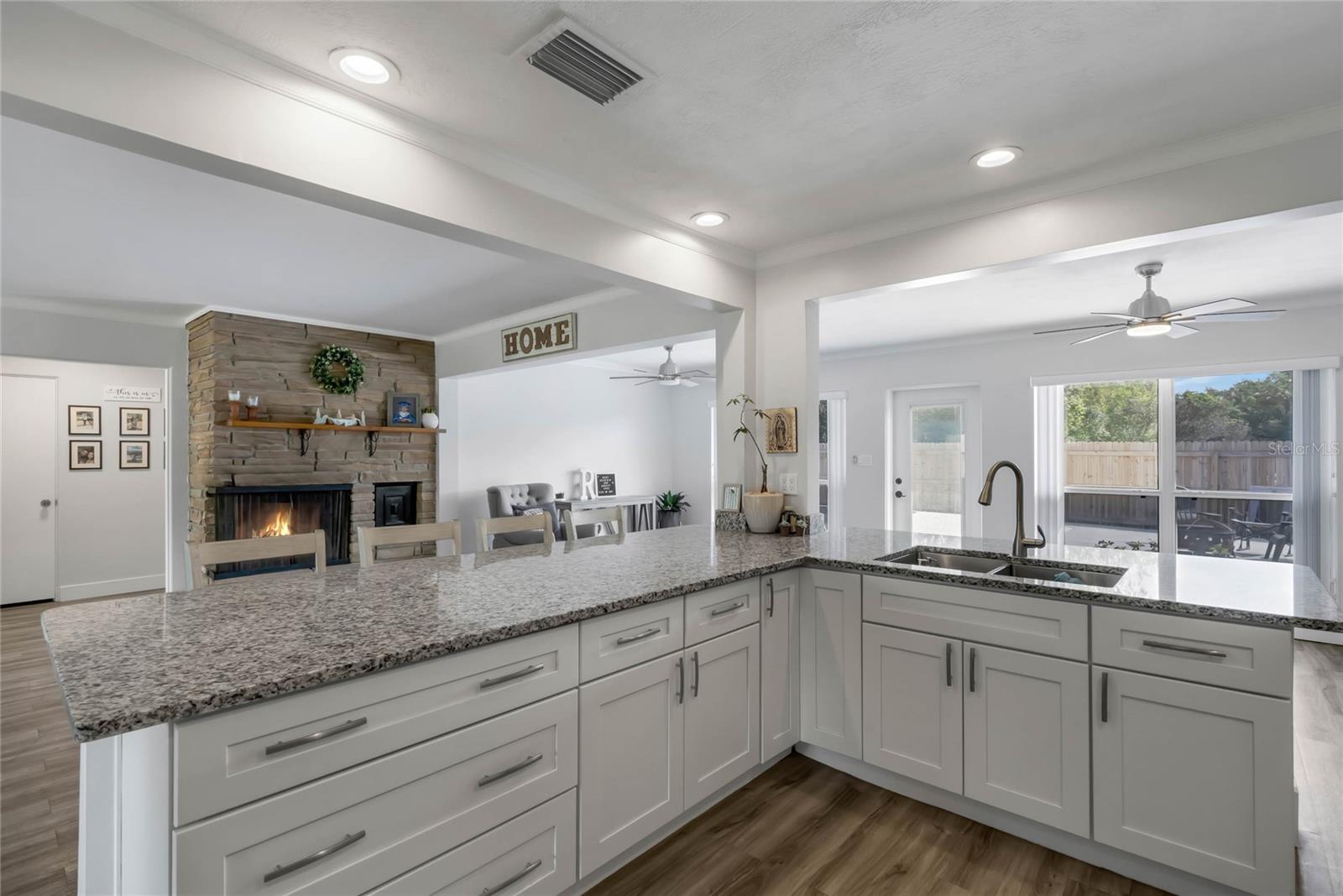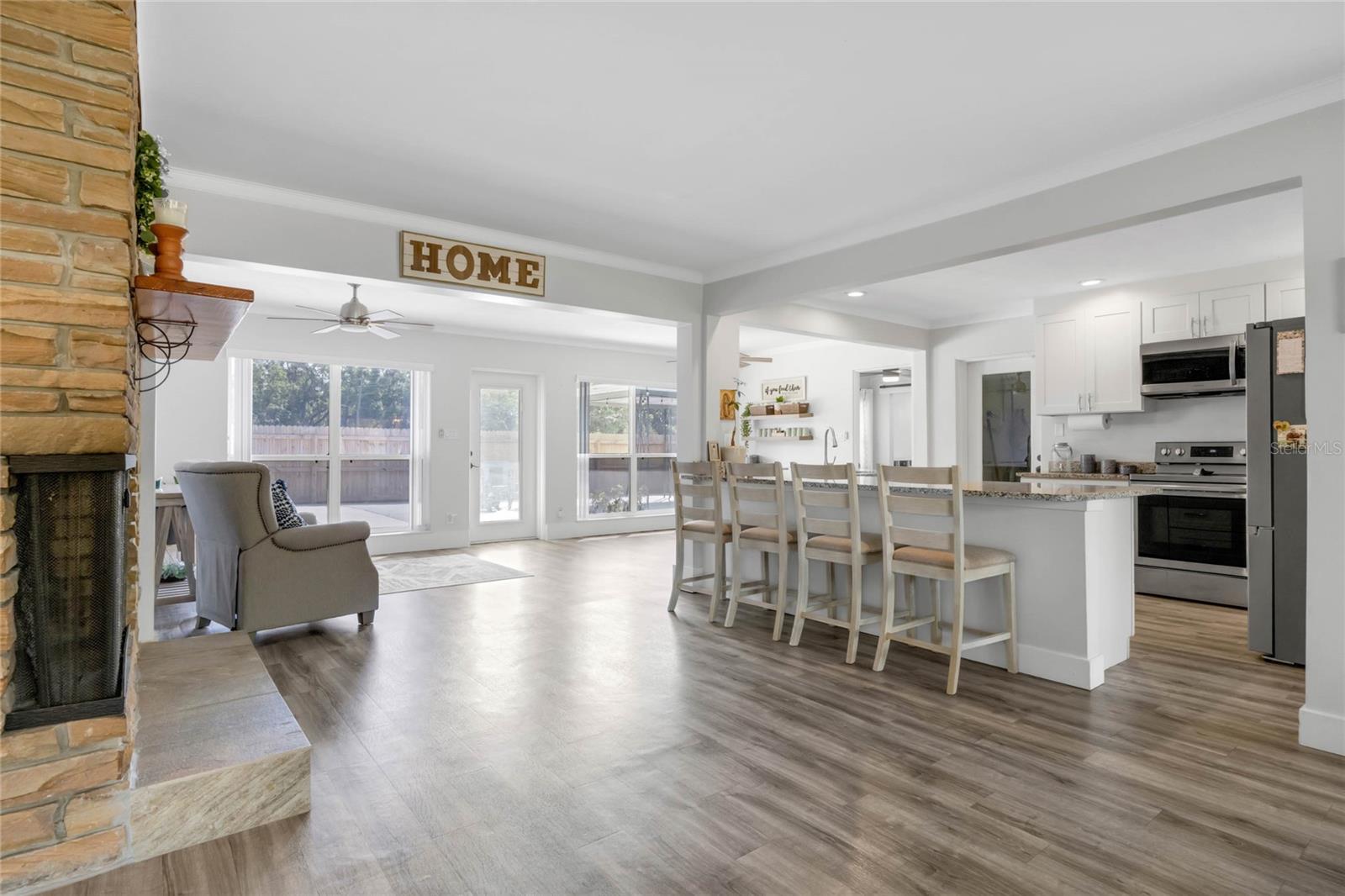 Enjoy this 3 bedroom 2 bath home nestled in the heart of Haines City that has been remodeled . You have quick access to dining,school and shopping, yet tucked away in a quiet area. This huge corner property is complete with a stylish metal roof (installed 7 to 8 yrs ago),a sparkling pool that has been resurfaced ,2 car garage,outdoor storage building and 2 carports for your toys or boat. Upon entering you will find a spacious living room with a cozy fireplace with a built in firebox for wood. To the right is a formal dining area all with big picture windows to let in that natural light. The living area has sliding accordion style glass door panels that open to a formal living room. From here you have huge windows overlooking the pool area. The kitchen has wood cabinets and granite counter-tops complete with a pass through window to the living room and an eat at bar area to the formal living room,perfect for entertaining. The master bedroom is complete with a ,walk-in shower. The other 2 rooms and bathroom are located on the other side of the home in this split level design. Make your appointment to view this lovely home today.