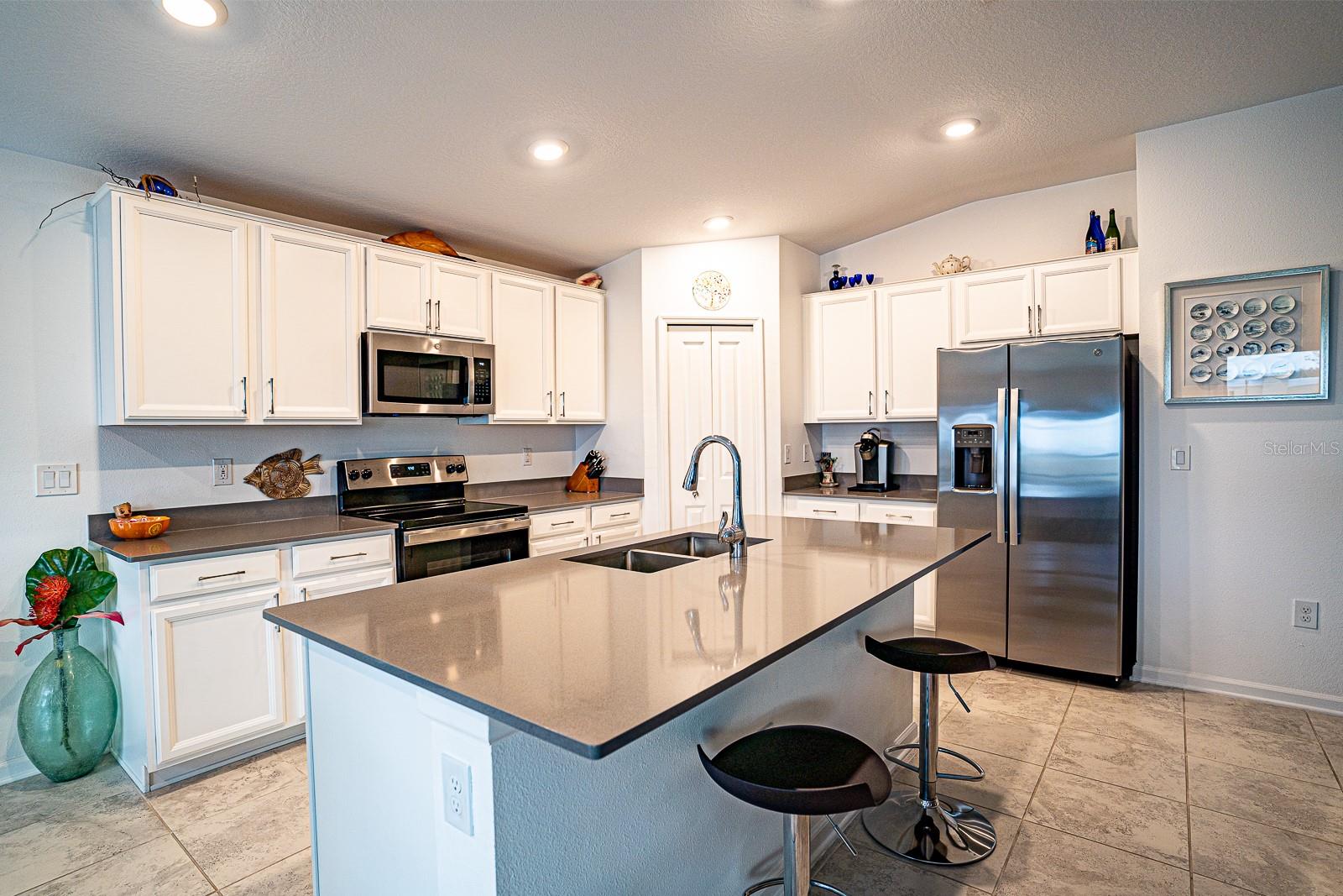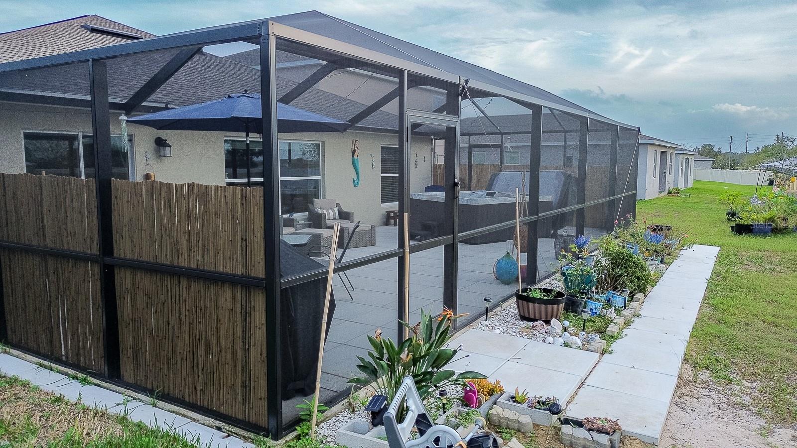 Welcome to this stunning 4-bedroom, 2-bathroom gem in the highly sought-after Orchid Terrace community! Built in 2022, this home combines modern elegance with thoughtful design, making it ideal for both relaxation and entertaining. The open-concept layout centers around a beautiful chef’s kitchen, complete with high-end appliances, abundant cabinet space, and a large island—perfect for hosting or gathering with family. The spacious primary suite offers a true retreat, featuring a luxurious bathroom with dual vanities, a large shower, and an impressive walk-in closet. The dining room seamlessly connects to the outdoors through sliding glass doors that open to a generous, screened-in patio creating an ideal space for indoor-outdoor living year-round. Located in a vibrant community, Orchid Terrace offers exceptional amenities, including a dog park for furry friends, a playground, and a sparkling pool for warm summer days. This move-in ready home combines the best of modern living with community charm—a perfect place to make lasting memories! Additional features include whole-house solar panels, offering sustainable energy solutions and reduced utility costs.