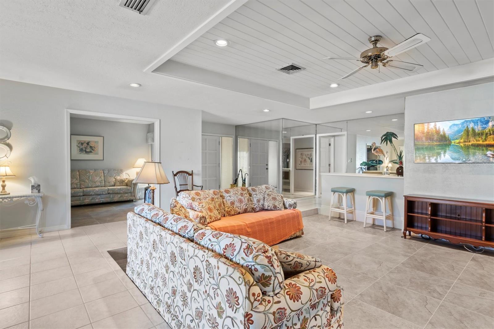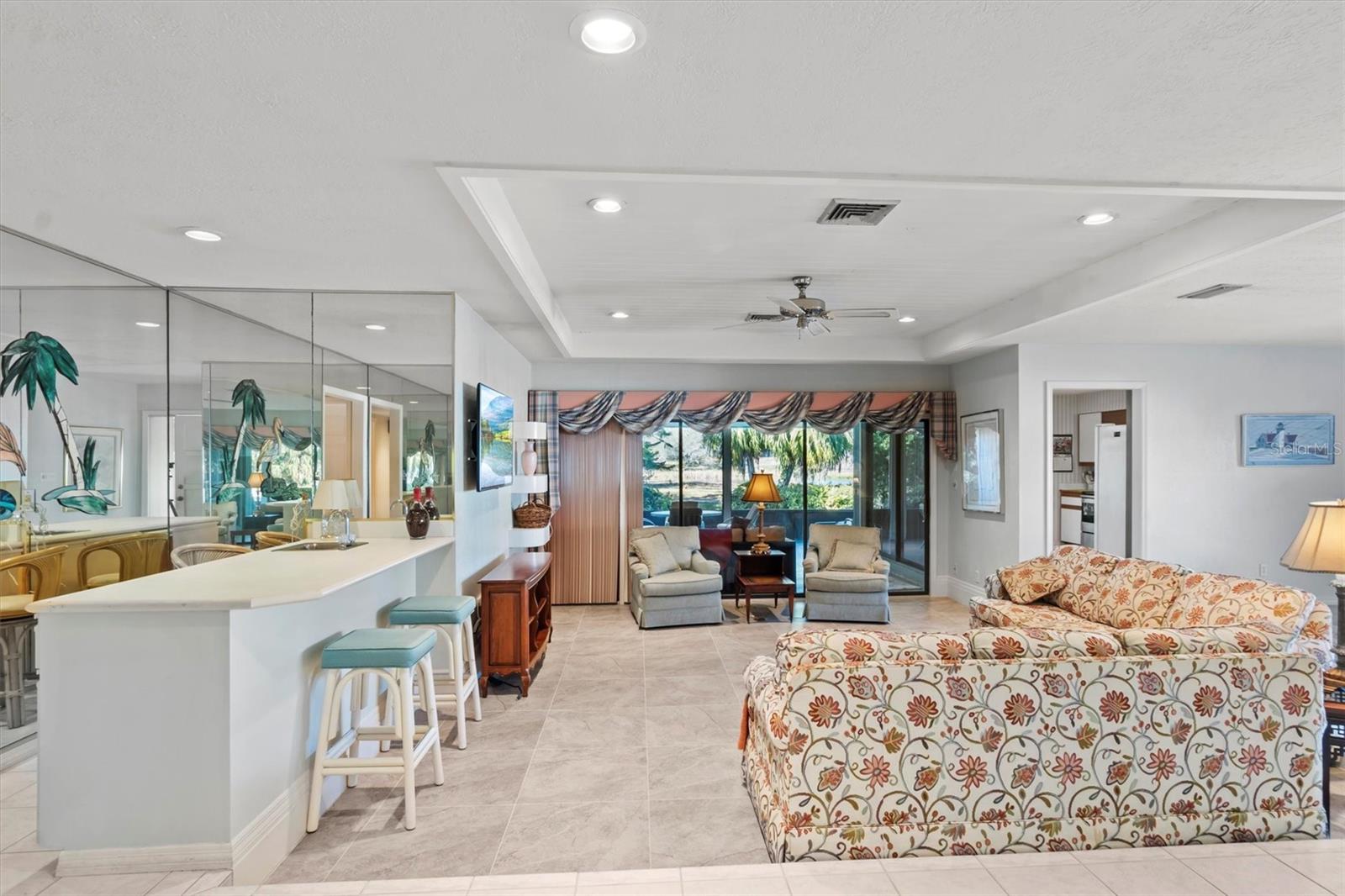 CHECK OUT THIS NEW PRICE! FURNISHED! Look at this gorgeous yard! 3 bedroom, 2 bath home nestled at the end of a tranquil cul-de-sac in Grenelefe Estates on the golf course. Step into the sunken living room, adorned with recessed ceilings, and enjoy entertaining at the stylish wet bar complete with barstools. The master bedroom offers two spacious walk-in closets and a double vanity with sinks, plus a breathtaking view that you’ll love waking up to. Breathe in the fresh air through the sliders that connect the primary bedroom, living room, and kitchen, effectively blending indoor and outdoor spaces. The expansive lanai spans over 300 square feet, providing an ideal setting for gatherings and relaxation. The kitchen features a cozy dinette alongside a separate dining area for larger gatherings. New roof 2021. Hot water heater 2021. Get excited about the redevelopment of the Country Club, golf course and pool, and amenities set to begin in January 2025, which will introduce three new pools and numerous pickleball courts for active enjoyment. Don't miss out on this fantastic opportunity!