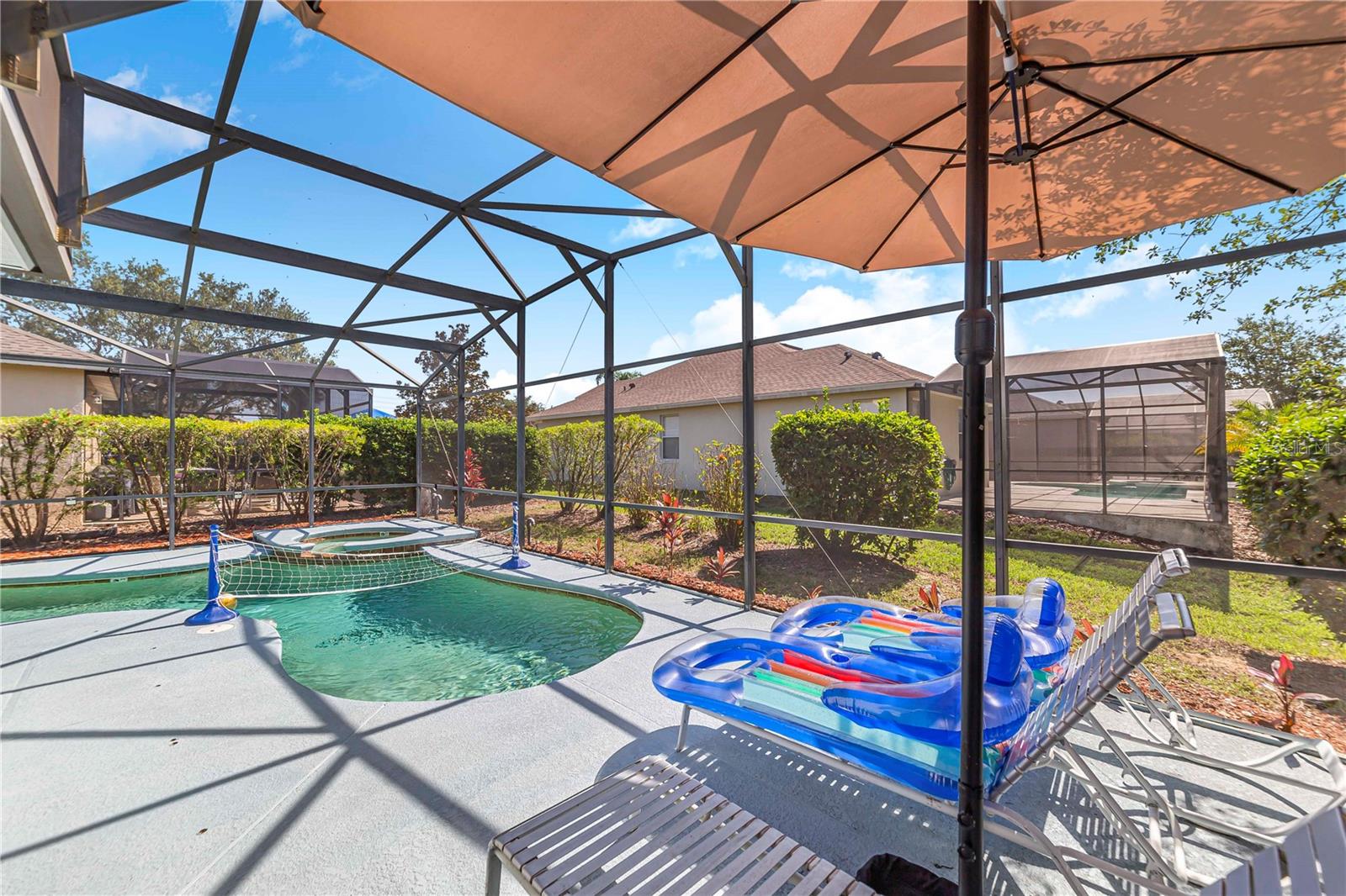 Welcome to this spacious and beautifully designed home—perfect for a large family or an Airbnb investment! As you step through the foyer, you’ll be greeted by soaring ceilings and a bright open floor plan connecting the living room and dining area, all overlooking the stunning pool. Gorgeous hardwood flooring and a custom rod-iron staircase add elegance throughout. The kitchen features granite countertops, ample cabinetry, a walk-in pantry, and a charming nook that overlooks the pool—plus a dedicated coffee bar for your morning routine. Downstairs also includes a spacious laundry room, a full bathroom with both a shower and tub, and a versatile room that can serve as a home theater or office. The garage offers plenty of space for parking, a workout area, or entertaining. Step out to the serene screened-in pool area, complete with a relaxing Jacuzzi that overflows into the pool—perfect for soaking up the Florida sun. Upstairs you’ll find three bedrooms, including a luxurious master suite with a large walk-in closet and a walk-in shower. The additional two bedrooms are generously sized and share a full bath with a tub and shower. There is also a second master bedroom downstairs featuring wood flooring and a spa-like bathroom with a garden tub, dual vanities, and a walk-in shower. This energy-efficient home also comes equipped with solar panels—offering long-term savings. Don’t miss your opportunity to own this stunning and versatile home!