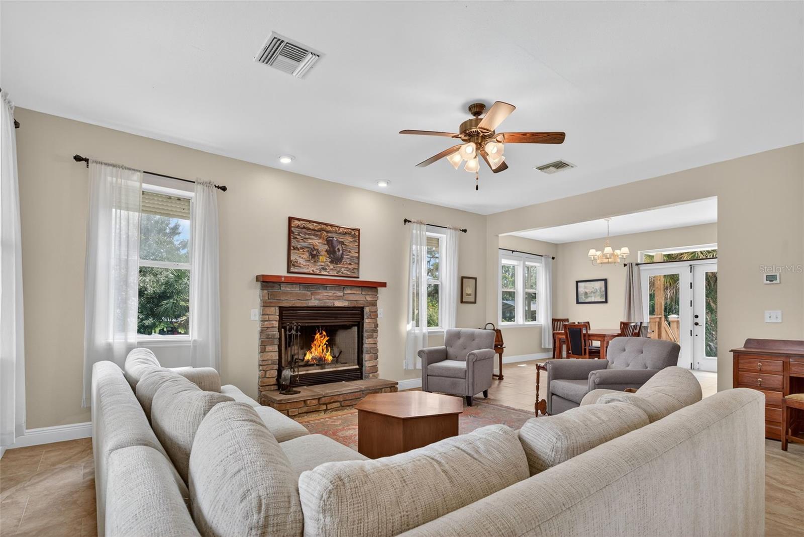 Capture a rare piece of Old Florida with this peaceful lakefront retreat on Lake Marion. Situated on 80 feet of pristine lake frontage, this beautifully maintained 2010-built, 3-bedroom, 2.5-bath home offers serene waterfront living and timeless charm. A true fisherman’s paradise, the property enjoys easy boat access next door, making it ideal for both full-time living and recreational enjoyment. The home is priced below the August 2025 appraisal and features no HOA, providing complete freedom for long-term or vacation rentals. Start and end your days on the inviting front porch, where private, tranquil lake views create the perfect setting for relaxation. Inside, expansive windows showcase stunning views and local wildlife, including peacocks, bald eagles, and osprey. Cozy up to the wood-burning stone fireplace, adding warmth and character to the living space. The home is thoughtfully upgraded with automatic and manual hurricane shutters, a durable metal roof for added storm security, and a newly installed tankless water heater (2024). A brand-new artisan well has also been drilled and is ready for the new owner. The downstairs primary suite offers convenient access to the main living areas and features an ensuite bath with a whirlpool jet tub. The well-appointed kitchen includes granite countertops and all appliances needed for efficient cooking, while the spacious dining room comfortably accommodates family and friends year-round. Upstairs, you’ll find two oversized, storybook-style bedrooms with charming dormers overlooking Lake Marion. The home has also been freshly pressure washed, reflecting the meticulous care and pride of ownership throughout. If you’re seeking a safe, inviting lakefront home that embodies the spirit of Old Florida, this exceptional property is not to be missed.