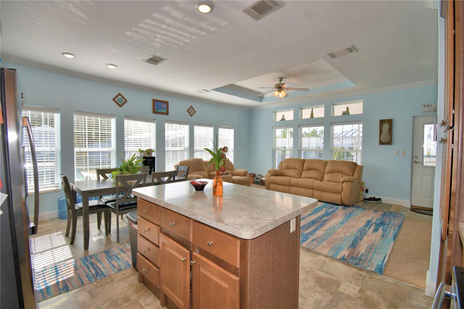 LOOK NO FURTHER! BEAUTIFUL 2017 DOUBLEWIDE HOME with OPEN FLOOR PLAN with tray ceiling and crown molding. Located in a 55+ GATED COMMUNITY IN CENTRAL FLORIDA. Home offers large kitchen with stainless steel appliances and an island. Separate dining room with built-in shelving and lots of windows for natural light. 2 Beds/2 Baths with inside laundry closet. Primary Bedroom has double closets and an ensuite bathroom with walk-in shower. Guest Bedroom has a built-in closet and door to access the back yard. Guest bath has tub/shower. Carport with covered porch/walk way to front door on side of home that leads to the shed equipped with electricity. Golf Cart sold with home. FLORIDA LIFESTYLE at it's BEST in this community. RECREATIONAL BUILDING/SOLAR HEATED POOL/MANY AMENITIES (MINIATURE GOLF, BOCCE BALL COURTS, PICKLE BALL COURTS,SHUFFLEBOARD, ETC) AROUND THE COMMUNITY. Close top shopping, medical, restaurants and major roadways to both FLORIDA COASTS. VIRTUAL TOUR available for your viewing.
