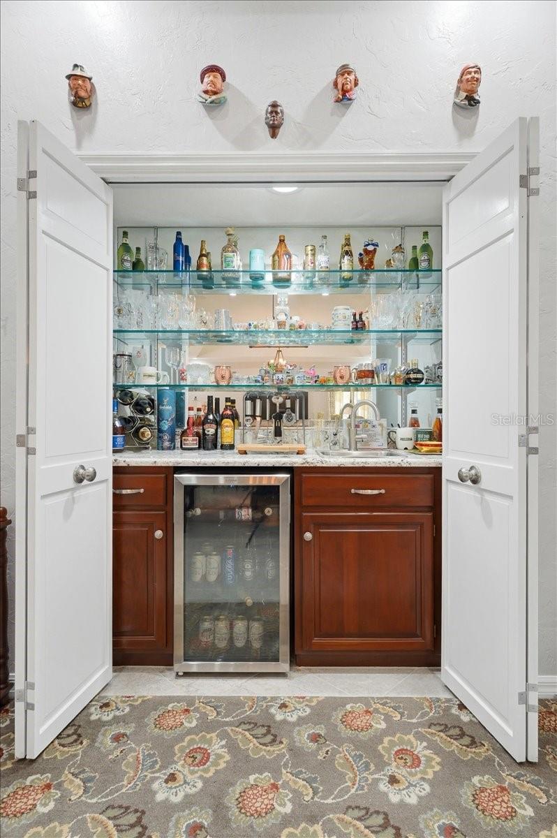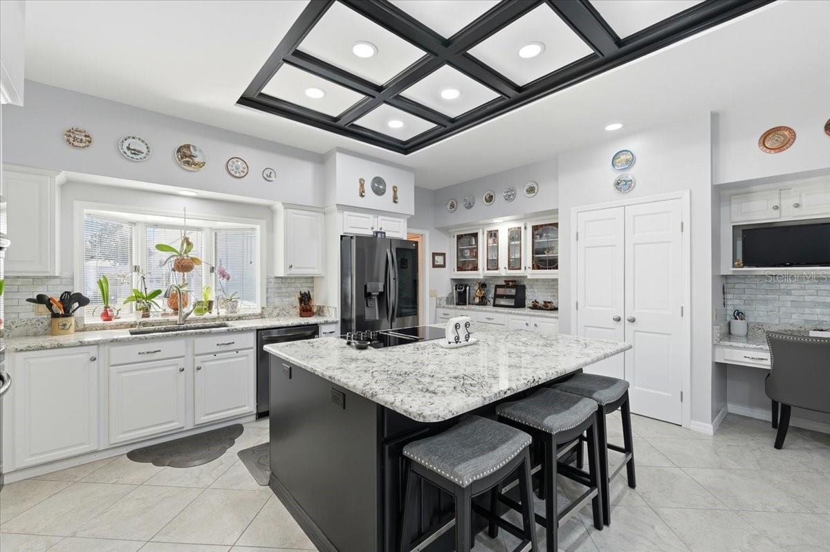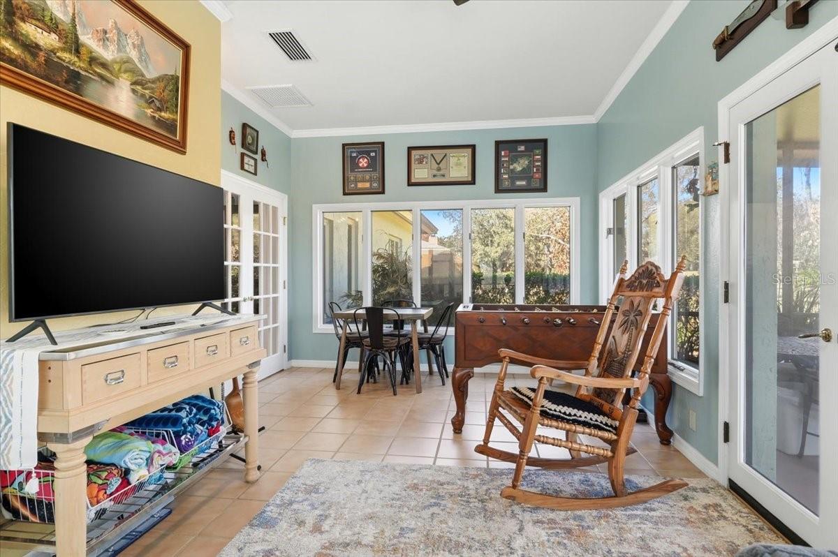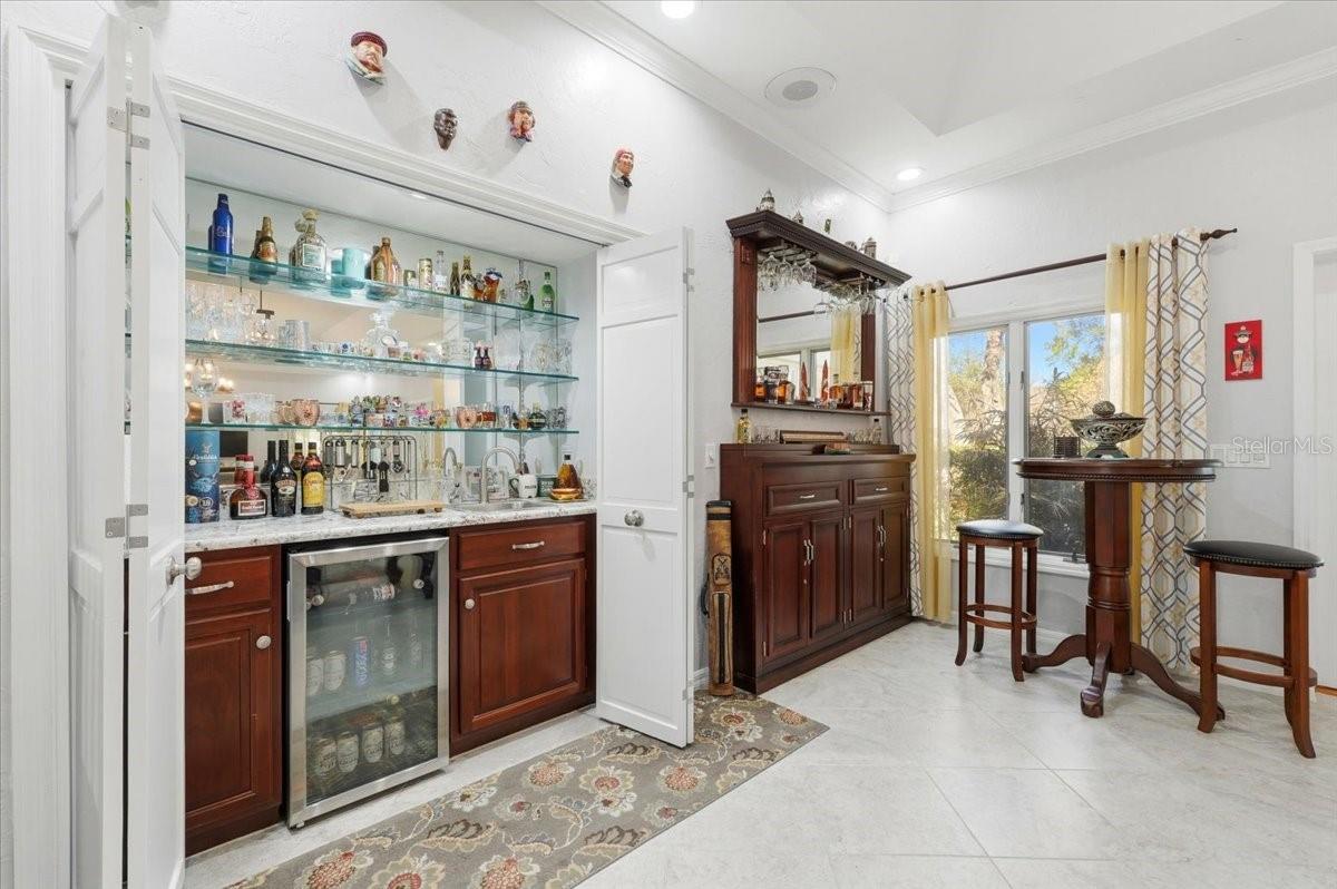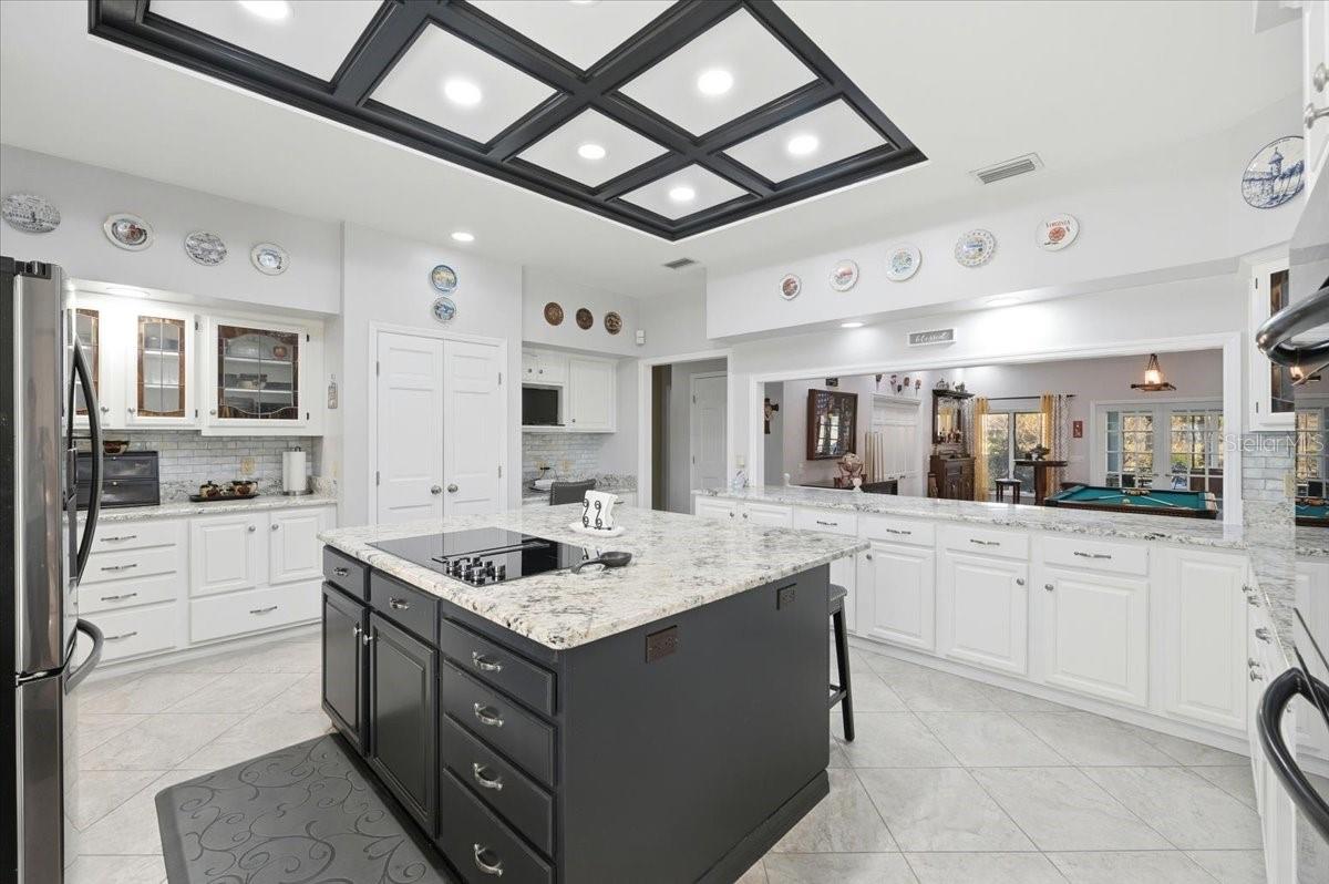 Built w/ intention & craftsmanship, this character-rich neighborhood reflects a time when homes were thoughtfully designed. Within this custom-community, sits your future home boasting ~4,000 H SqFt w/ 3BR, 3.5BA on nearly 1/2 an acre. W/ no req. HOA & no rear neighbors, this split-floorplan Home is designed for multi-generational comfort, where everyone has space w/out sacrificing connection. A newly stained front door welcomes you into an airy Foyer crowned by a dramatic tray ceiling w/ updated light-fixtures & sconces. Bose zone-able speakers provide customized audio in Main Areas & Pool, creating seamless ambiance for living & entertaining. Double-paned windows invite natural light while helping the home stay cool & serene. Beyond the entry, an expansive Great Room unfolds beneath soaring tray ceilings w/ refined fixtures & a wood-burning fireplace wrapped in updated stone. Dual sets of French doors fill the space w/ sunshine & create a timeless backdrop for entertaining. A new ½BA off the Great Room & between the Kitchen sits perfect for company. A granite wet bar w/ sink & wine fridge anchors the room, while the pool table stands ready for evenings that linger. The Formal Dining Room showcases an elegantly-painted coffered ceiling, updated light fixture, & oversized window: tailor-made for dinner parties or late-night rounds of poker/dominoes! The renovated kitchen blends thoughtful design & functionality. Real wood cabinetry, granite countertops, double-ovens, built-in microwave, recessed lighting, passthrough bar, & 2 pantries make it a Cook’s dream! The enormous island w/ a built-in downdraft cooktop offers bar seating: perfect for guests to gather & watch the evening’s signature dish come to life. A bay window over the sink overlooks the front yard, turning dishwashing into a quiet moment w/ pleasant view. The Kitchen also features an under-lit workspace for homework or planning. The adjacent Laundry Room includes granite counters, sink, & pull-down ironing board. Connected by double-glass French doors, the Florida Room is wrapped in windows that flood the space w/ golden-hour light, creating seamless indoor/outdoor living w/ a classic Old Florida feel. The Primary BR is a haven defined by a soaring tray ceiling, generous windows, built-in cabinetry, office nook, & 2 walk-in closets w/ built-ins. The renovated Primary BA features dual sinks & makeup vanity area w/ granite, modern tile, & glass shower: illuminated by an expansive skylight that cascades natural light. At night, the Jacuzzi soaking tub rests beneath the skylight, inviting you to unwind after a long day w/ a glass of wine as soft moonlight streams in. Each Secondary Bedroom is generously sized w/ en-suite BA, solid-surface counters & shower, offering privacy for family & guests. Outdoors, the Covered Patio & Heated Pool sit beneath an elevated screened enclosure w/ frame lighting for glowing evenings. The uniquely shaped Pool is accented by a tiled waterfall whose steady sound creates a peaceful backdrop. Freshly mulched beds & settled gardens frame the yard, overlooking a boundless oasis. In addition to the 2-car garage is an additional golf-cart garage! Updates include 5-tone tile roof(Jan'26) & upgraded screened-gutters('22), pool pump & heater ('22), Water Water ('22) & triple-zone AC systems[2 units (~’23)]. Centrally located between Orlando & Tampa, this property offers a country-feel w/ seclusion & mastercraft rarely found today. All measurements approx