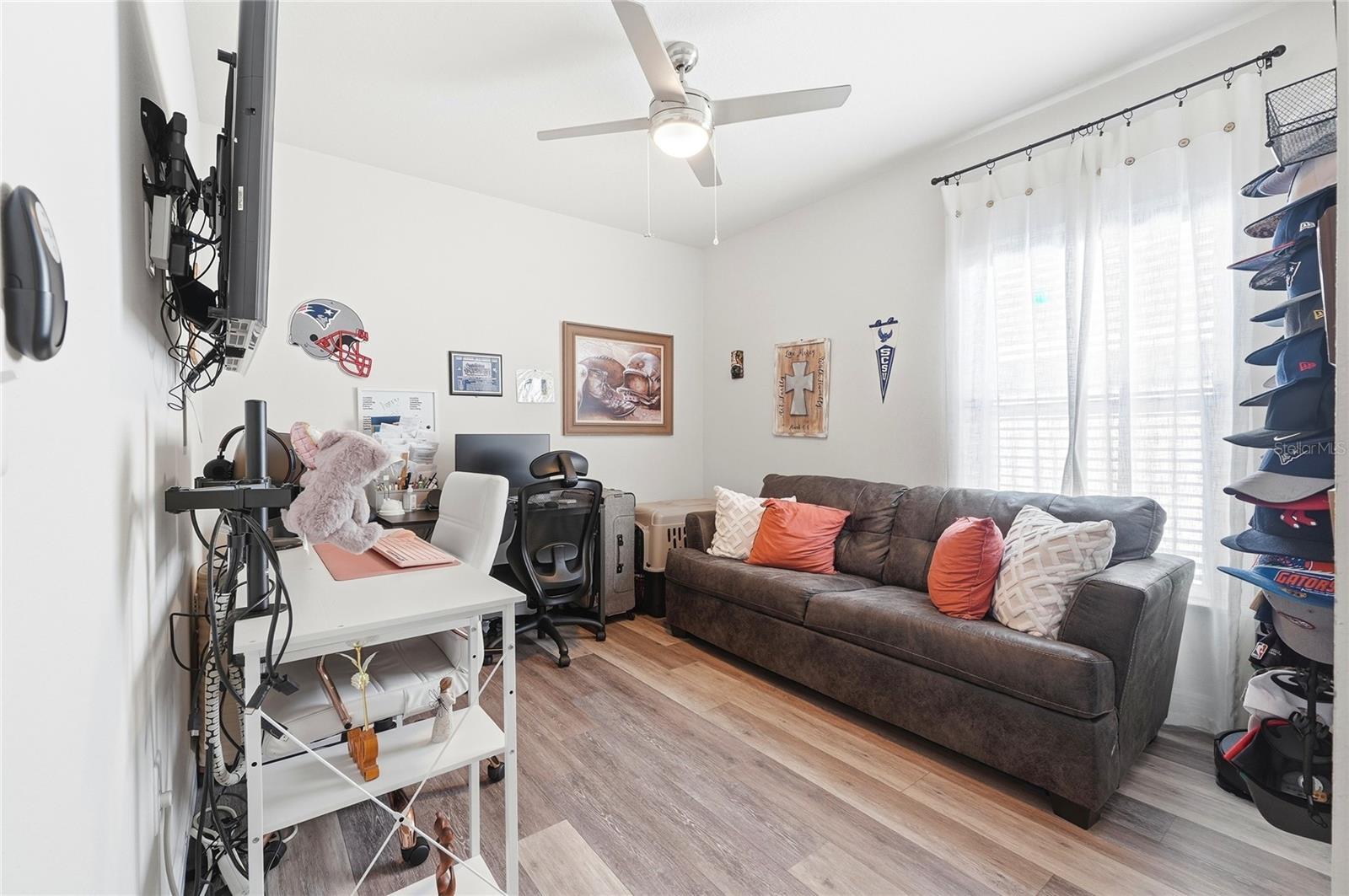 Welcome to this absolutely amazing 3 bedroom, 2 bathroom home that shows like a model home. Built in 2017 by Ryan Homes, it offers a spacious and open floor plan with countless upgrades that make it extremely attractive. The interior has beautiful luxury vinyl plank flooring that flows throughout the entire house - NO CARPET. The bright, open floor plan is enhanced by upgraded lighting and modern ceiling fans, adding a touch of sophistication and comfort. The large kitchen features an island kitchen, stainless-steel appliances and a spacious pantry.. This home is perfect for entertaining guests and undoubtably this floor plan is sure to impress visitors. The owners suite is a luxury retreat, offering a spacious walk-in closet and a luxurious bathroom with a walk-in shower, dual sinks, and a separate water closet for added privacy. The secondary bedrooms are generously sized and share second bathroom with upgraded fixtures. The covered, oversized screened lanai provides ample space for outdoor living and entertaining. The beautifully landscaped lawn and fenced yard add great curb appeal and add to the beauty of this property. This exceptional home is move-in ready and offers comfort, style, and modern features in one package. Don't miss this opportunity!