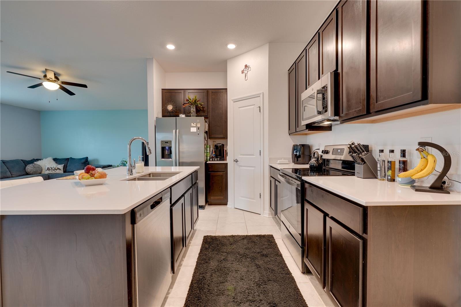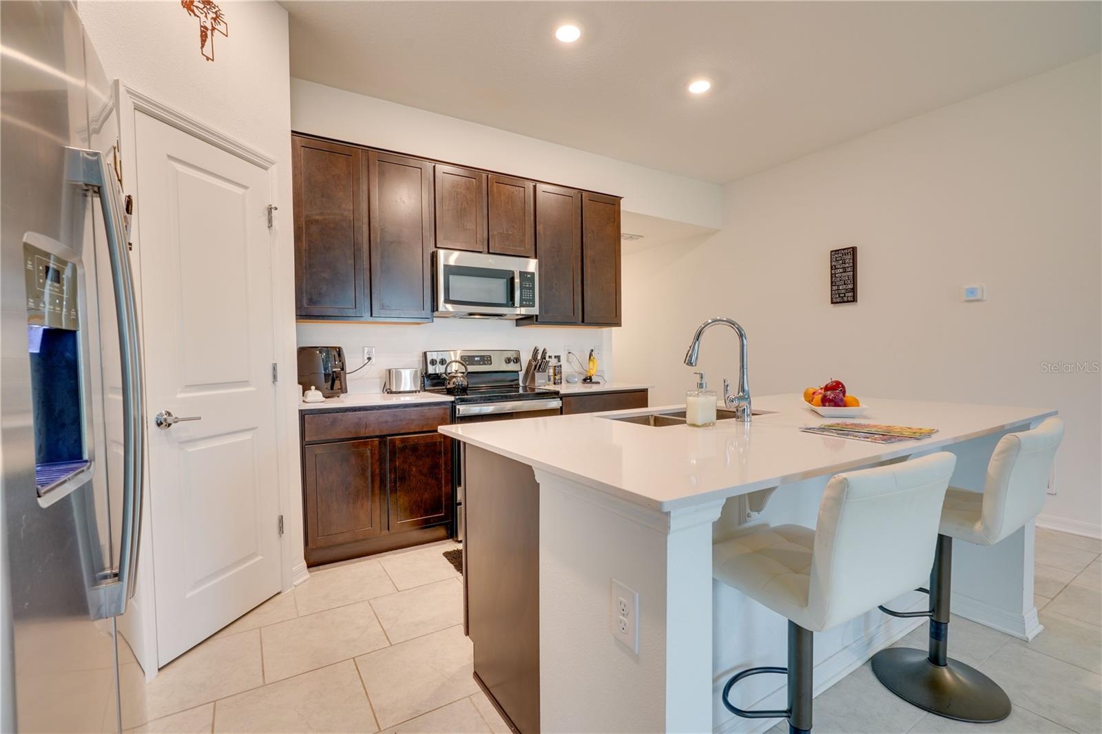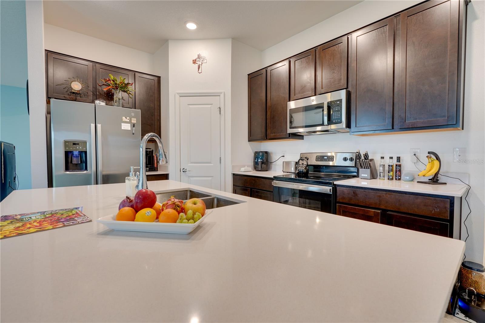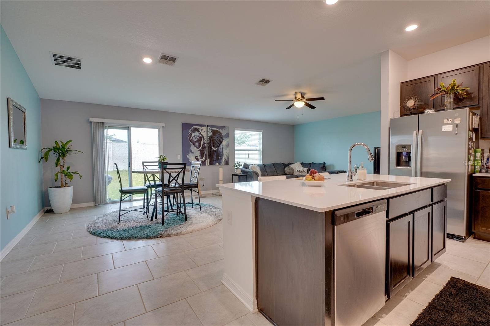 Welcome to this beautifully maintained home in The Estates at Lake Hammock! This 3 bedroom 2 bath home is wonderfully cozy and updated. The open kitchen has a large pantry with 42 inch cabinets and overlooks the family room and cafe, making it easier to bring everyone together for entertaining. The owner's suite features an oversized walk-in closet and his and her sinks. A 2-car garage provides convenience and storage if needed. This home comes fully equipped with stainless steel appliances, quartz countertops, and tile flooring in the wet areas. This smart home has solar power to offset the electric bills and comes fully connected with features like a Honeywell thermostat, Schlage lock, Ring doorbell, and pest guard control system. Don't miss out on this home in the Heart of Haines City! The Estates of Lake Hammock is a gorgeous community complete with a community dock, playground, walking trail, and dog park. There is easy access to I-4, Walt Disney World, Universal Studios, Legoland, Bok Tower Gardens, Posner Park Shopping Mall, Hospitals, and much more, it’s easy to see why this area is growing fast! If you are seeking a new home situated in a quiet area while still close to Tampa and Orlando, WELCOME HOME!