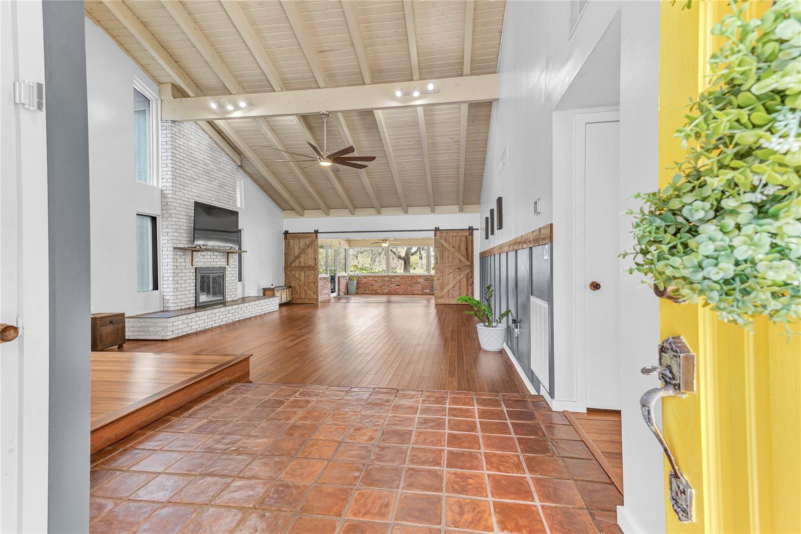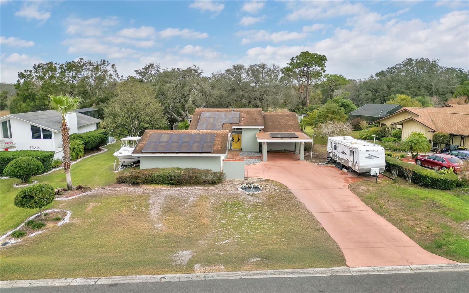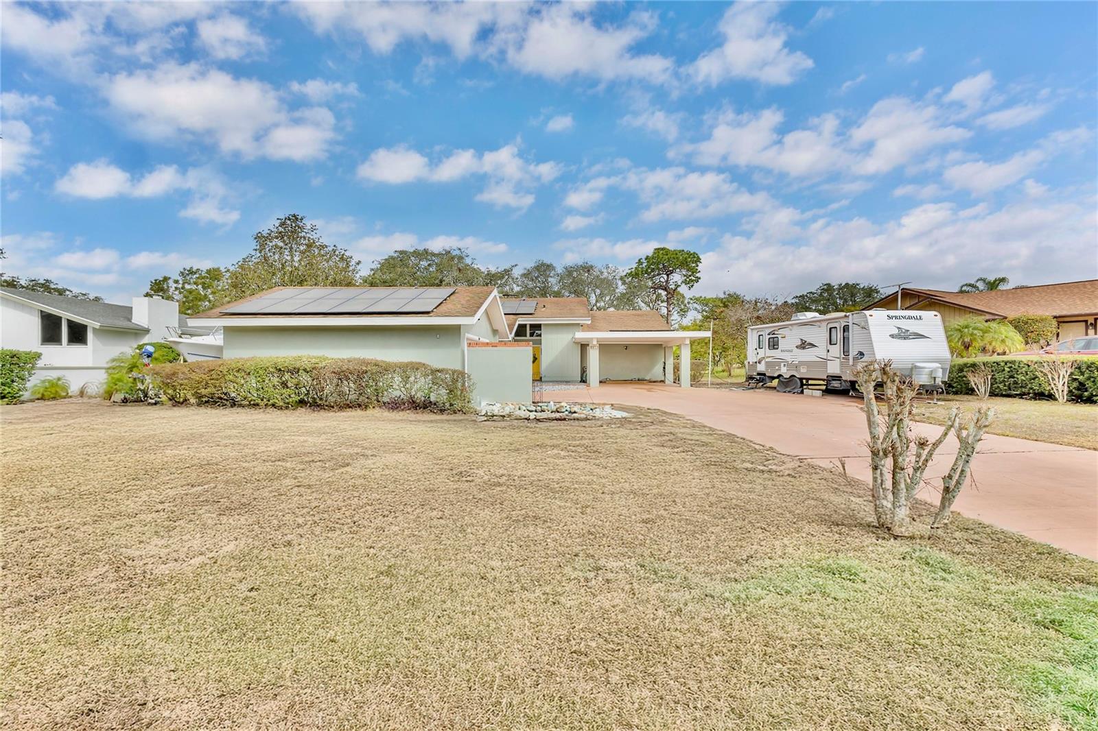 New Opportunity! Price Reduced! Discover Modern Charm at 109 Arrowhead Lane, Haines City, FL Step into this modern-country retreat where style and nature blend seamlessly. Nestled on a picturesque lot filled with greenery and wildlife, this beautiful 3-bedroom, 2-bath home invites you to relax, entertain, and truly enjoy life. From the moment you enter through the grand double doors, you’ll be greeted by soaring 20’ ceilings with exposed beams and stunning views of the lush backyard. The open floor plan connects the living room, dining area, beautifully renovated kitchen, and the inviting Florida room perfect for hosting friends or enjoying peaceful evenings at home. The chef’s kitchen features elegant granite countertops, soft-close wood cabinetry, and stainless steel appliances, all bathed in natural light from large windows. The oversized living room with cozy wood-burning fireplace sets the perfect scene for cool nights, while rustic barn doors add flexibility and charm to the Florida room. Both bathrooms have been tastefully updated, and the spacious bedrooms offer natural light and a relaxing atmosphere. Step outside to a brick-paved patio, ideal for your morning coffee, surrounded by the sights and sounds of nature. With NO HOA restrictions, enjoy the freedom to personalize your outdoor space plus a detached garage, 8’ tall carport, and plenty of room for a boat or RV! Energy-efficient financeable solar panels help lower your utility bills, and other upgrades include real wood floors, Swan security camera system, and a 5-ton A/C unit with new piping (2022). This is more than a home it’s a lifestyle. Picture cozy evenings by the fire, mornings on the patio, and weekends immersed in nature. Now offered at the new price don’t miss your chance to experience the magic of 109 Arrowhead Lane for yourself!