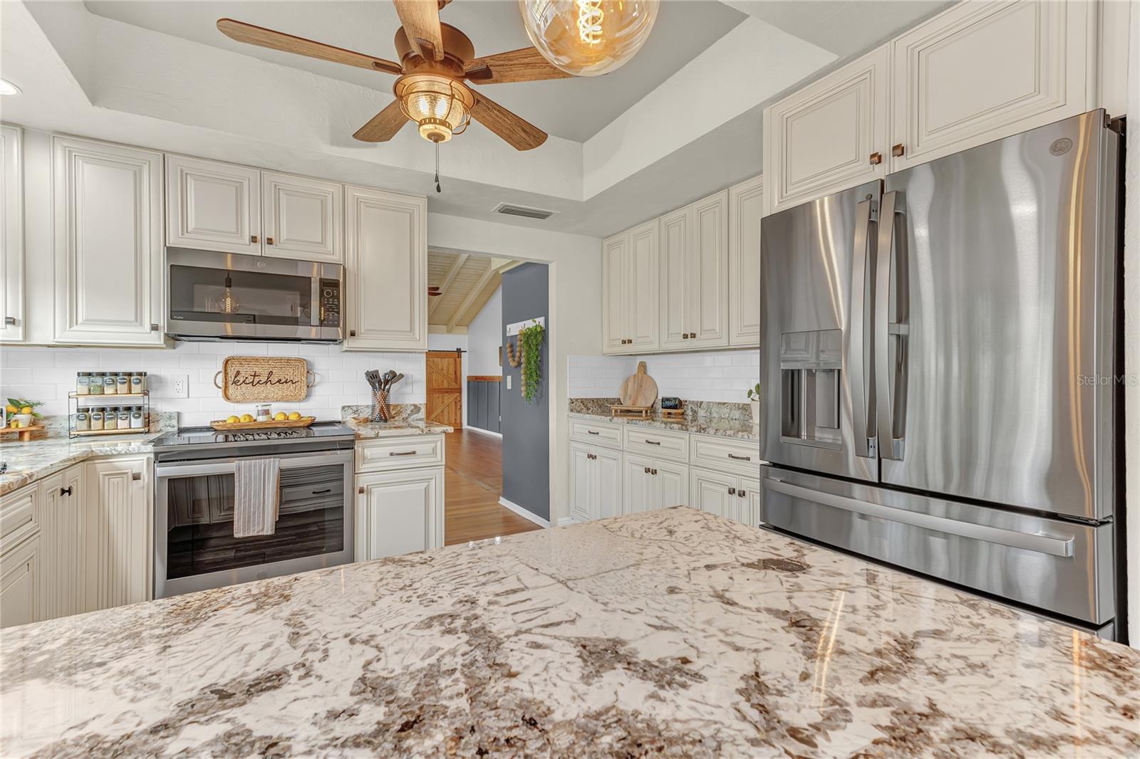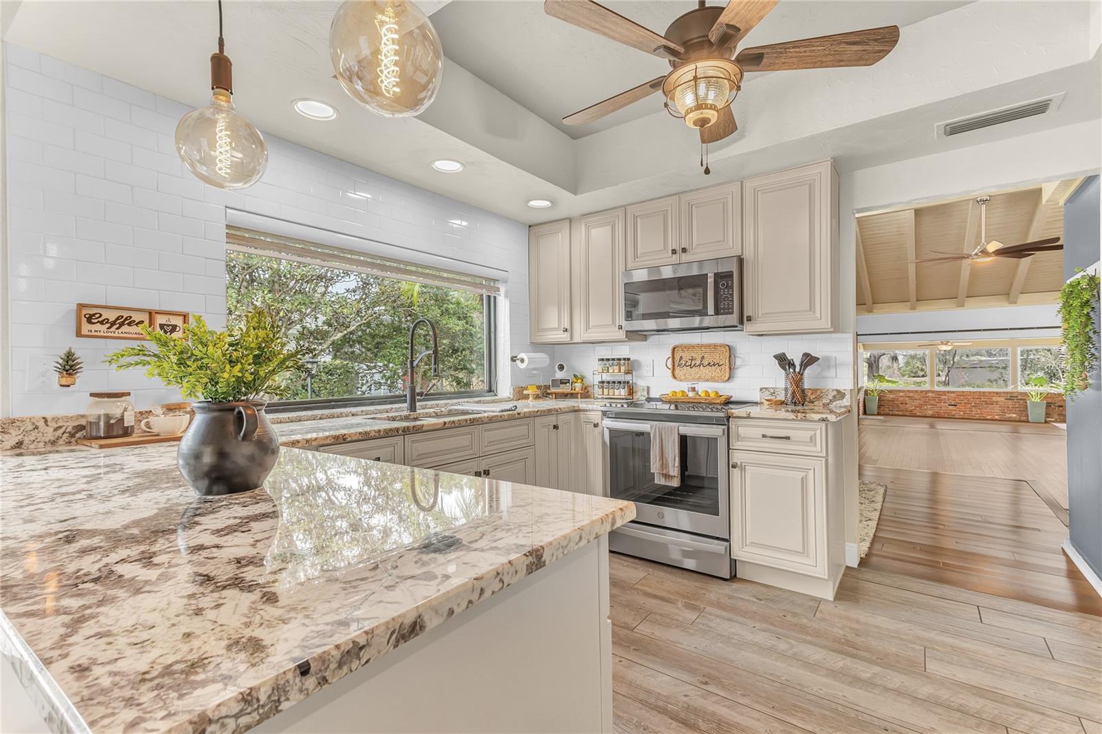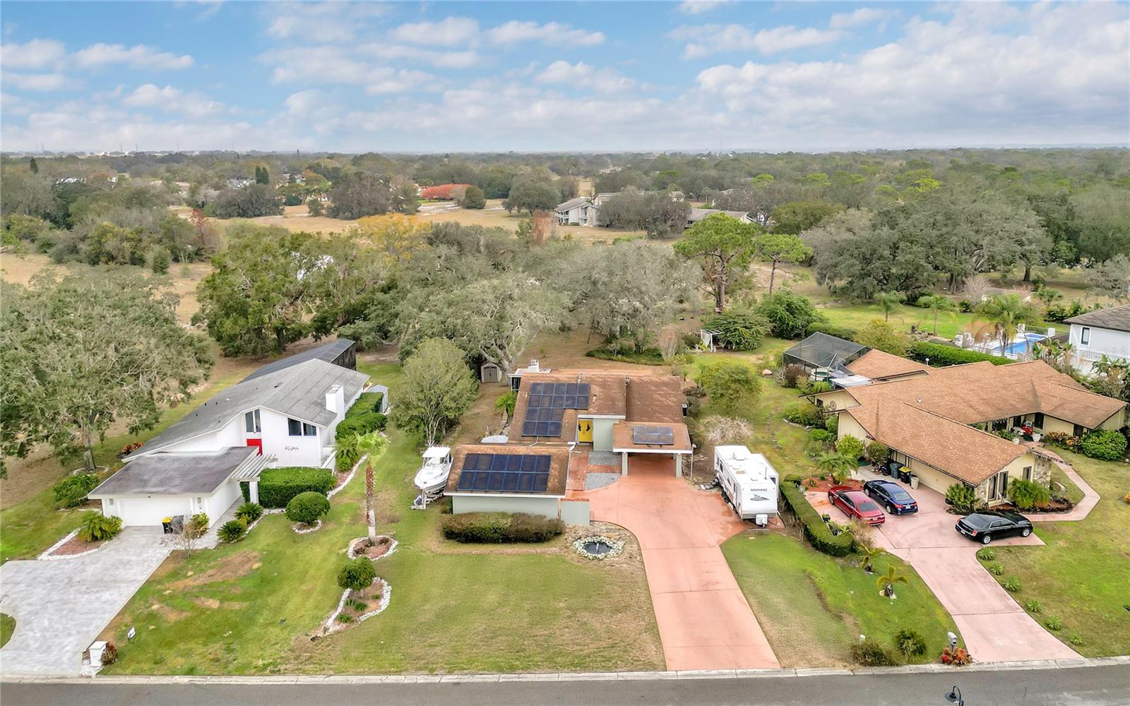 New Opportunity! Price Reduced! Discover Modern Charm at 109 Arrowhead Lane, Haines City, FL Step into this modern-country retreat where style and nature blend seamlessly. Nestled on a picturesque lot filled with greenery and wildlife, this beautiful 3-bedroom, 2-bath home invites you to relax, entertain, and truly enjoy life. From the moment you enter through the grand double doors, you’ll be greeted by soaring 20’ ceilings with exposed beams and stunning views of the lush backyard. The open floor plan connects the living room, dining area, beautifully renovated kitchen, and the inviting Florida room perfect for hosting friends or enjoying peaceful evenings at home. The chef’s kitchen features elegant granite countertops, soft-close wood cabinetry, and stainless steel appliances, all bathed in natural light from large windows. The oversized living room with cozy wood-burning fireplace sets the perfect scene for cool nights, while rustic barn doors add flexibility and charm to the Florida room. Both bathrooms have been tastefully updated, and the spacious bedrooms offer natural light and a relaxing atmosphere. Step outside to a brick-paved patio, ideal for your morning coffee, surrounded by the sights and sounds of nature. With NO HOA restrictions, enjoy the freedom to personalize your outdoor space plus a detached garage, 8’ tall carport, and plenty of room for a boat or RV! Energy-efficient financeable solar panels help lower your utility bills, and other upgrades include real wood floors, Swan security camera system, and a 5-ton A/C unit with new piping (2022). This is more than a home it’s a lifestyle. Picture cozy evenings by the fire, mornings on the patio, and weekends immersed in nature. Now offered at the new price don’t miss your chance to experience the magic of 109 Arrowhead Lane for yourself!