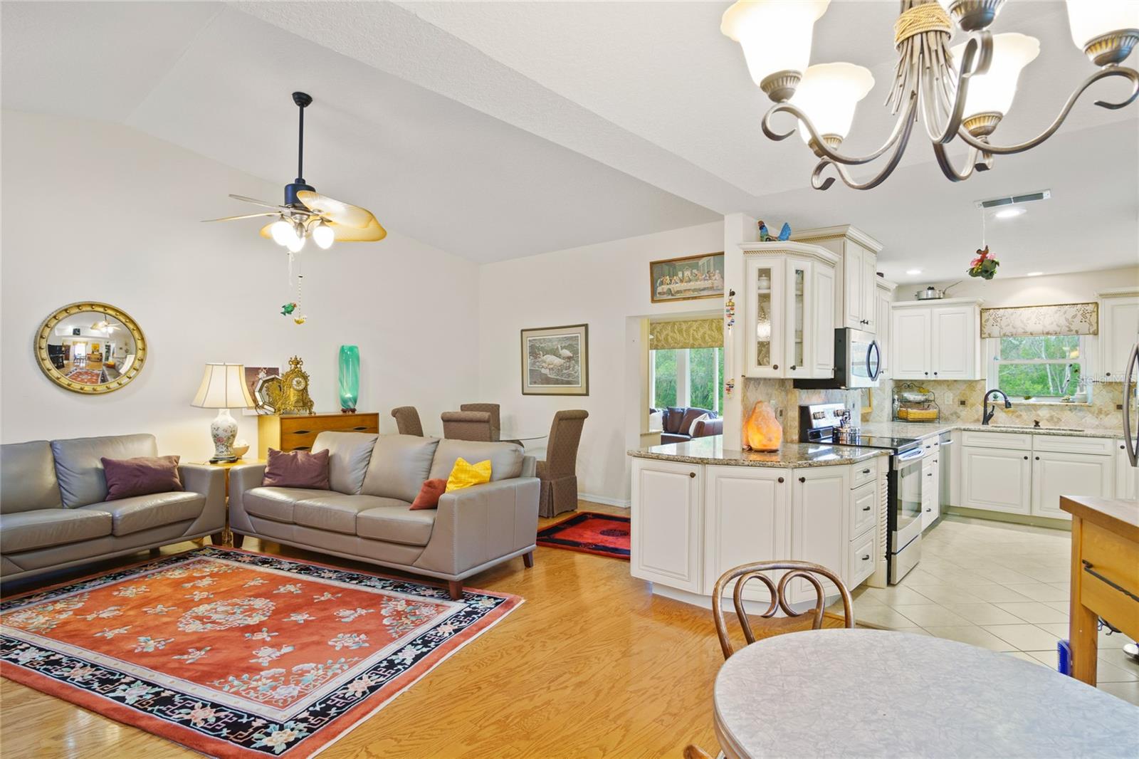 Welcome to this beautifully remodeled 2-bedroom, 2-bathroom home, located in a desirable 55+ community. This stunning property has been thoughtfully updated with high-end finishes and modern amenities to create the perfect retreat. The spacious home boasts a paved driveway with matching wrap-around pavers, adding curb appeal and offering easy maintenance. Inside, you’ll be greeted by gorgeous real wood cabinetry and gleaming granite countertops, creating a luxurious feel in the kitchen and bathrooms. The floor plan is complemented by beautiful flooring throughout, adding warmth and style to every room. The Florida room has been fully enclosed, offering additional living space for relaxation or entertaining. Whether you’re enjoying the sunshine or hosting friends, this extra space provides endless possibilities. This home is move-in ready and offers all the comforts and convenience you could desire in a 55+ community, including Golf, Tennis, Shuffleboard, Bocce Ball an inviting and social clubhouse. Don’t miss your chance to make this your new home!
