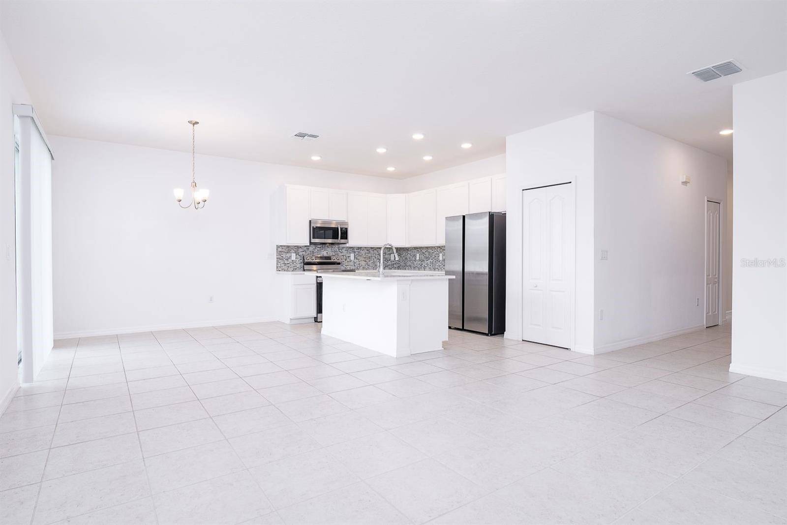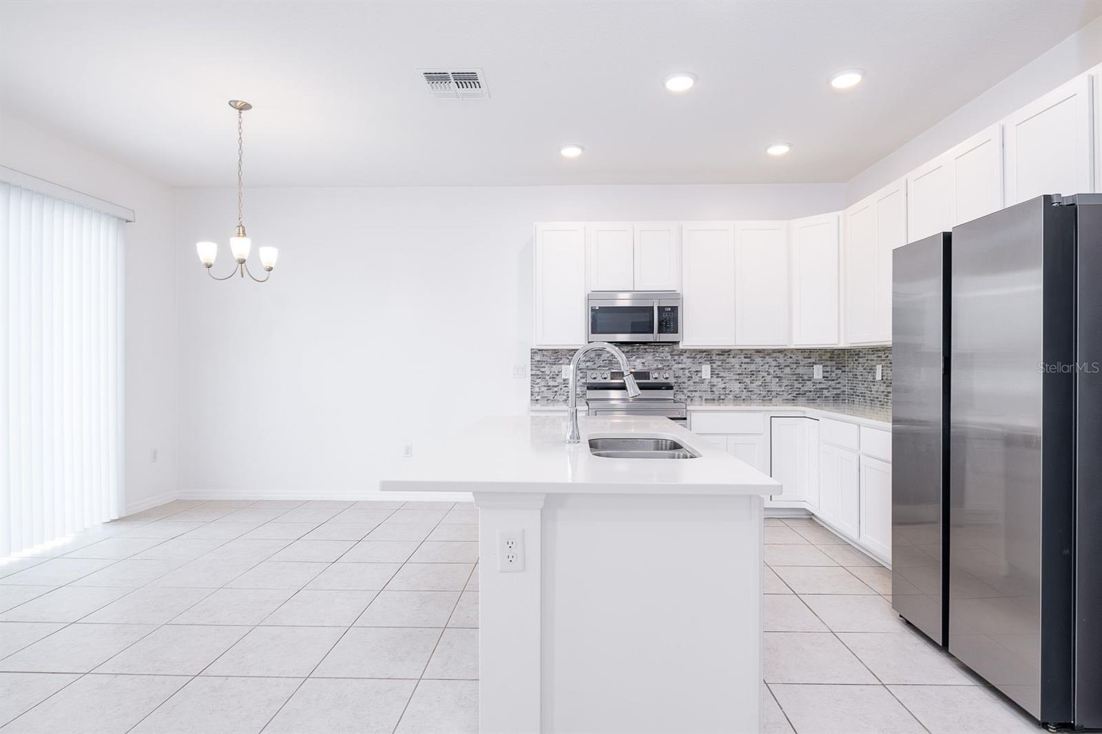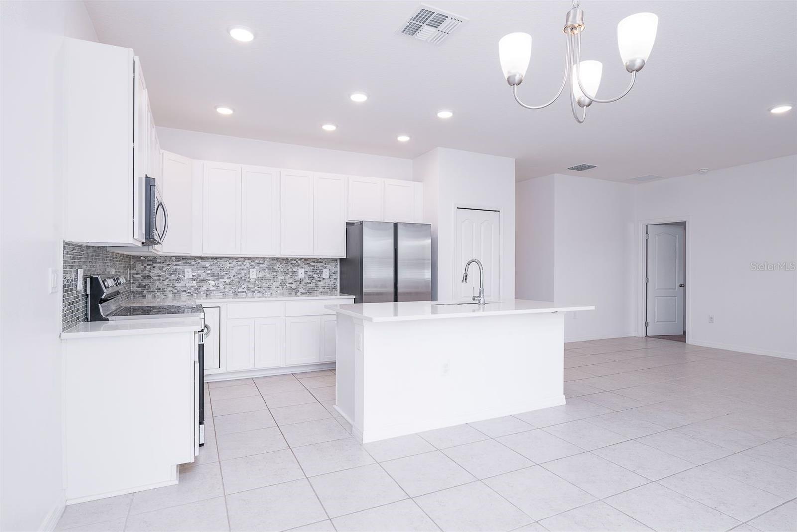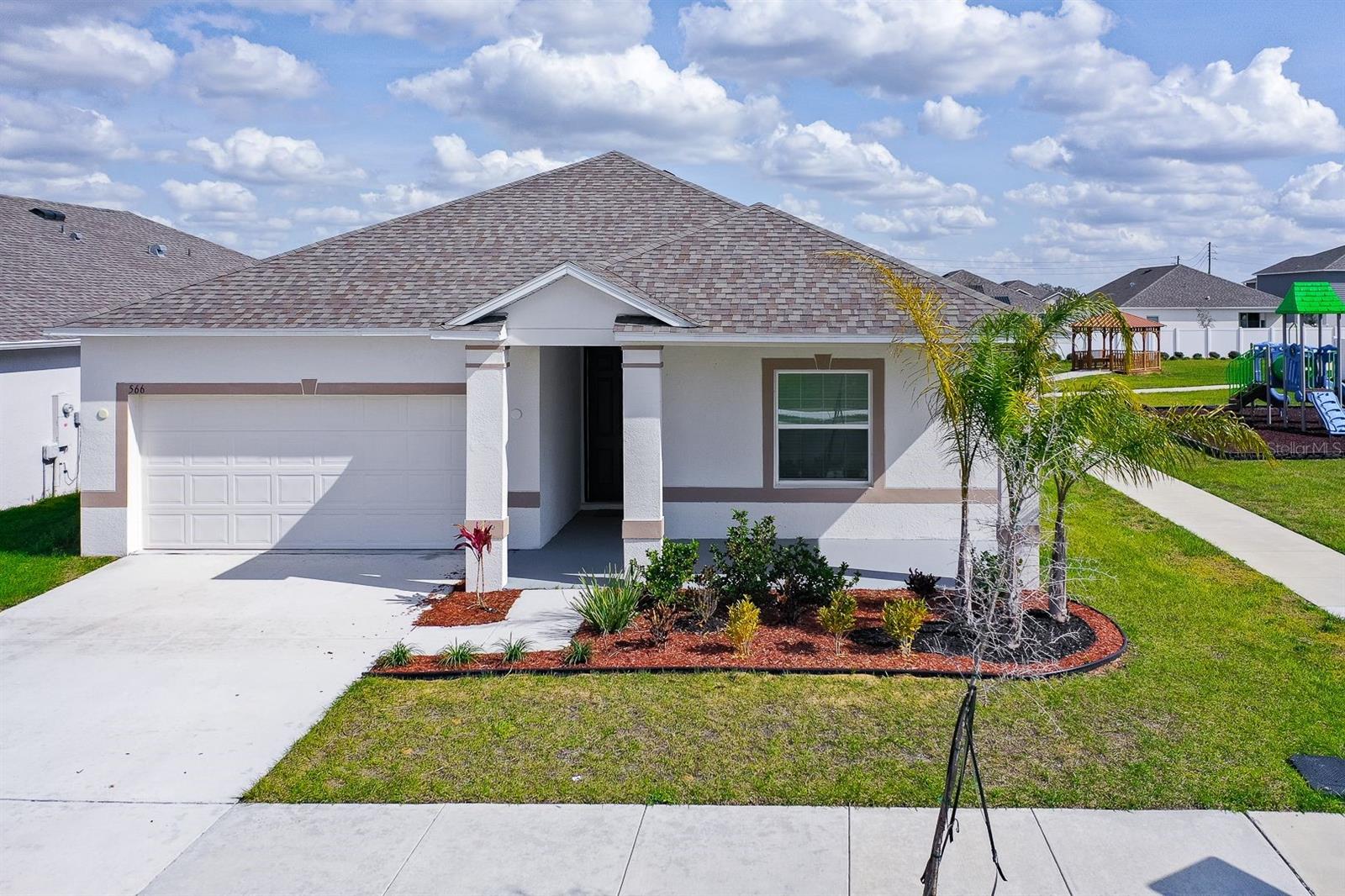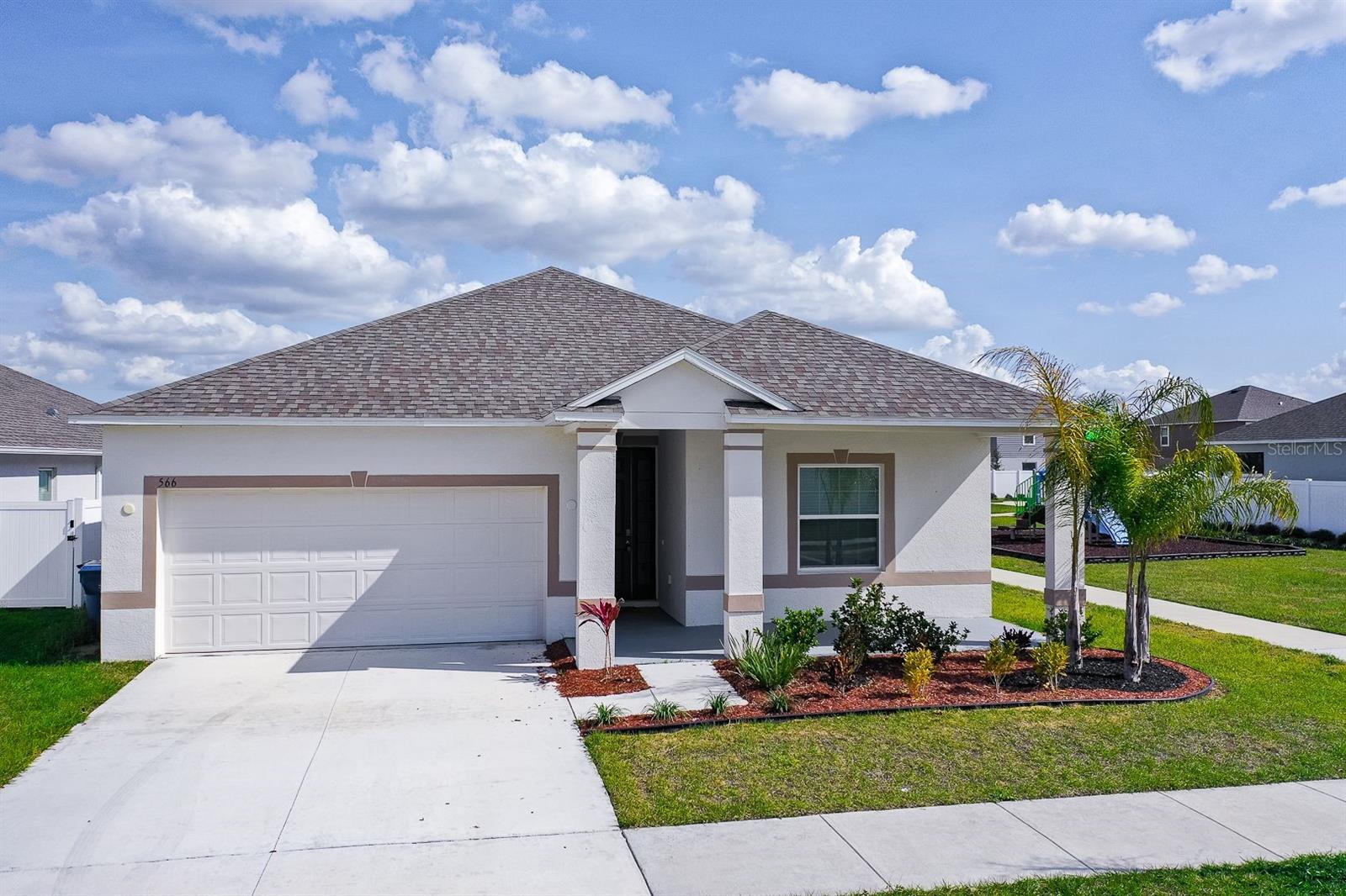 Welcome to this beautifully maintained single-story home in the desirable Calabay Crossing community! Built in 2023, just minutes away from DISNEY WOLD PARK ATTRACTIONS! LOW HOA! This place is perfect for you, cute corner property features 3 large bedrooms, 2 bathrooms, 2-Car Garage. Natural light dances through the open living and dining areas, creating a warm and inviting atmosphere complemented by modern fixtures and finishes. Open floor plan, the floors include tile on the floors. Kitchen appliances including a Modern stainless-steel appliance with Double Door Refrigerator, spacious stylish cabinets, and countertops. Convenient breakfast bar perfect for fueling up before a day of Disney Adventures. All bedrooms include carpet and are a good size. The master bedroom has a big walk-in closet, a private bathroom, shower, sinks, and modern finishes providing a relaxing retreat after a long day. The laundry is inside. Step outside into you're the best thing is that next to the house is the social area, playground. Calabay Crossing community is a new and small community of only 38 homes sites, which provides the perfect place to call home! Families will appreciate the proximity schools, securing an excellent education. Beyond the home's comforts, the location offers easy access to local amenities, shopping centers, dining options, schools, hospitals, with the added charm of being close to the magic of Walt Disney World. The allure of living near the iconic theme park adds an extra layer of enchantment to this already desirable property. Very convenient location very short driving distance to I-4 to Orlando, Tampa is very close to visit Bush Garden, and the beach. Excellent, excellent location! Hurry up and enjoy Florida at its best! Schedule your showing today!
