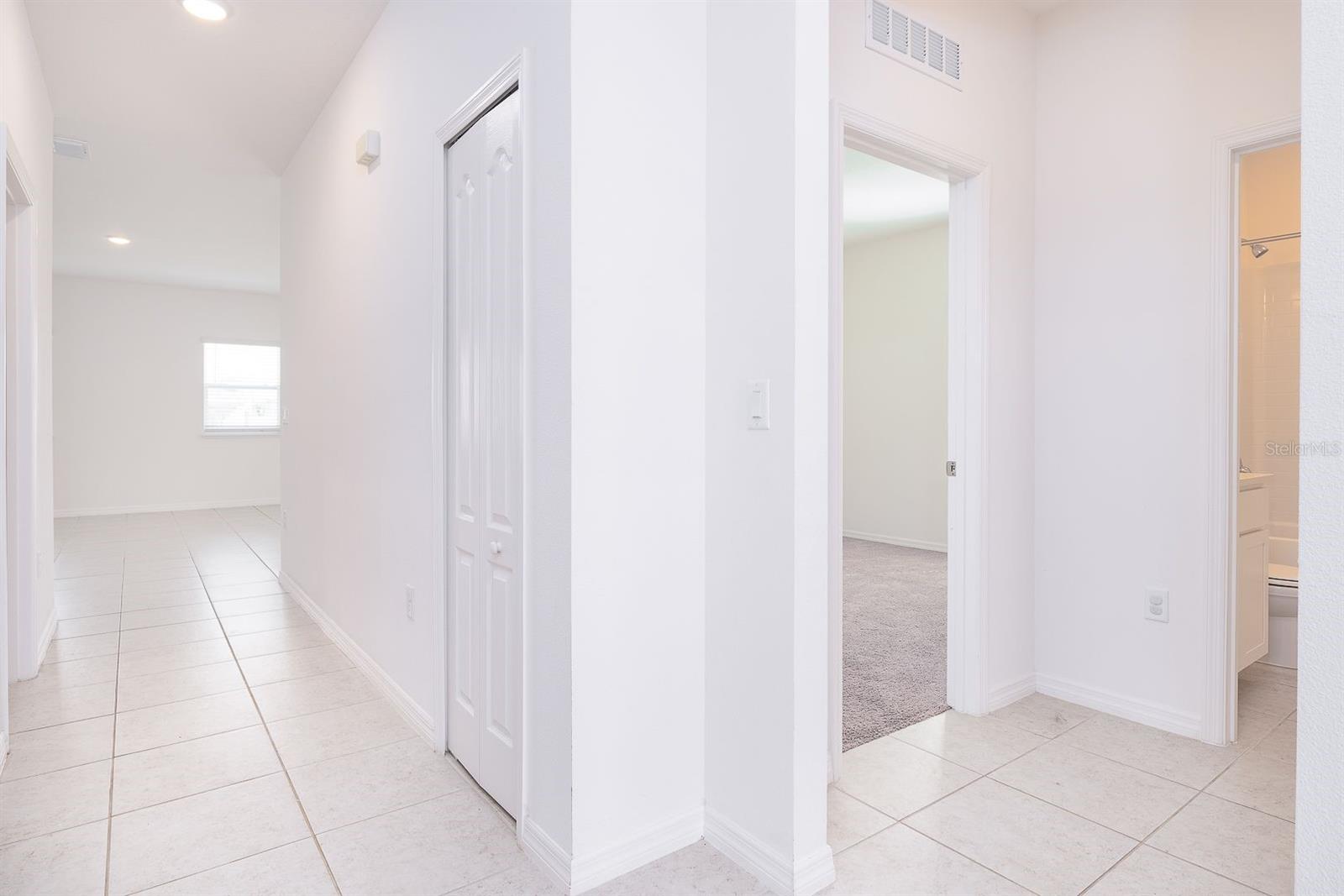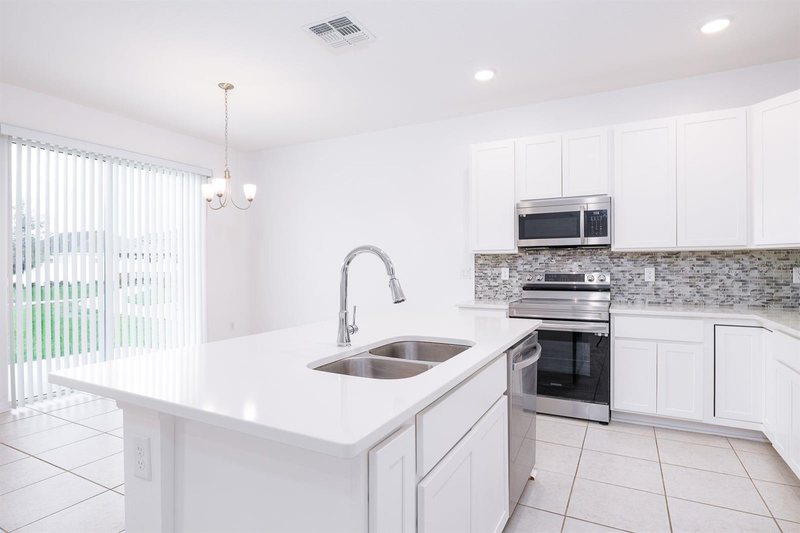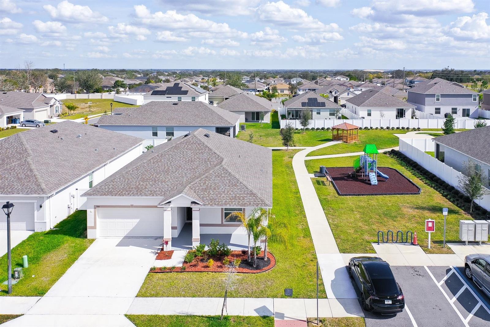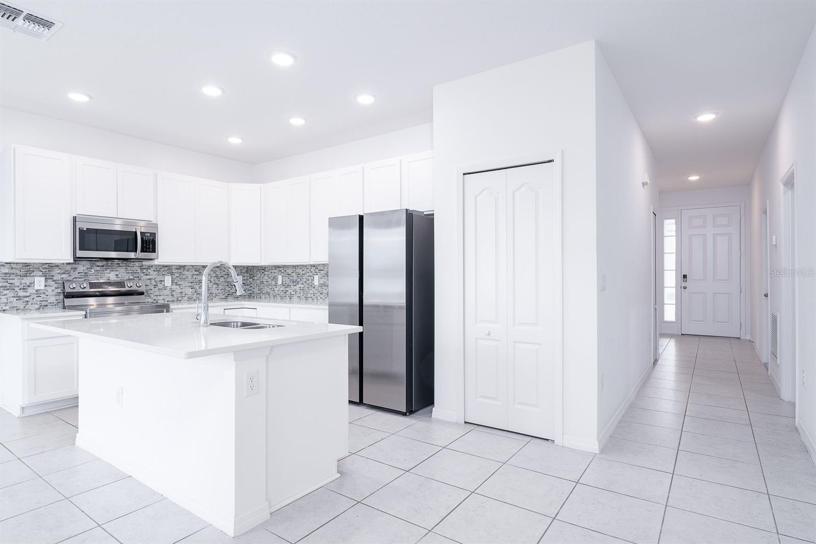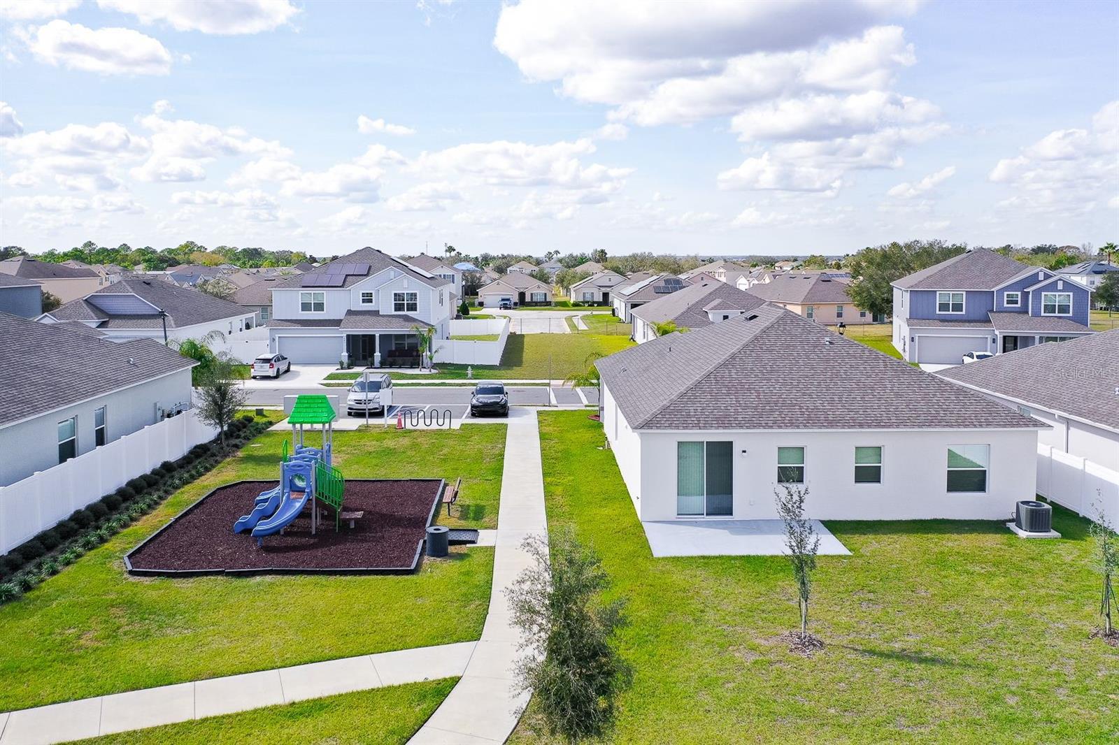 Welcome to this beautifully maintained single-story home in the desirable Calabay Crossing community! Built in 2023, just minutes away from DISNEY WOLD PARK ATTRACTIONS! LOW HOA! This place is perfect for you, cute corner property features 3 large bedrooms, 2 bathrooms, 2-Car Garage. Natural light dances through the open living and dining areas, creating a warm and inviting atmosphere complemented by modern fixtures and finishes. Open floor plan, the floors include tile on the floors. Kitchen appliances including a Modern stainless-steel appliance with Double Door Refrigerator, spacious stylish cabinets, and countertops. Convenient breakfast bar perfect for fueling up before a day of Disney Adventures. All bedrooms include carpet and are a good size. The master bedroom has a big walk-in closet, a private bathroom, shower, sinks, and modern finishes providing a relaxing retreat after a long day. The laundry is inside. Step outside into you're the best thing is that next to the house is the social area, playground. Calabay Crossing community is a new and small community of only 38 homes sites, which provides the perfect place to call home! Families will appreciate the proximity schools, securing an excellent education. Beyond the home's comforts, the location offers easy access to local amenities, shopping centers, dining options, schools, hospitals, with the added charm of being close to the magic of Walt Disney World. The allure of living near the iconic theme park adds an extra layer of enchantment to this already desirable property. Very convenient location very short driving distance to I-4 to Orlando, Tampa is very close to visit Bush Garden, and the beach. Excellent, excellent location! Hurry up and enjoy Florida at its best! Schedule your showing today!